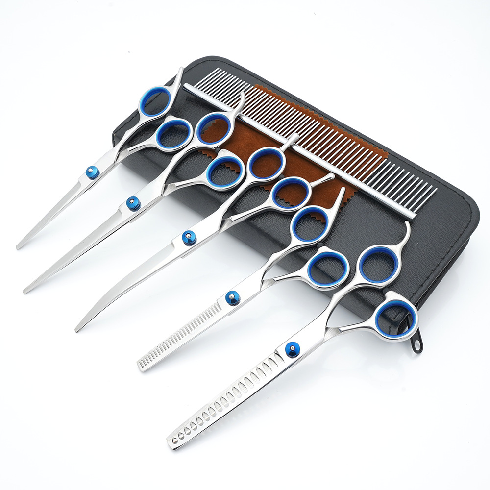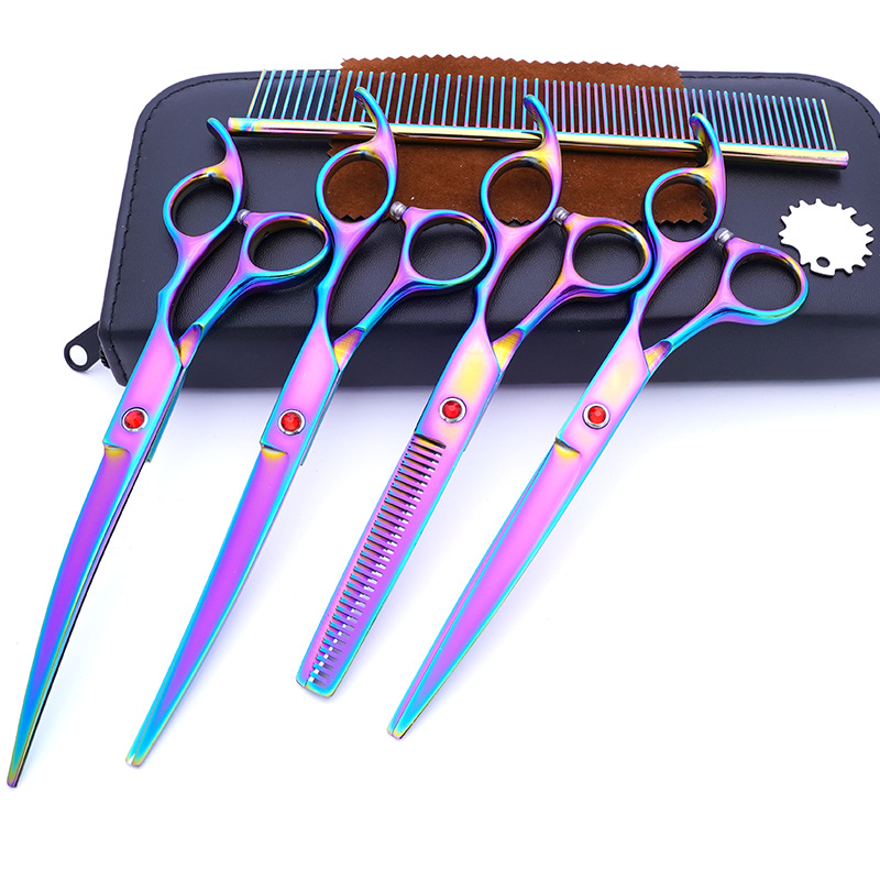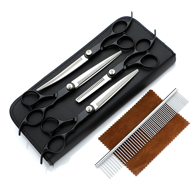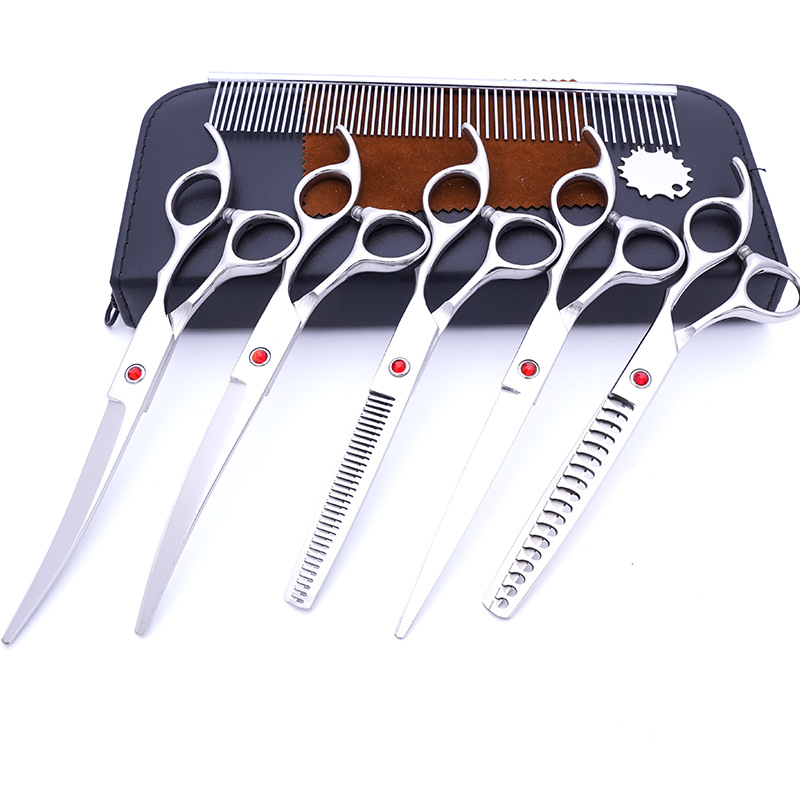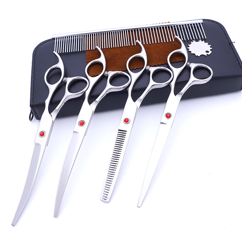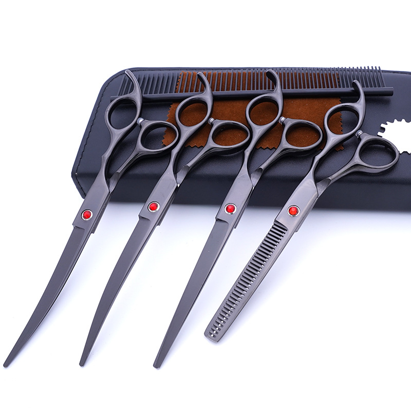 애완동물 가위 세트, 강아지 미용 도구, 곡선 가위, 얇게 자르는 가위, 애완동물 가위, 강아지 털 자르는 가위