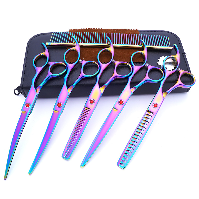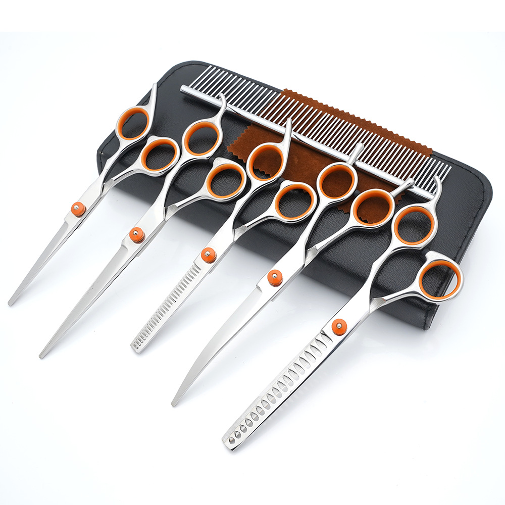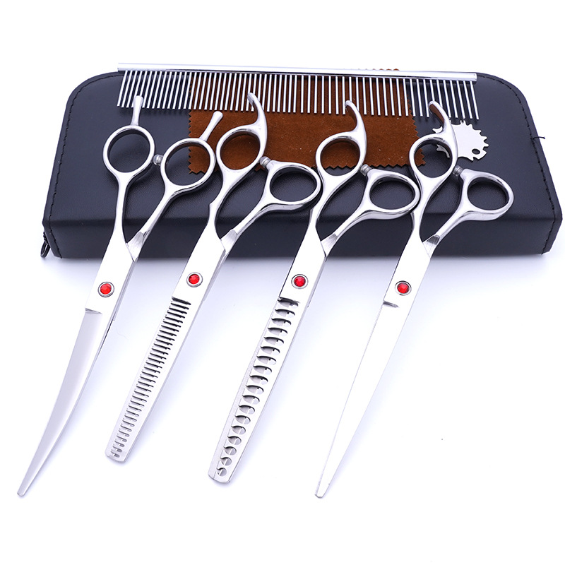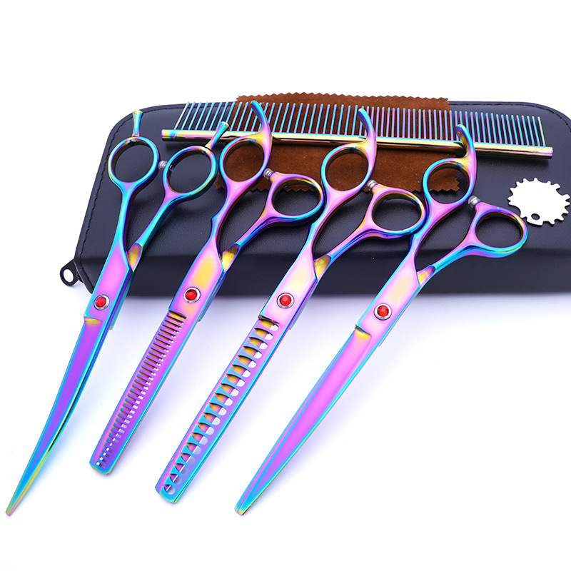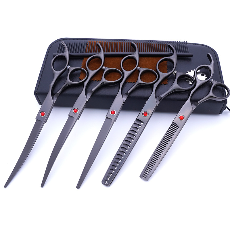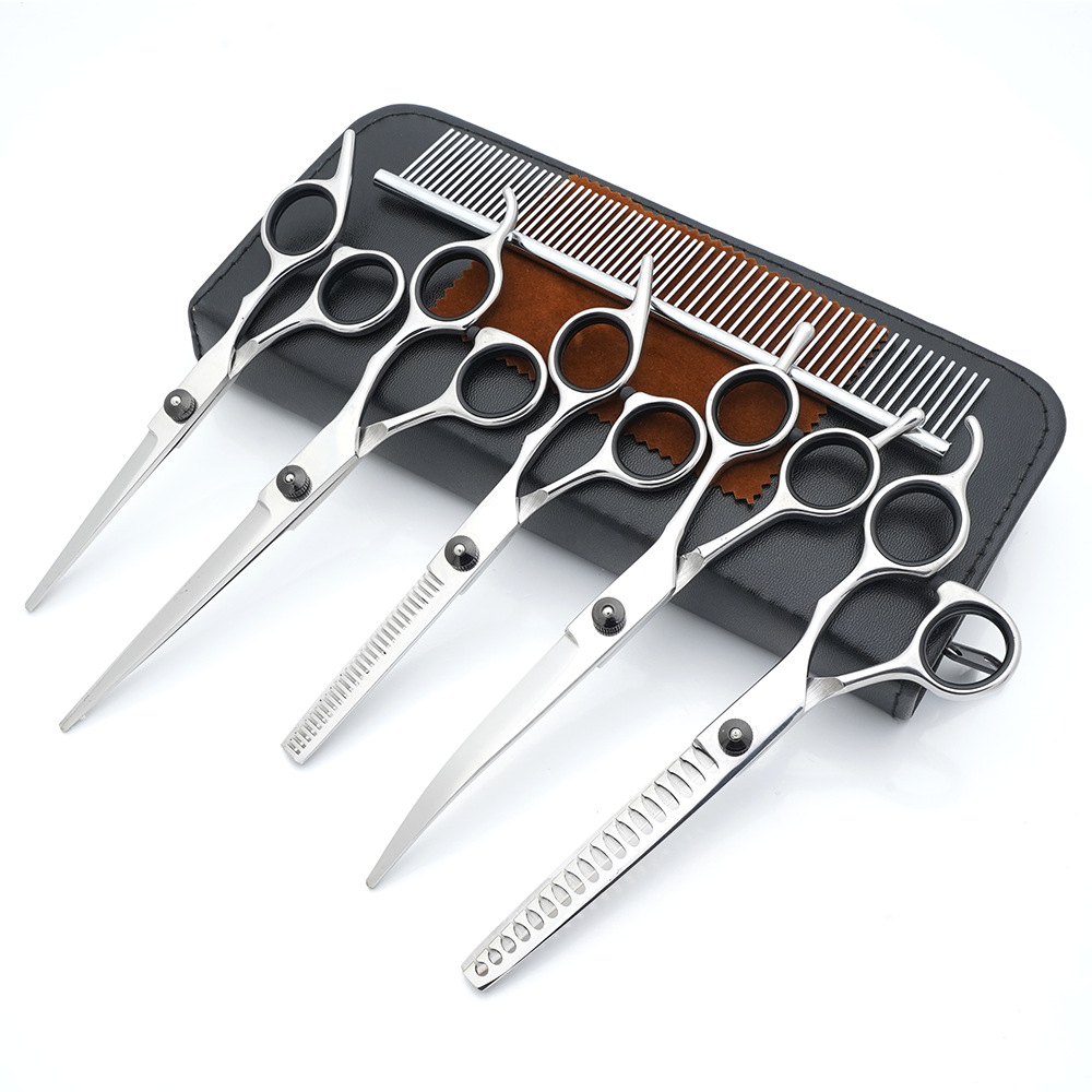 애완동물 가위 세트, 강아지 미용 도구, 곡선 가위, 얇게 자르는 가위, 애완동물 가위, 강아지 털 자르는 가위