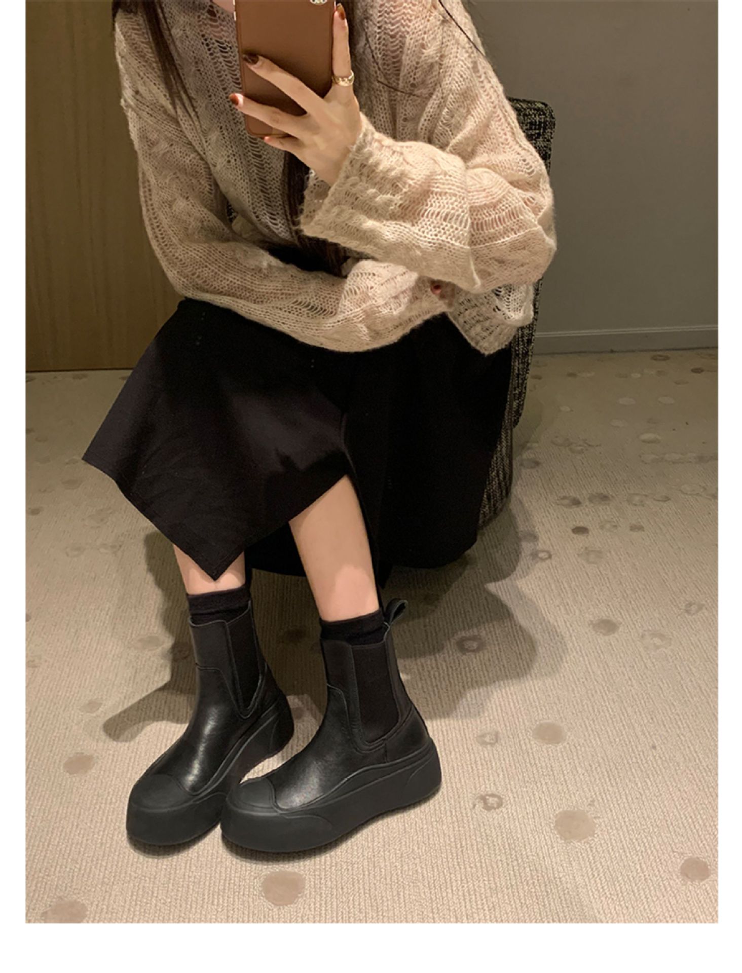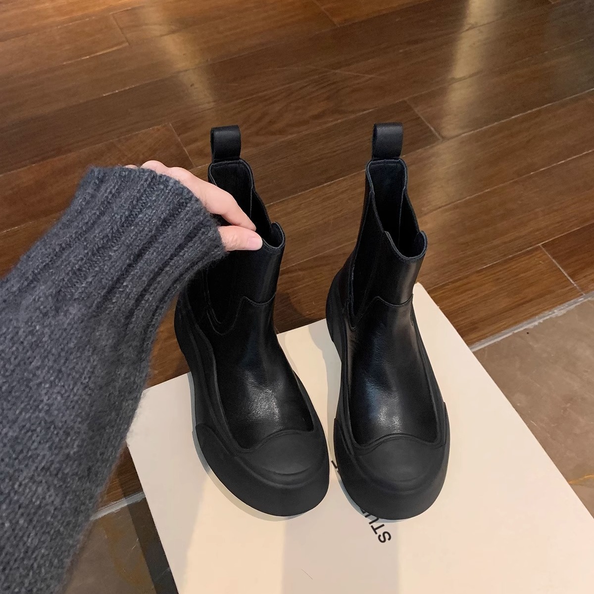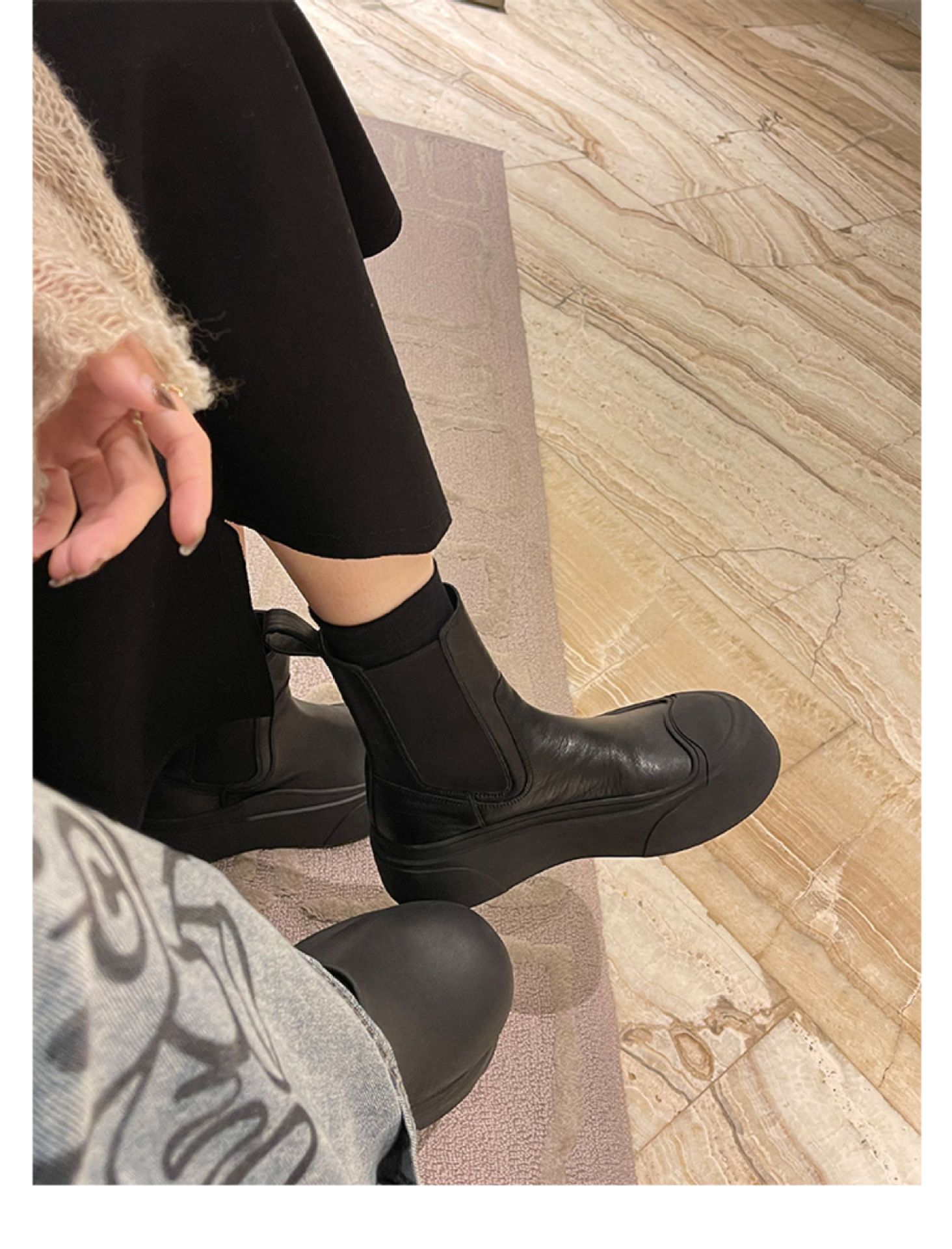 엄선된 인플루언서 스타일의 패셔너블한 스플라이싱 라운드토 슬립온 두꺼운 밑창 슬림 숏부츠 여성스러운 다재다능한 마틴부츠스토어 가기