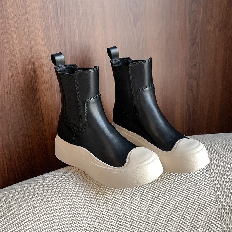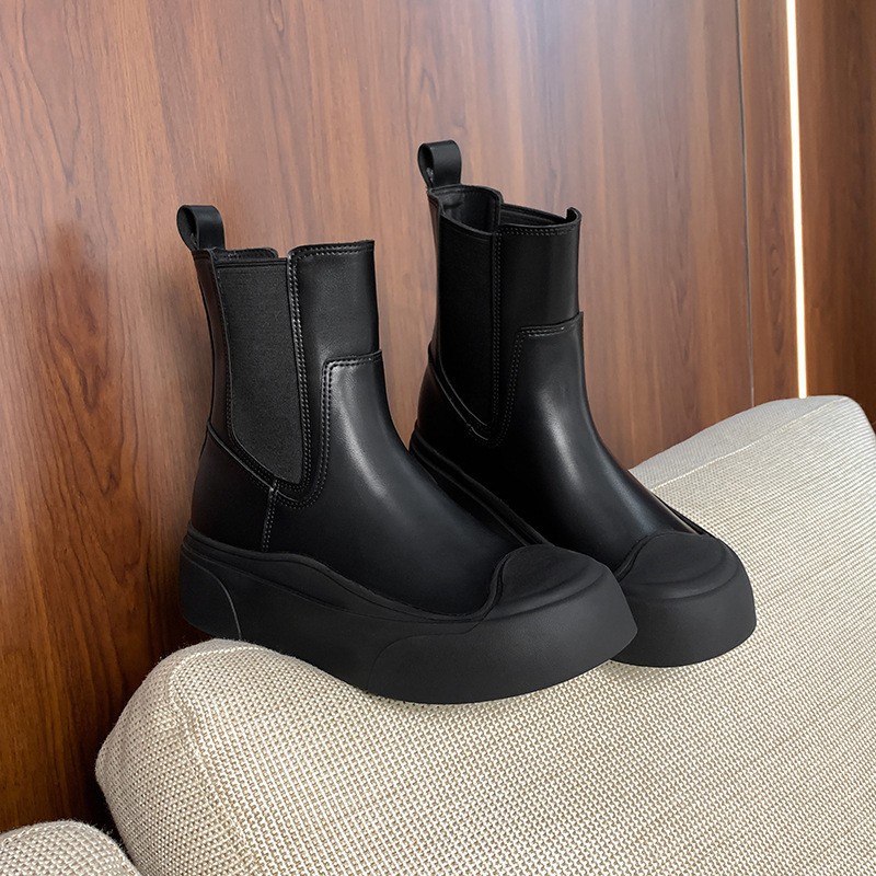 엄선된 인플루언서 스타일의 패셔너블한 스플라이싱 라운드토 슬립온 두꺼운 밑창 슬림 숏부츠 여성스러운 다재다능한 마틴부츠