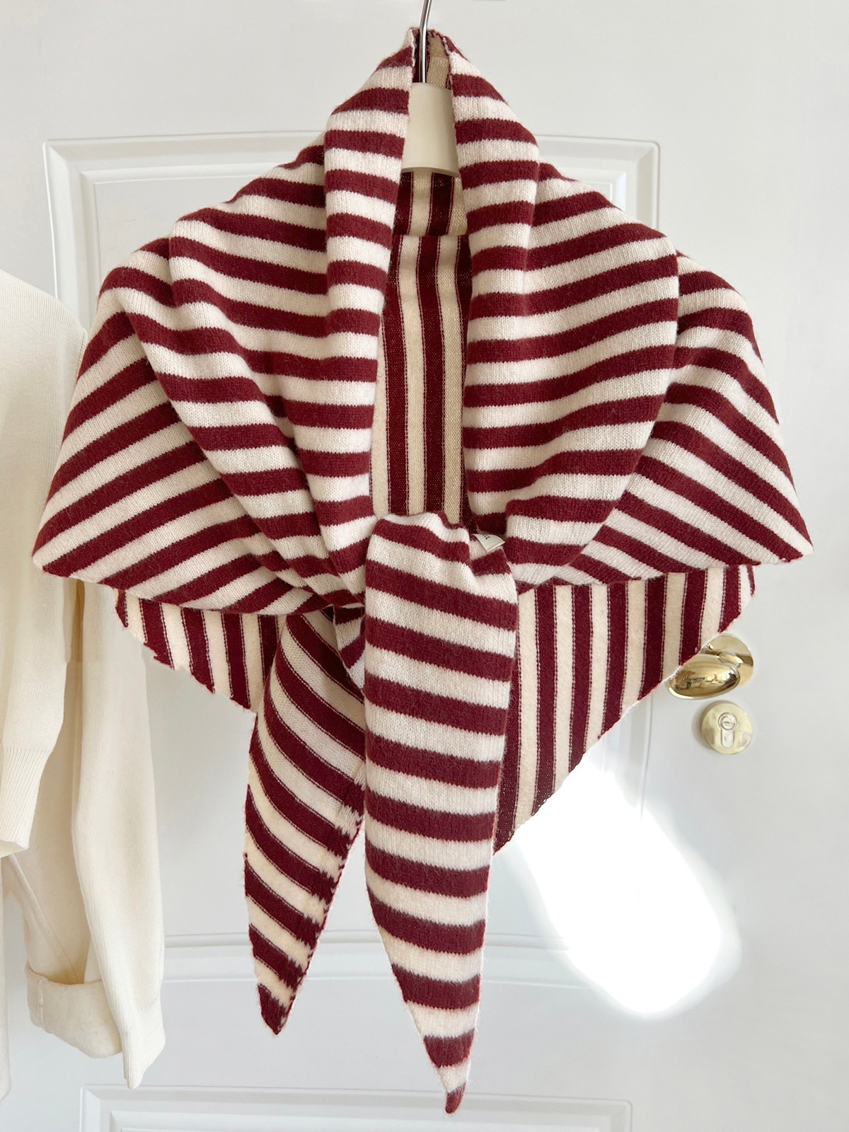 • [순모 100% 트라이앵글 스카프] 버건디 레드 라이스 스트라이프