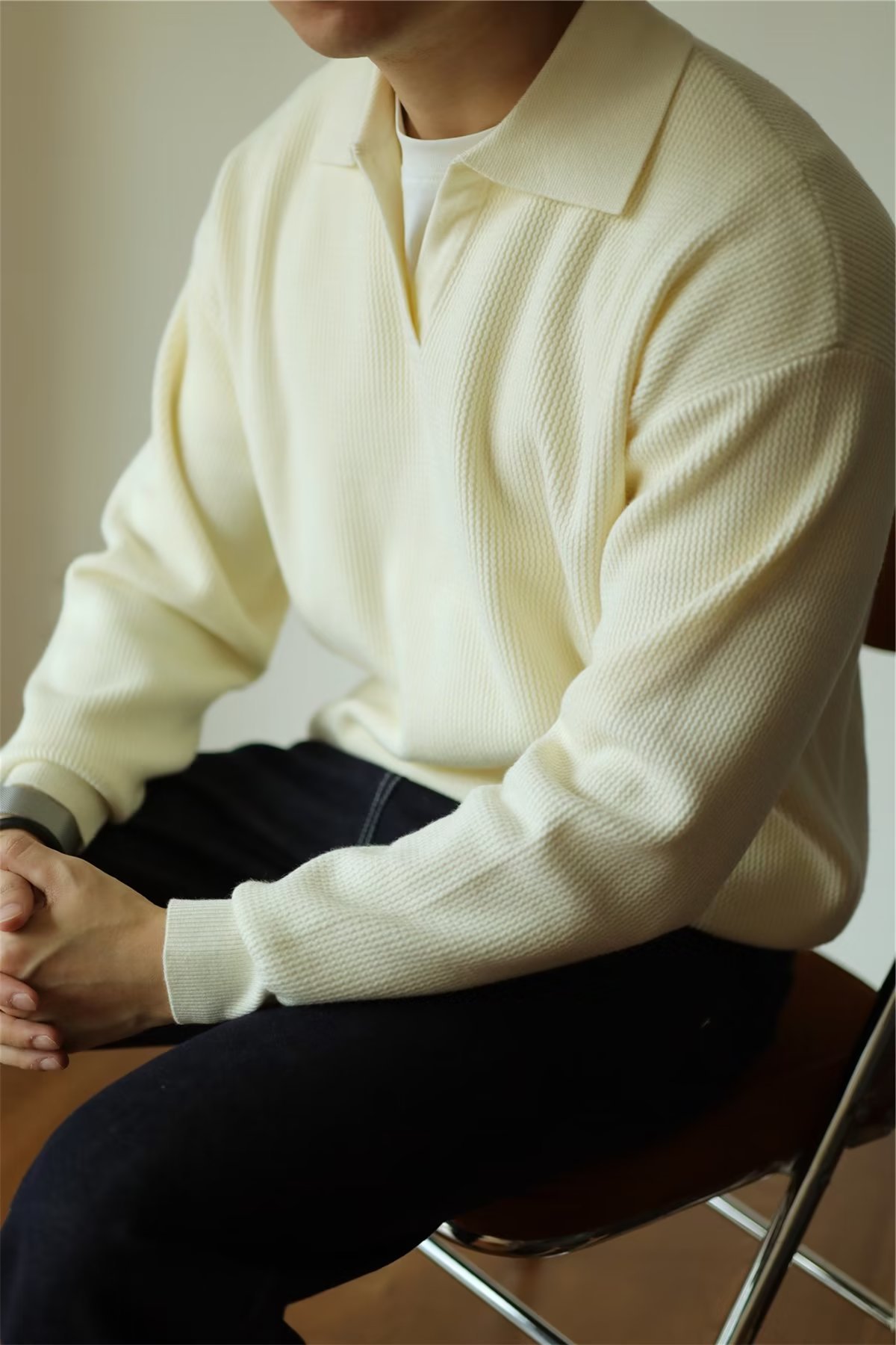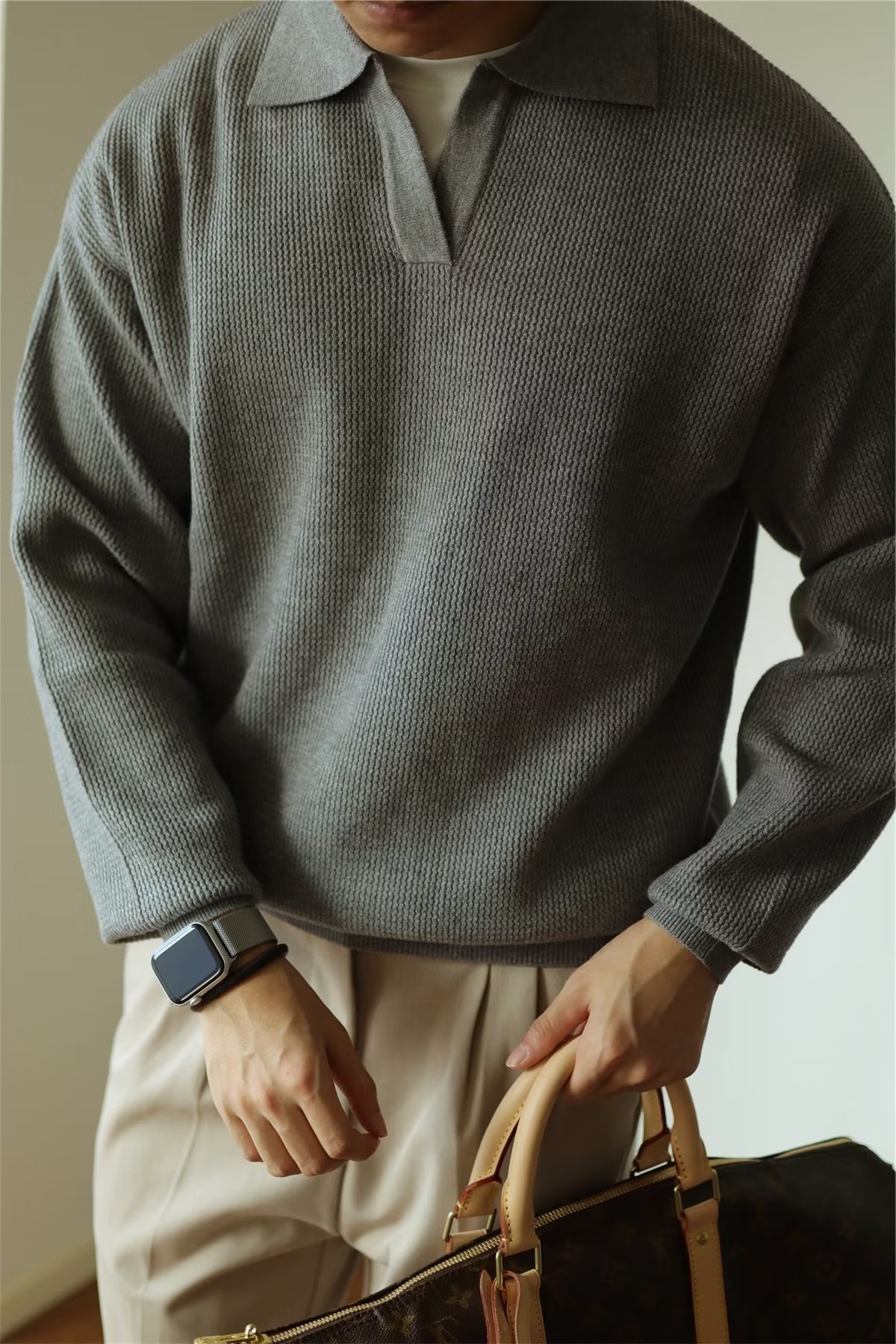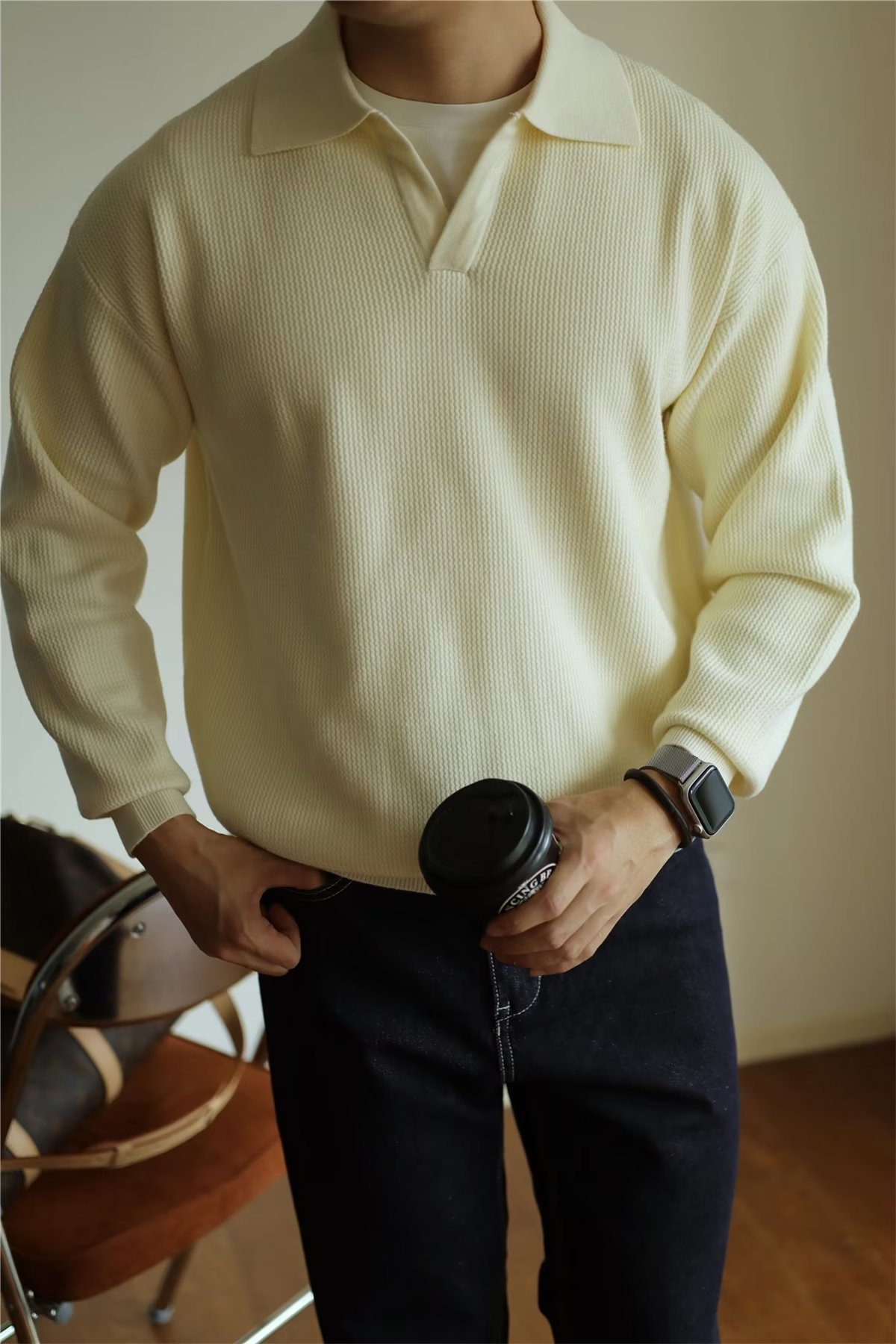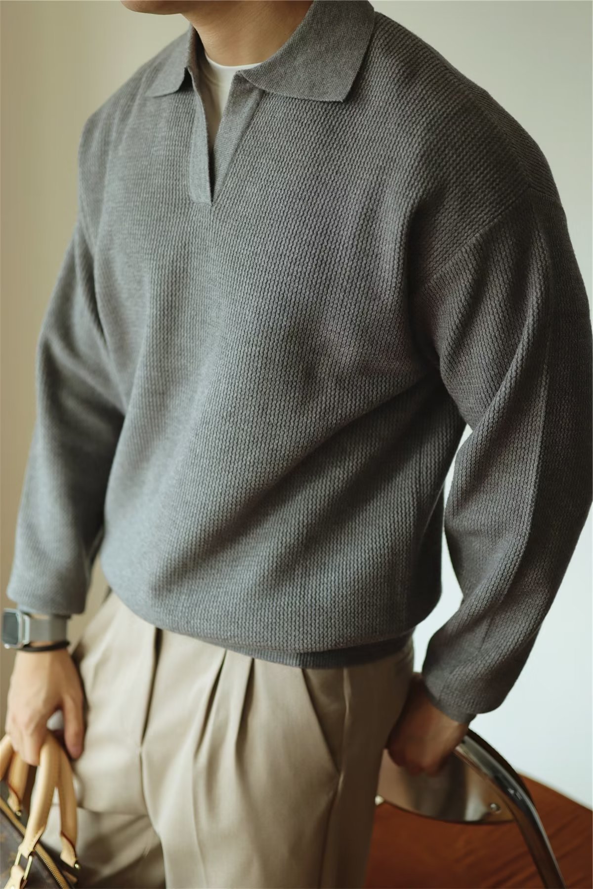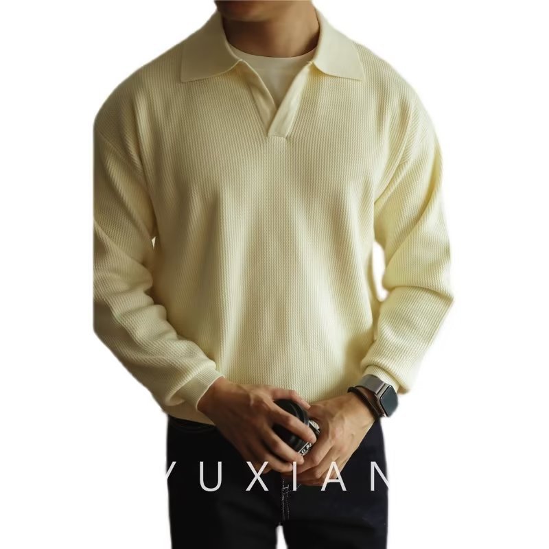 빈티지 V-넥 스웨터 풀오버 스웨터 옷깃 무거운 따뜻한 남자 POLO 긴 소매 코트 미국 가을과 겨울