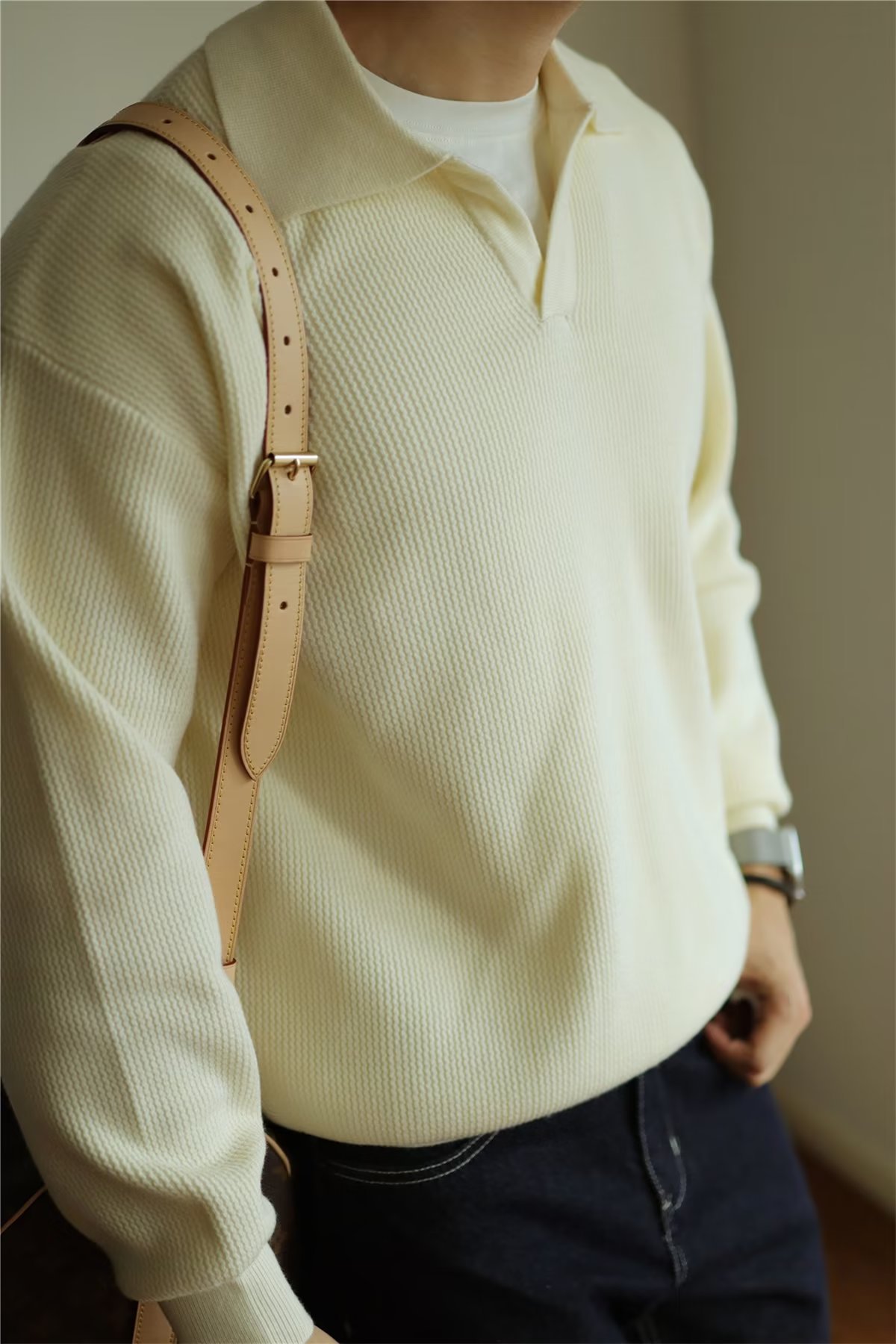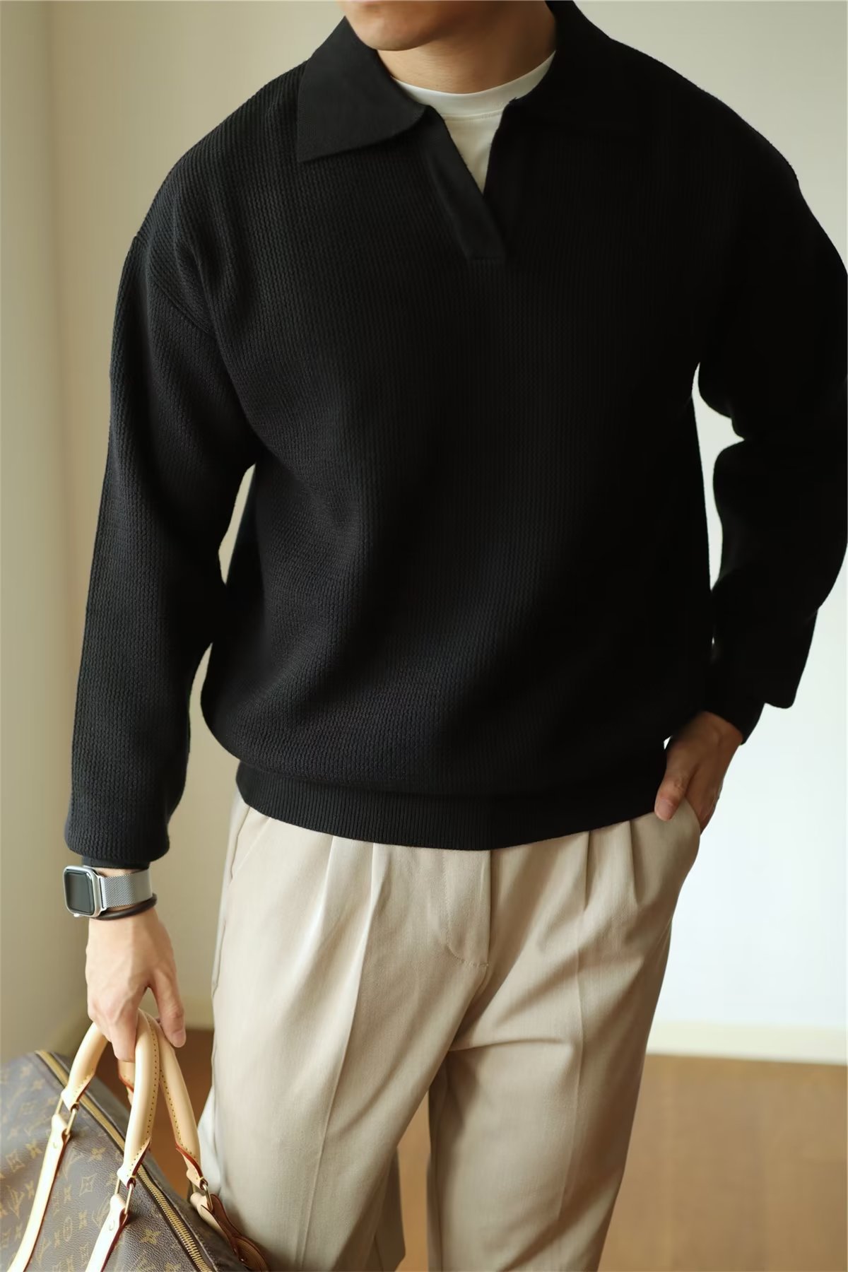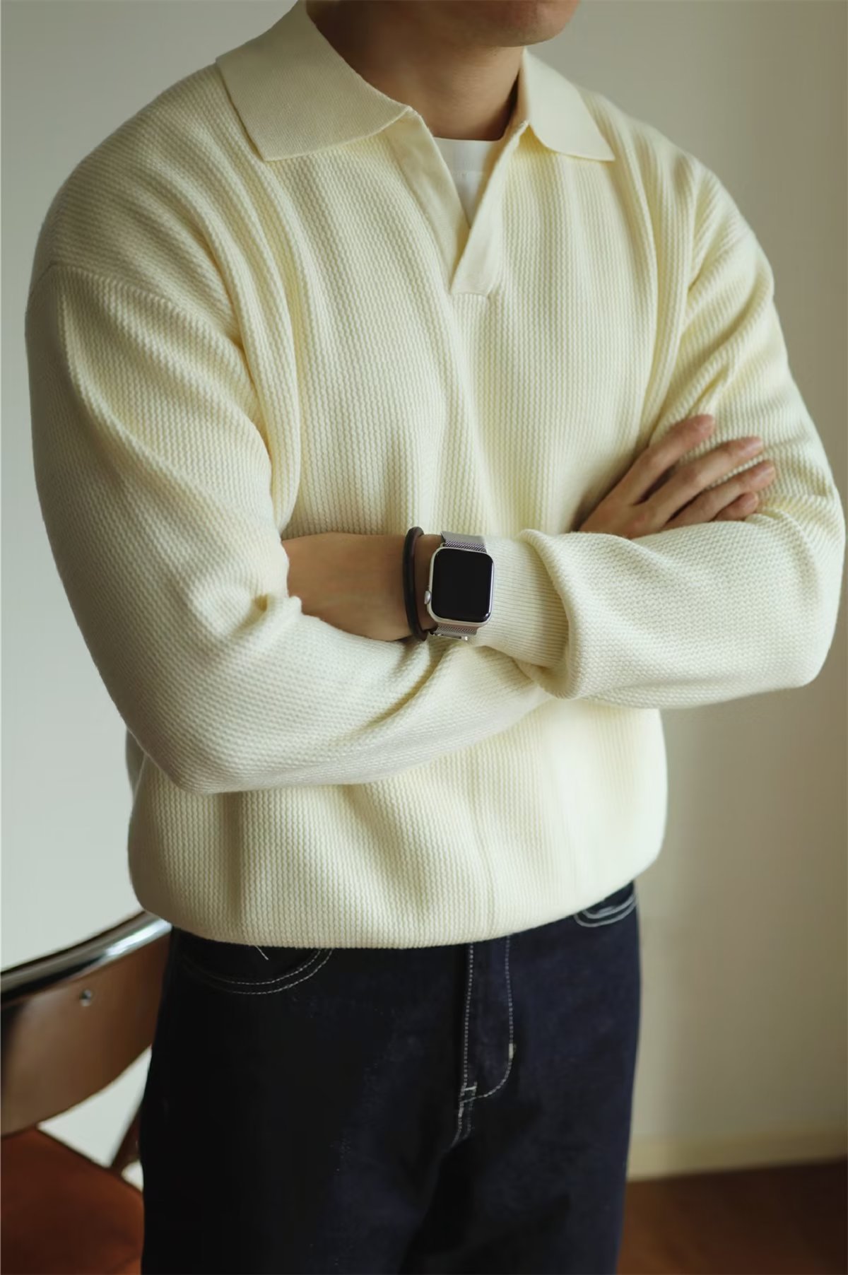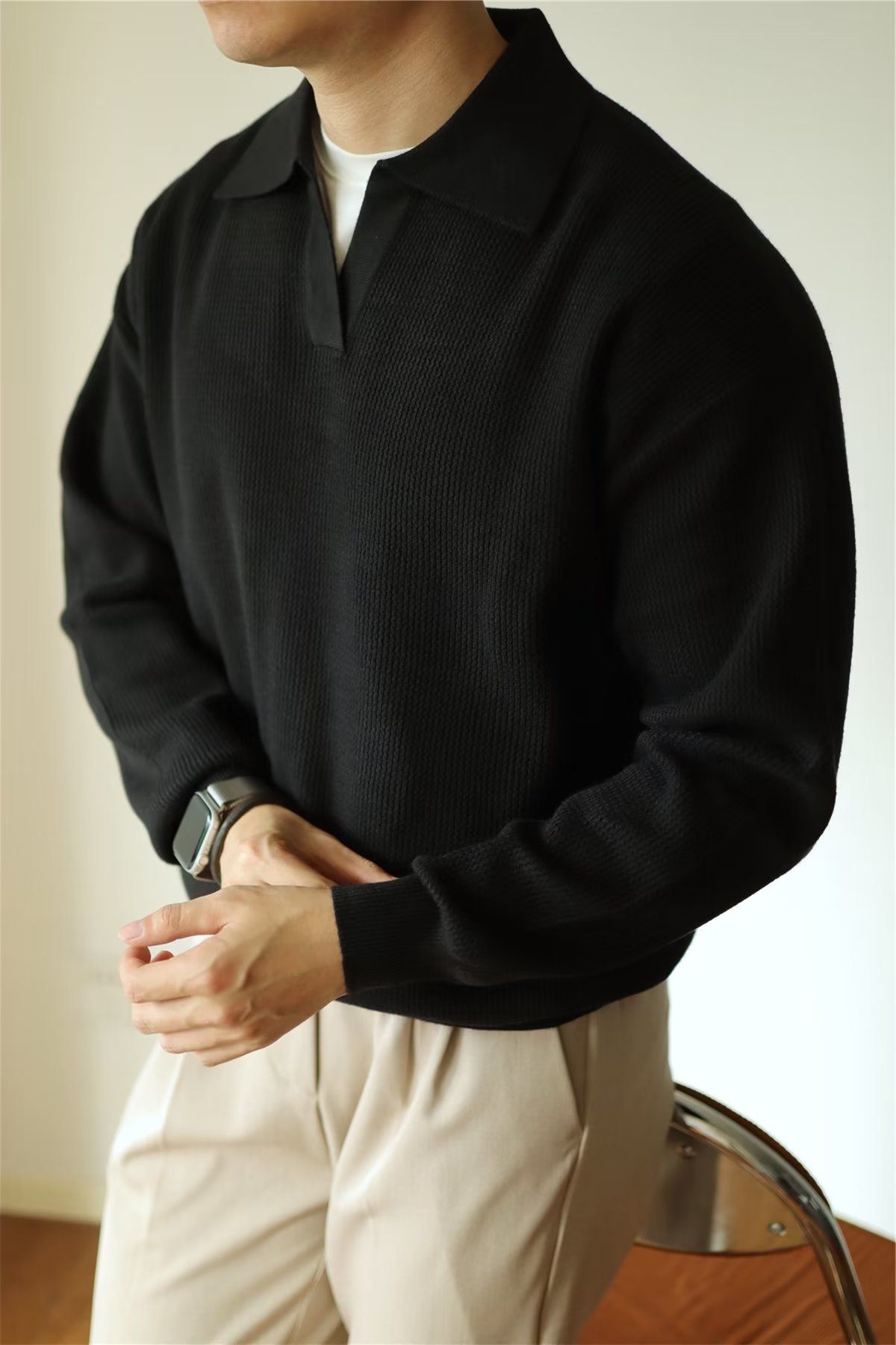 빈티지 V-넥 스웨터 풀오버 스웨터 옷깃 무거운 따뜻한 남자 POLO 긴 소매 코트 미국 가을과 겨울