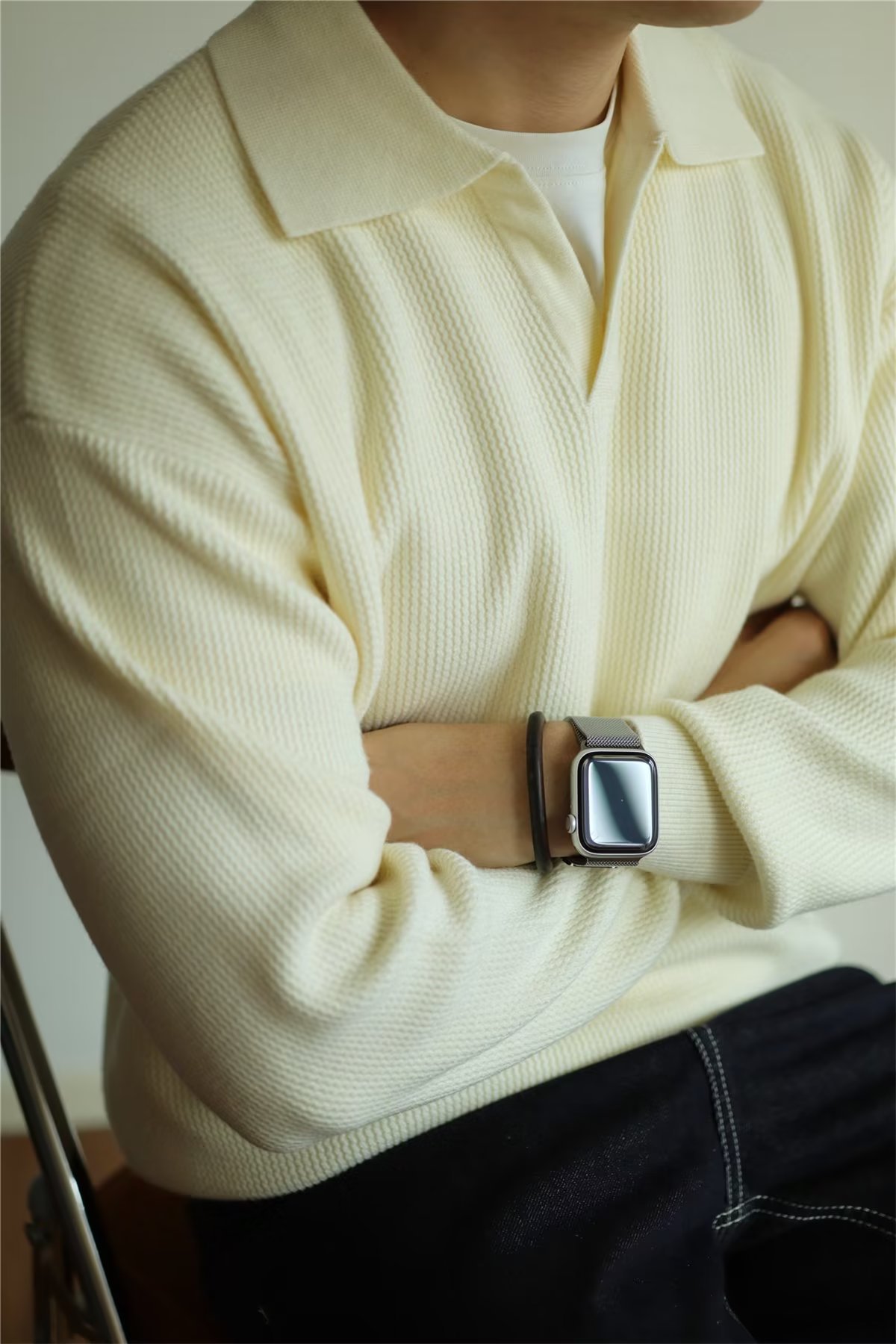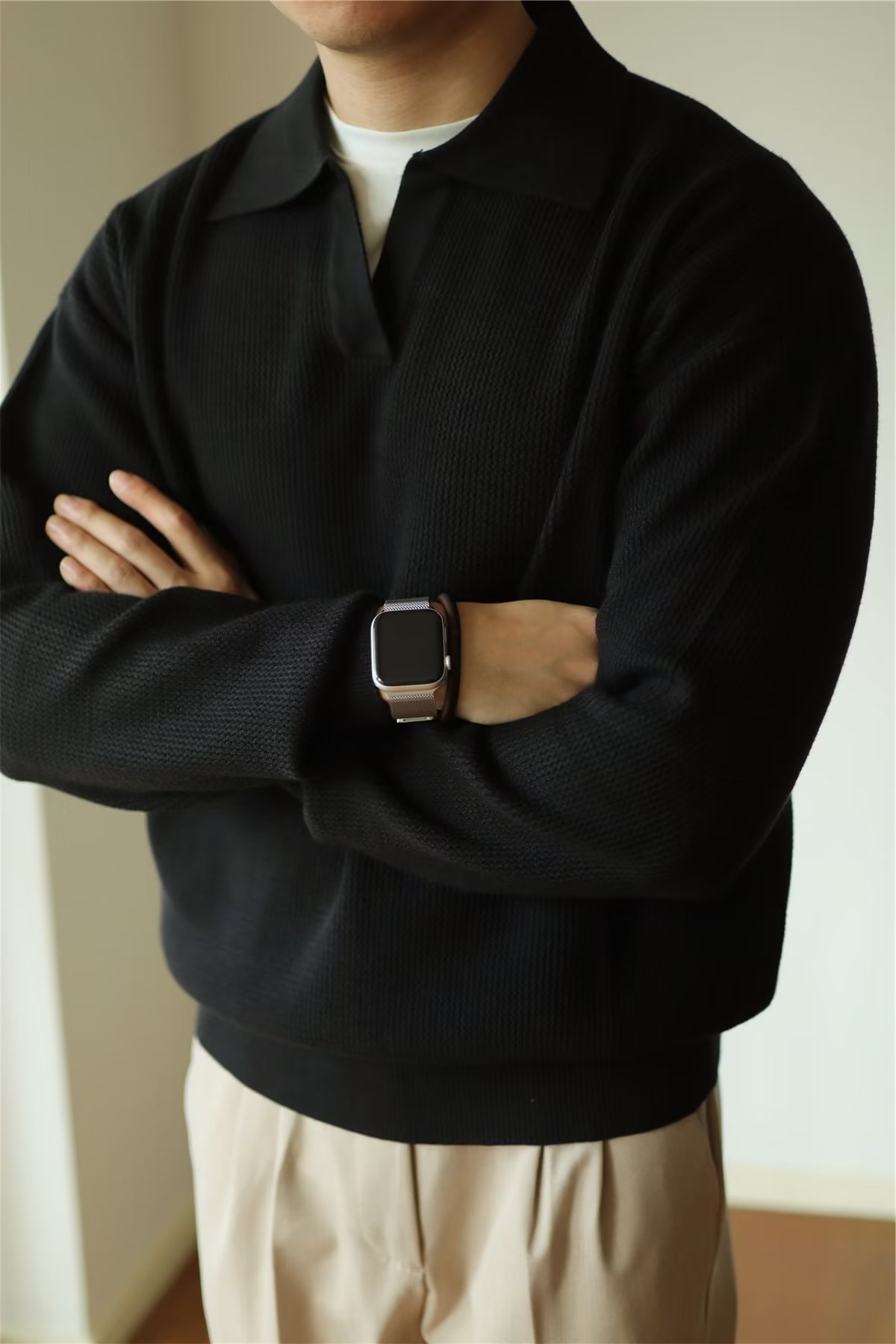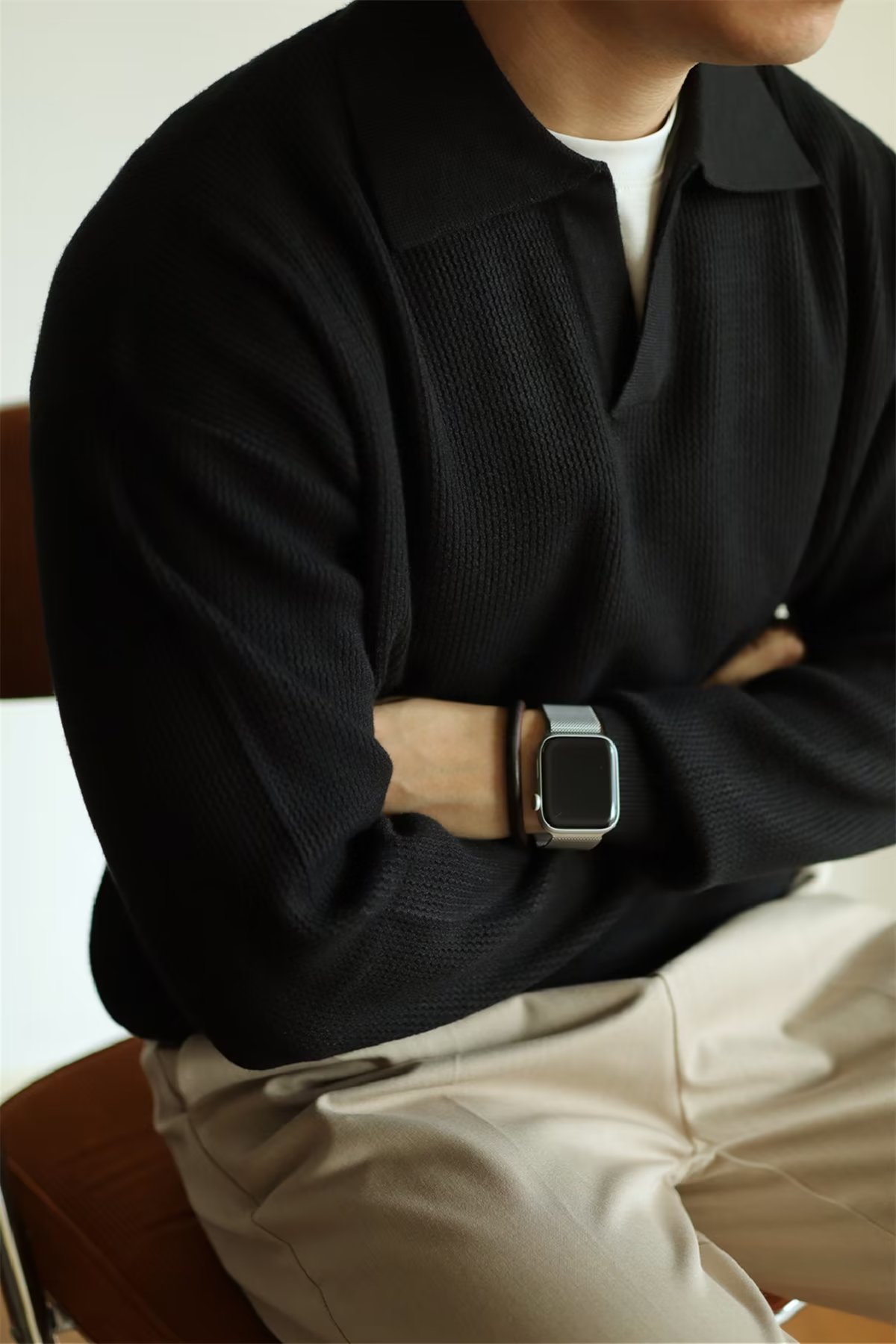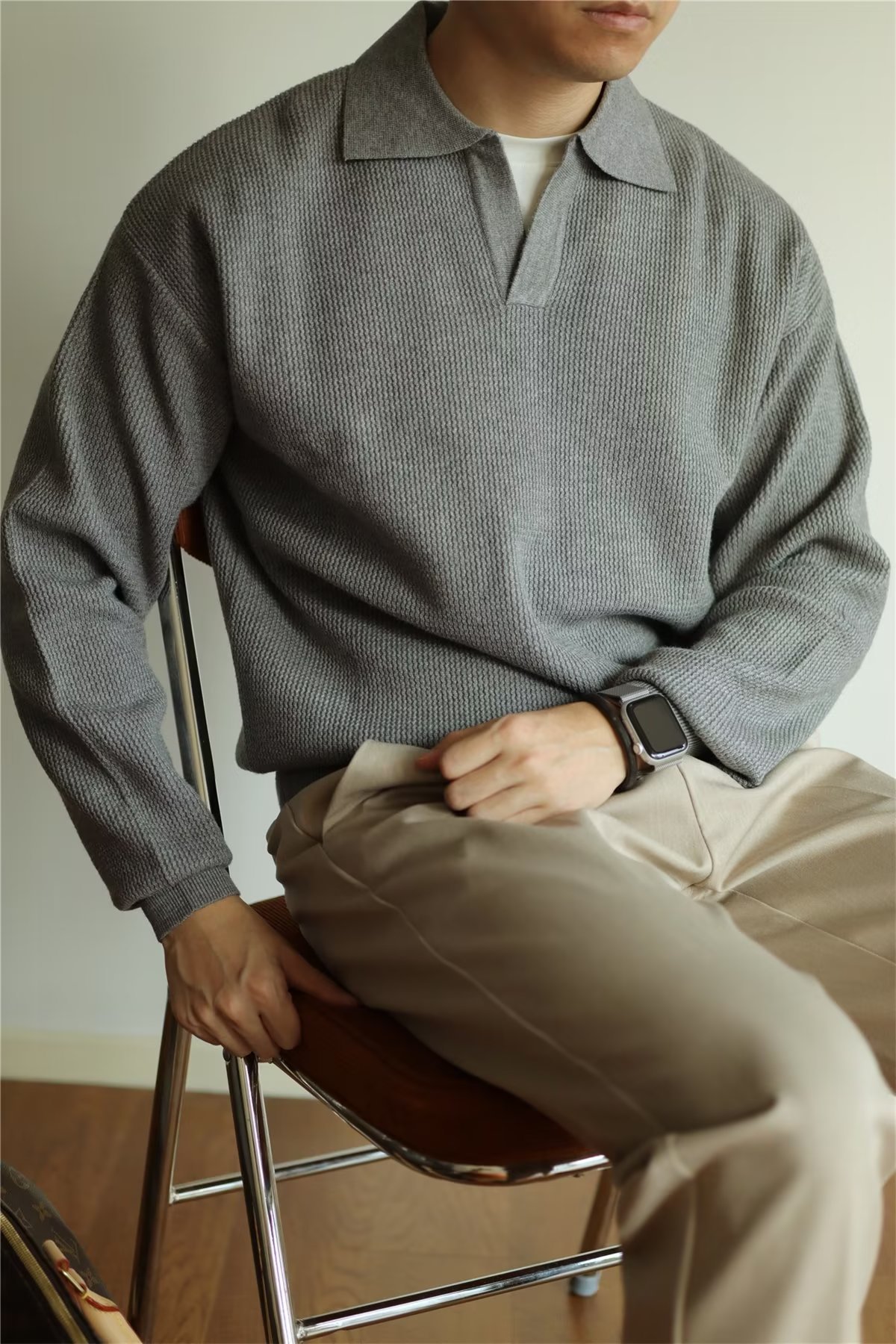 빈티지 V-넥 스웨터 풀오버 스웨터 옷깃 무거운 따뜻한 남자 POLO 긴 소매 코트 미국 가을과 겨울