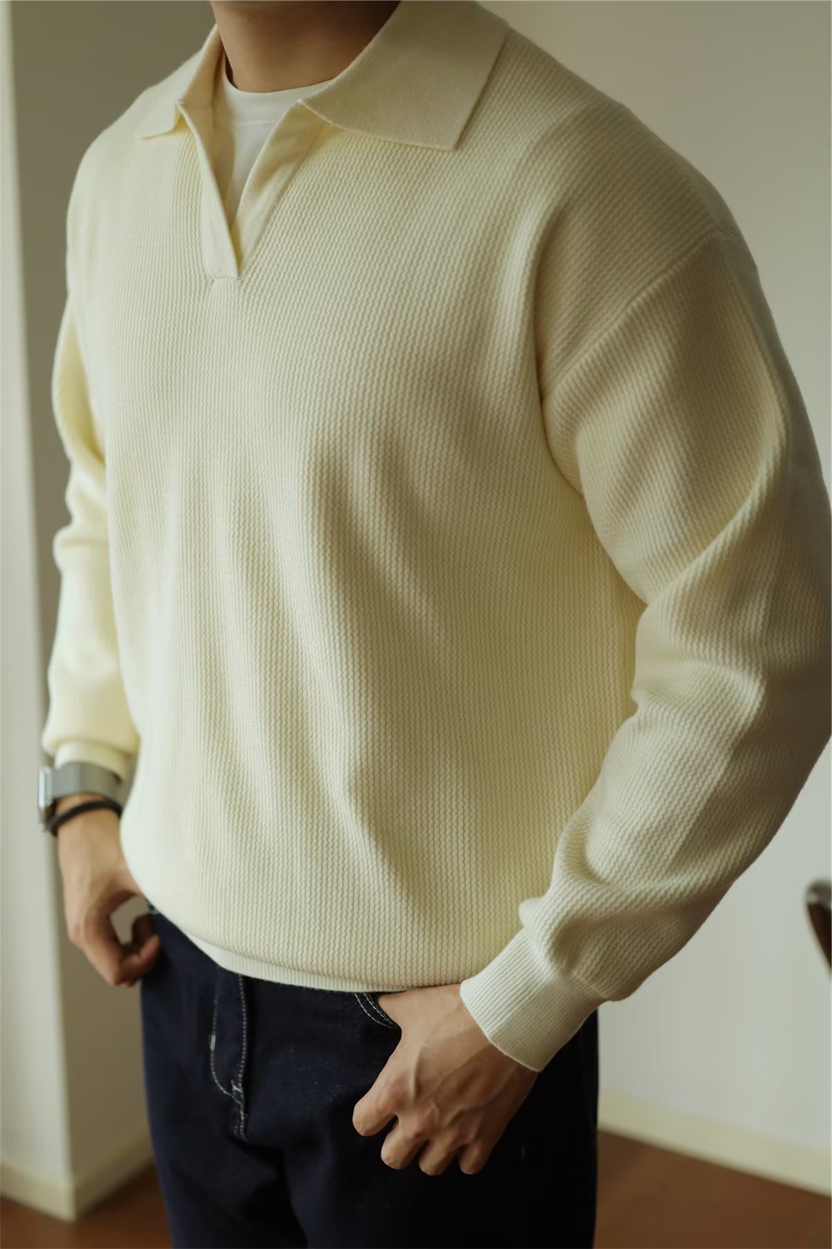 빈티지 V-넥 스웨터 풀오버 스웨터 옷깃 무거운 따뜻한 남자 POLO 긴 소매 코트 미국 가을과 겨울스토어 가기