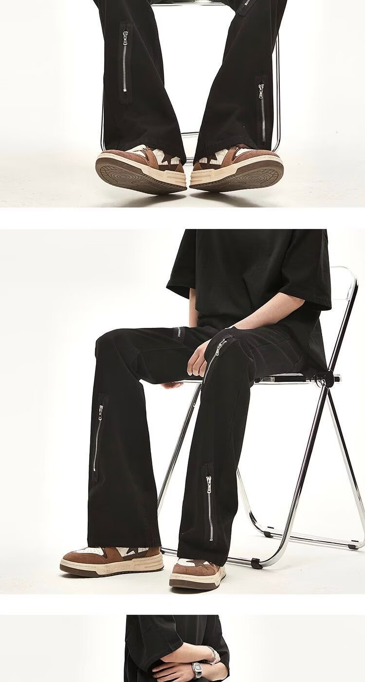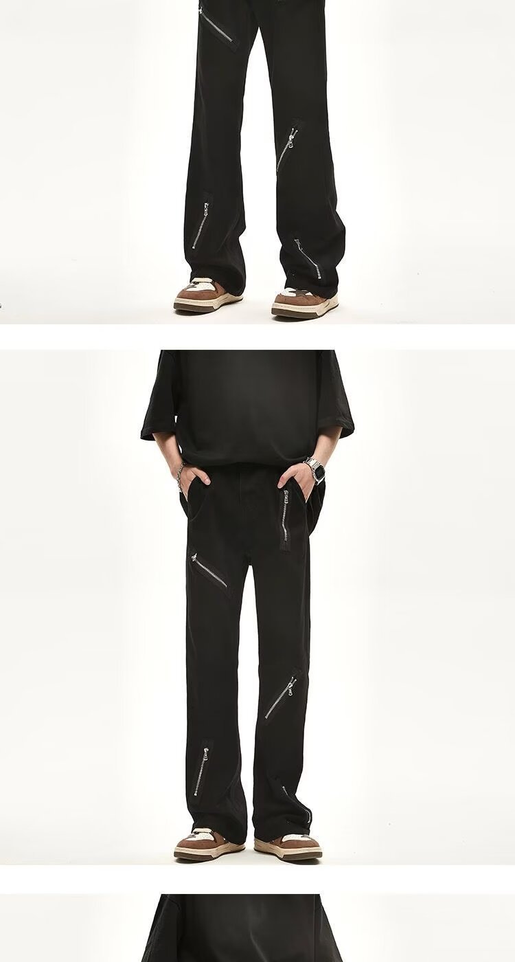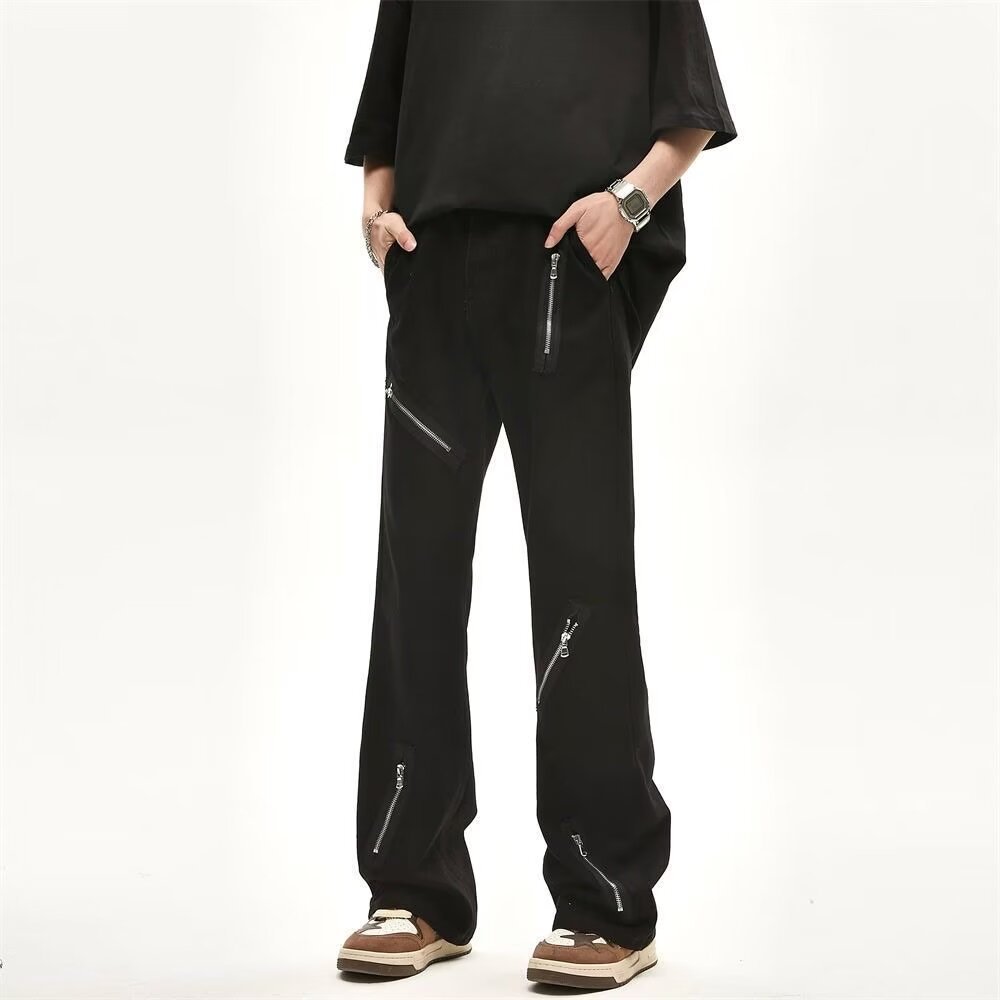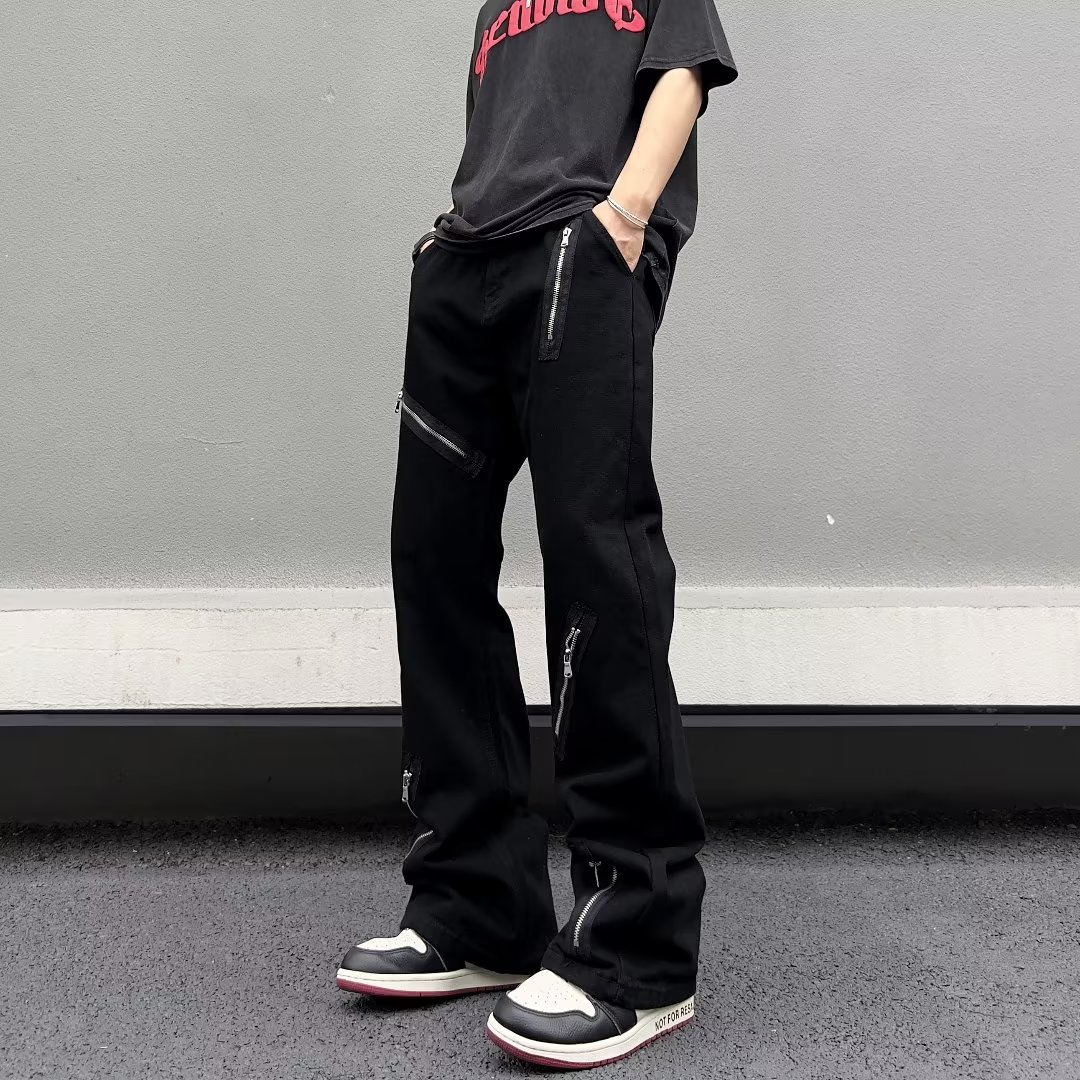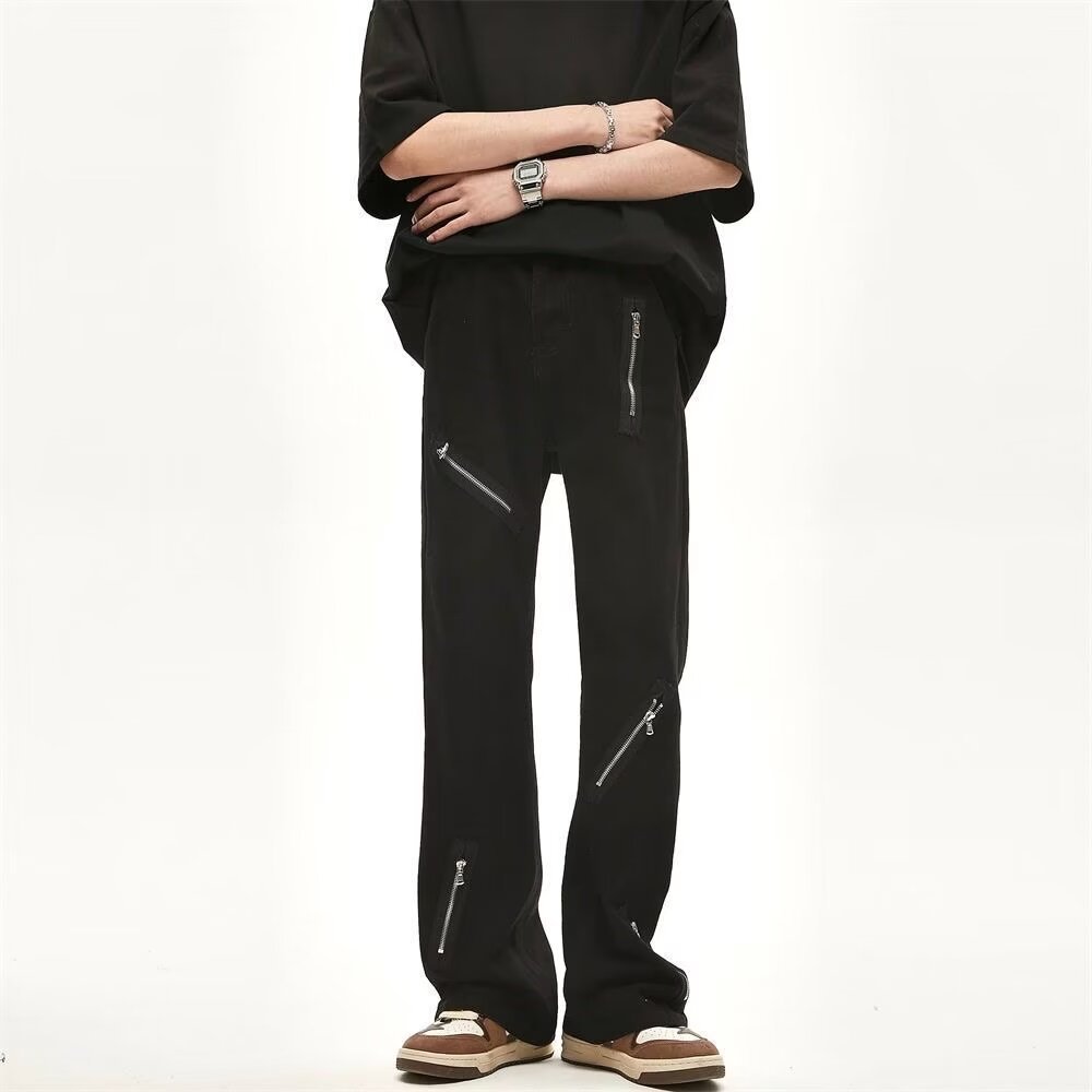 유럽과 미국의 하이 스트리트 지퍼 디자인 센스 마이크로 라 청바지 남성용 트렌디 브랜드 표절 잘 생긴 힙합 루즈 스트리트-튀긴 바지스토어 가기