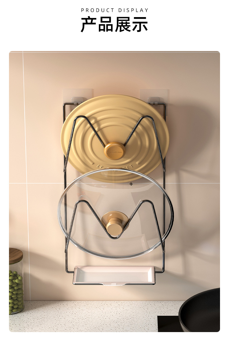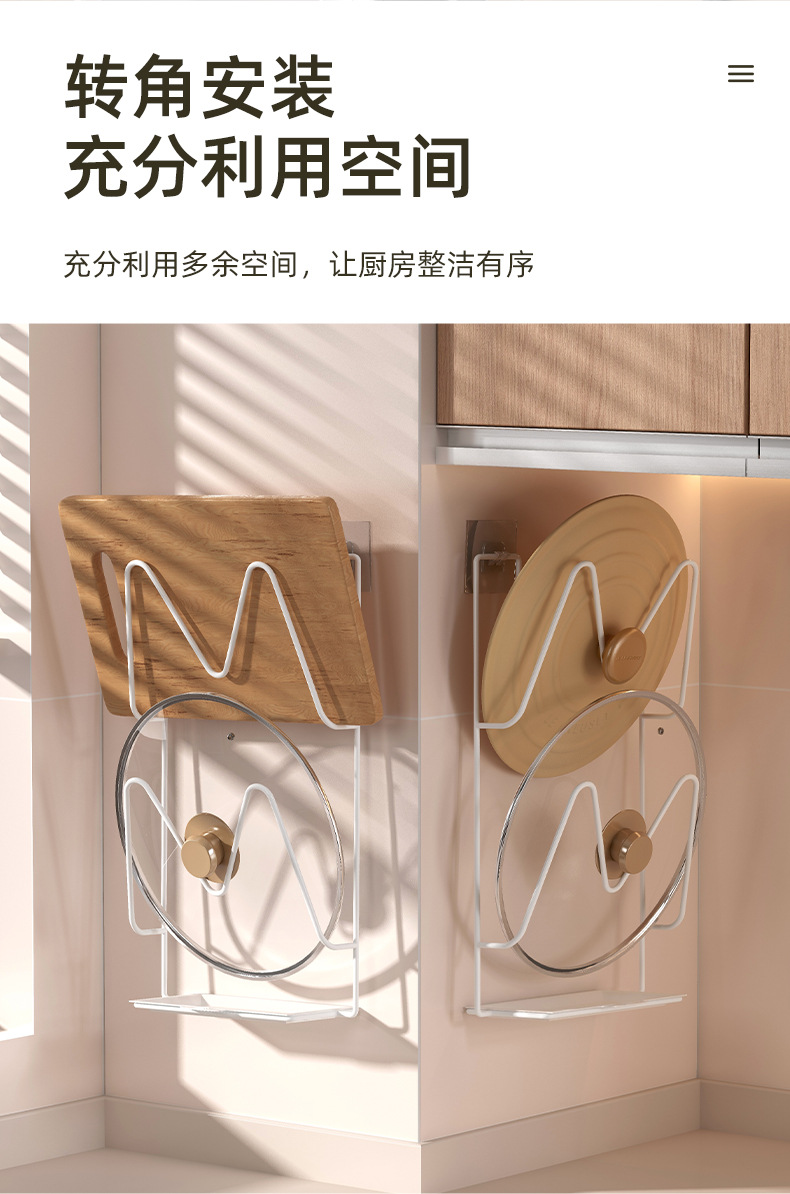 냄비 커버 랙 벽에 구멍이 뚫리지 않은 주방 보관 랙 도마 도마 도마 선반 배수 선반 보관 유물스토어 가기