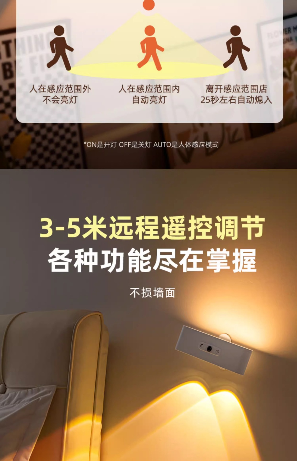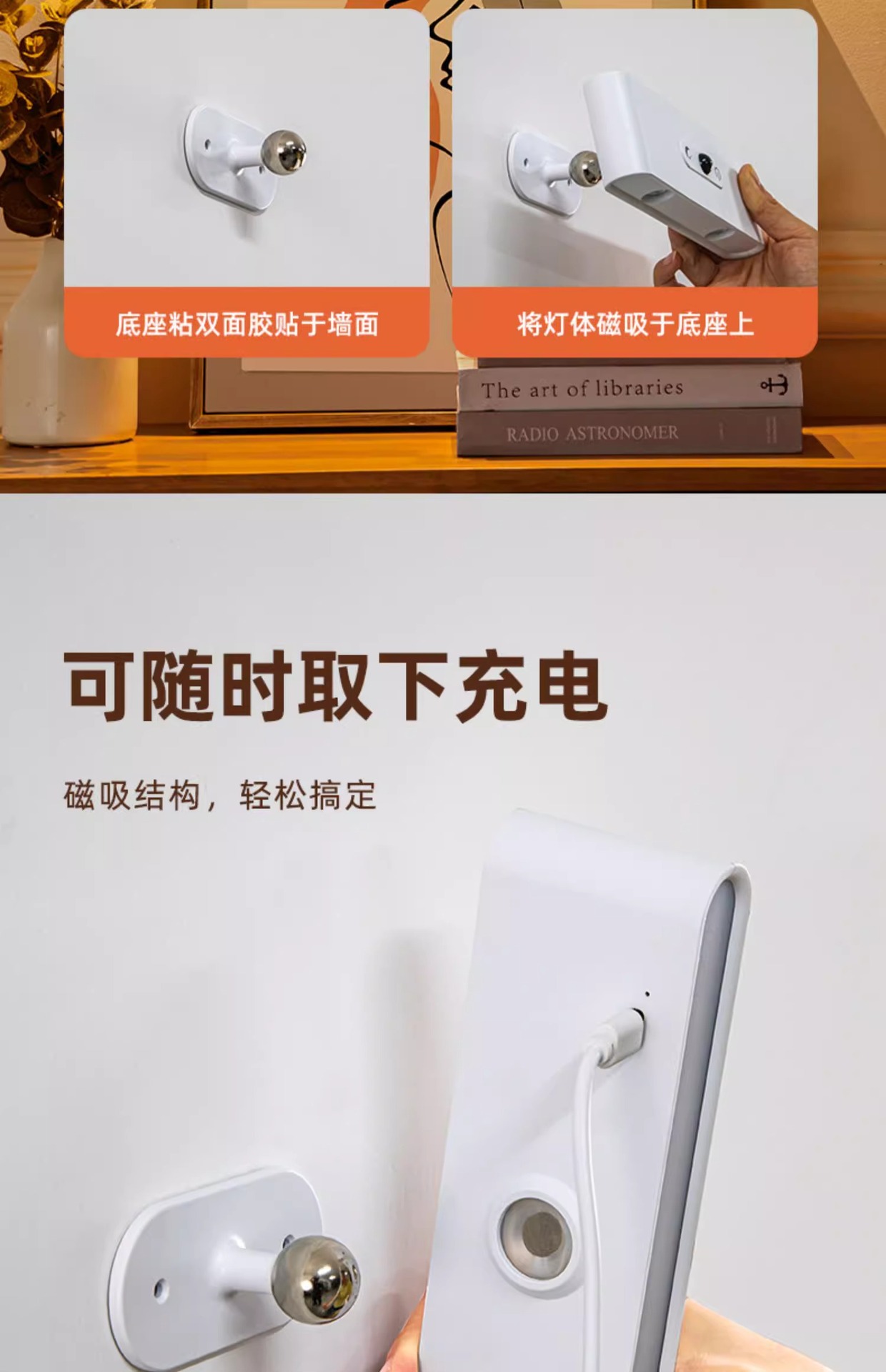 충전식 스포트라이트 배선 무료 펀치 프리 자기 흡입 침대 옆 독서 램프 무선 원격 제어 유도 램프 침실 분위기 책상 램프스토어 가기