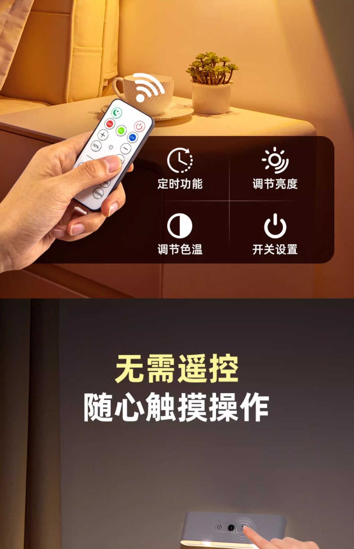 충전식 스포트라이트 배선 무료 펀치 프리 자기 흡입 침대 옆 독서 램프 무선 원격 제어 유도 램프 침실 분위기 책상 램프