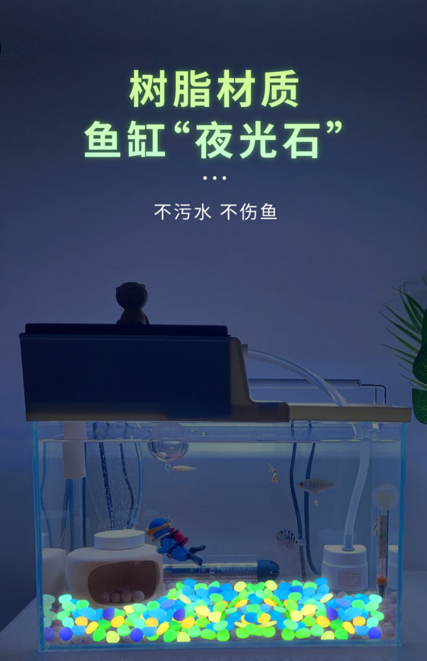 빛나는 돌 물고기 탱크 풍경 장식 작은 장식품 바닥 모래 슈퍼 밝은 형광 돌 수족관 거북이 탱크 세트 Xu Ping스토어 가기