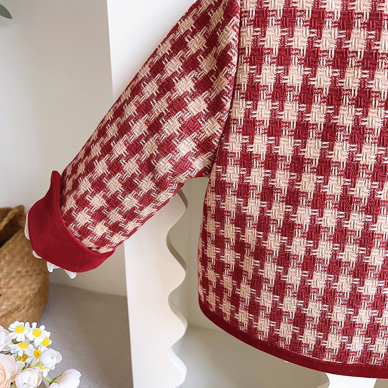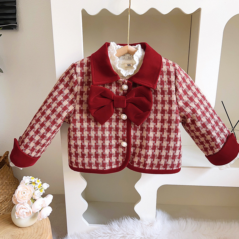 소녀 세트 2024 가을 겨울 새로운 한국 스타일 코튼 보우 코트 주름 스커트 투피스 크로스 보더 헤어스토어 가기