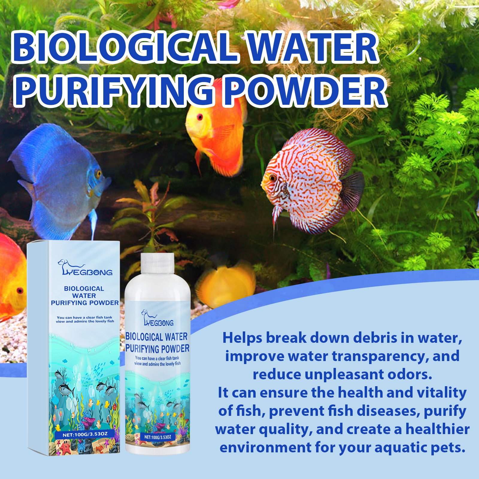 YEGBONG 어항 정수기 조류 제거 분말 청소 어항 이끼 조류 제거 수질 인스턴트 조류 제거 분말