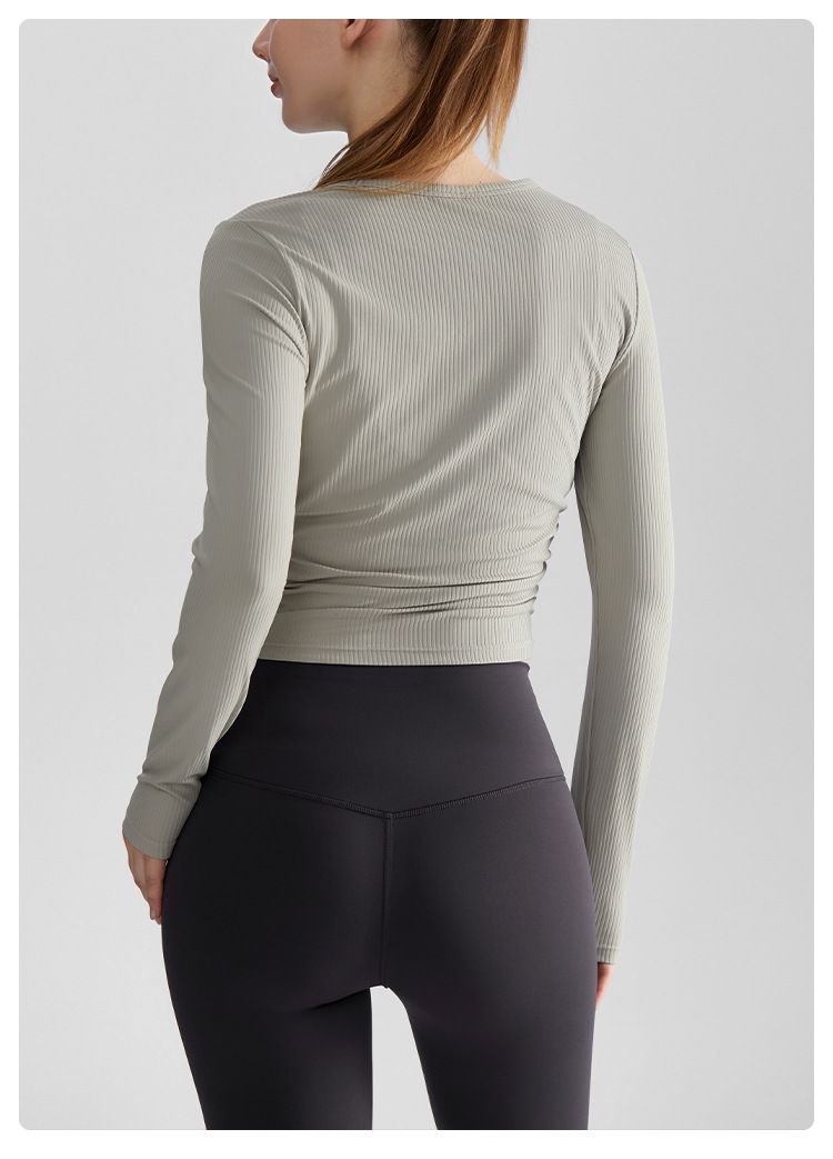 Chuandun 긴 소매 빠른 건조 여성 야외 슬리밍 라운드 넥 다목적 스포츠 러닝 피트니스 요가 의류 가을스토어 가기