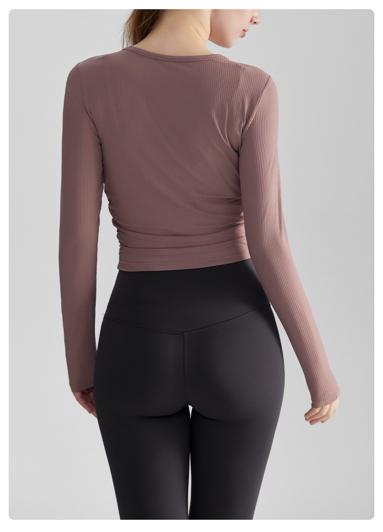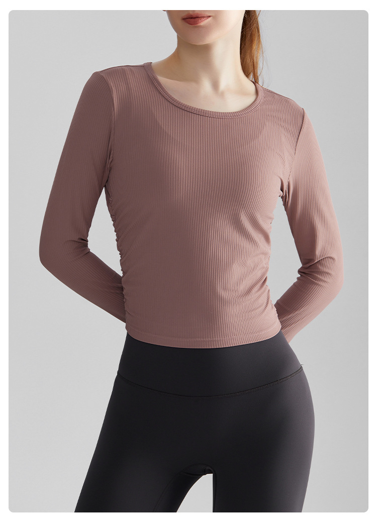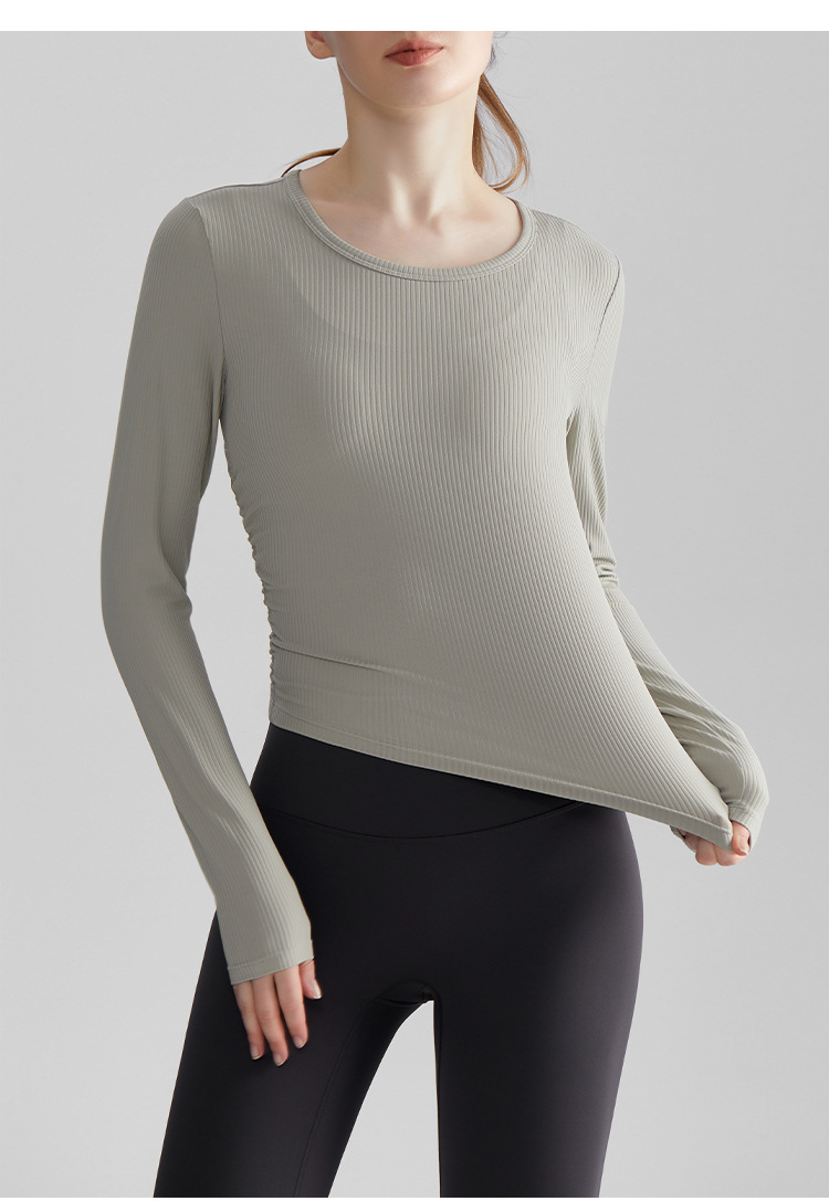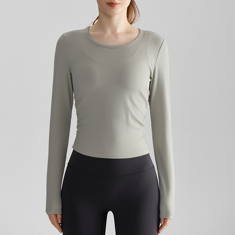 Chuandun 긴 소매 빠른 건조 여성 야외 슬리밍 라운드 넥 다목적 스포츠 러닝 피트니스 요가 의류 가을
