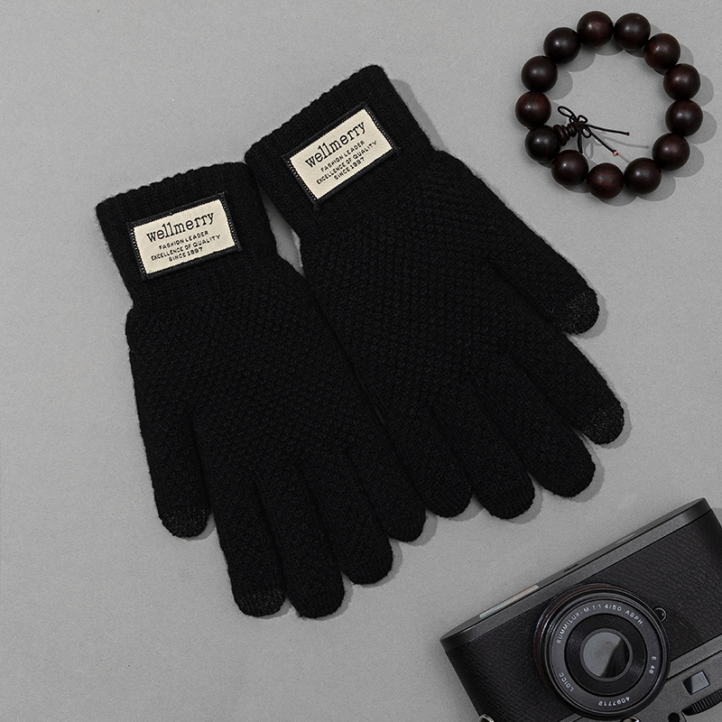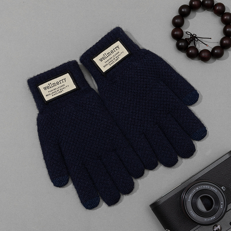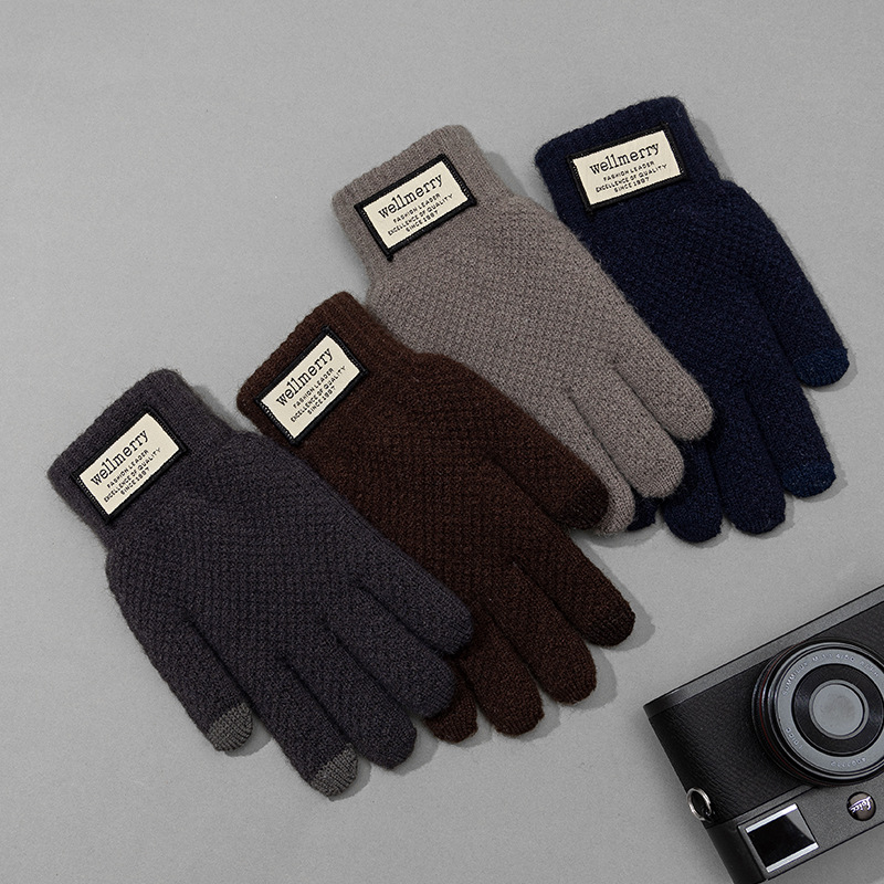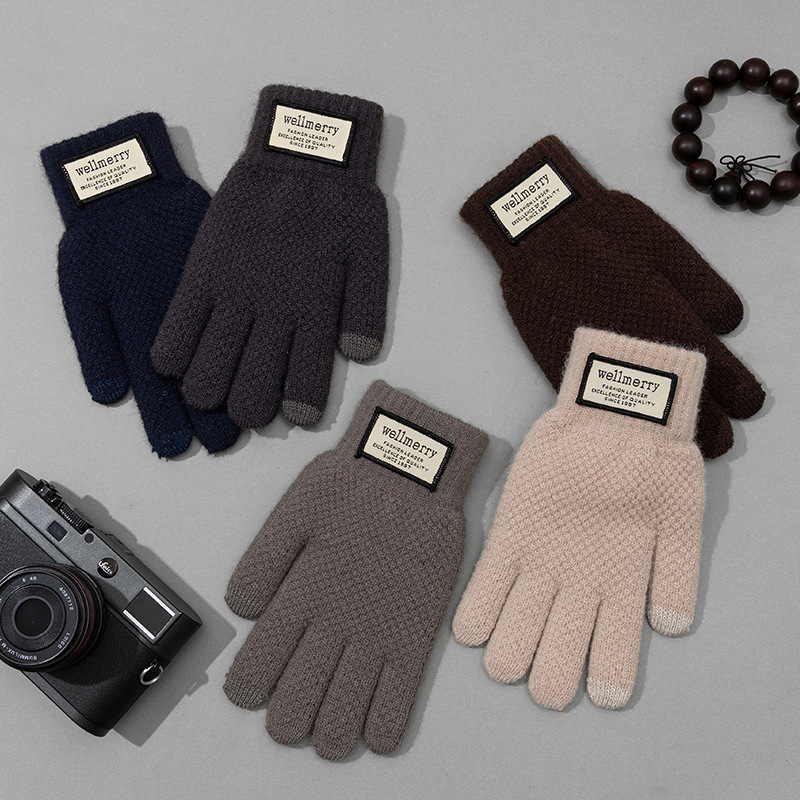 겨울 따뜻한 장갑 남자의 느슨한 플러스 사이즈 양모 니트 장갑 터치 스크린 봉제 두꺼운 감기 방지 사이클링 장갑