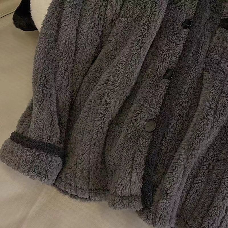 Ins 한국 스타일 Steychie 만화 커플 남성과 여성을위한 잠옷 가을 겨울 기모 두꺼운 산호 양털 홈 옷 세트