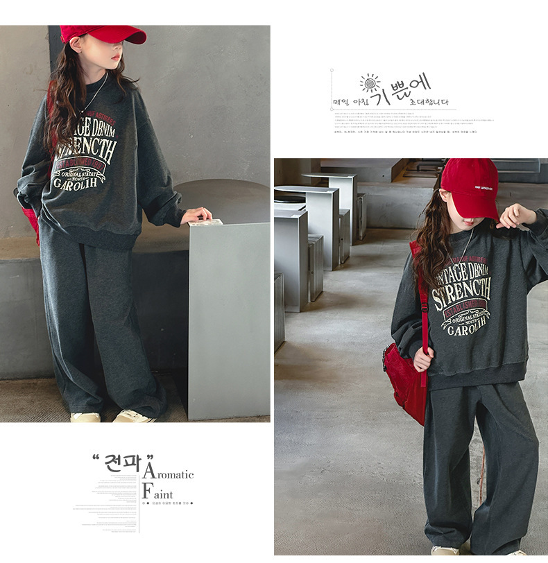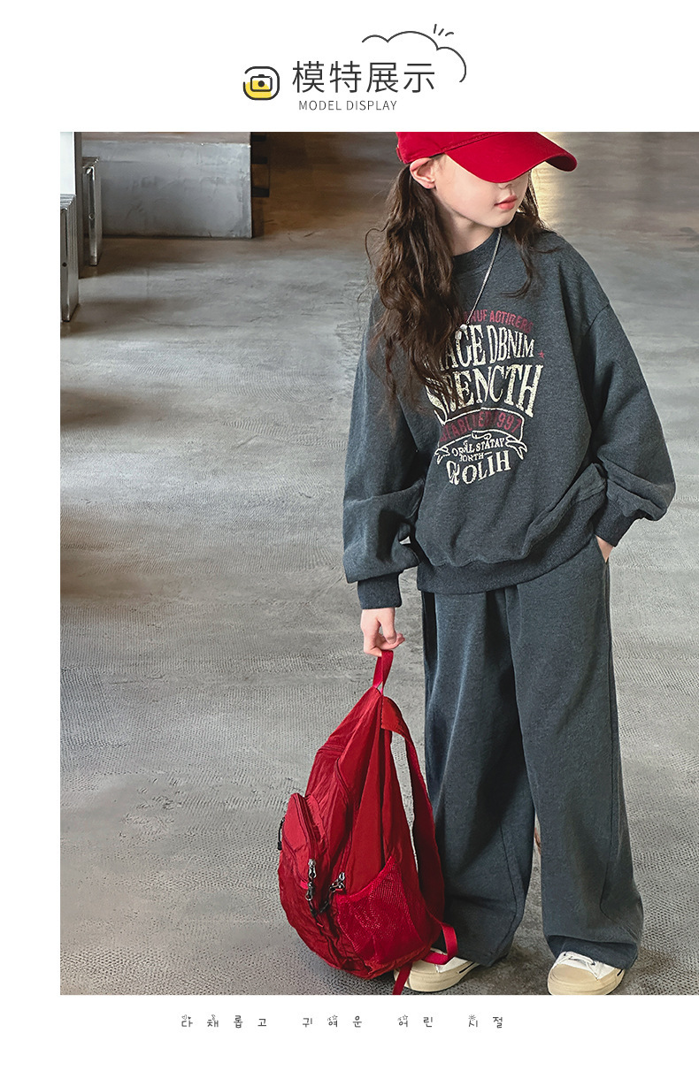소녀 스포츠 세트 가을 2024 새로운 어린이 유행 서양식 소녀 가을 땀 캐주얼 투피스 세트스토어 가기
