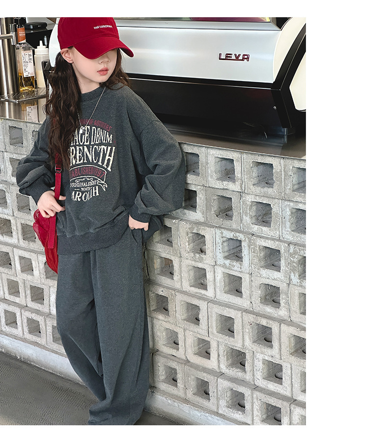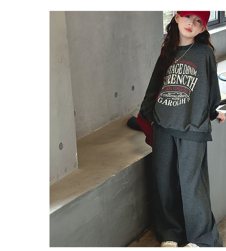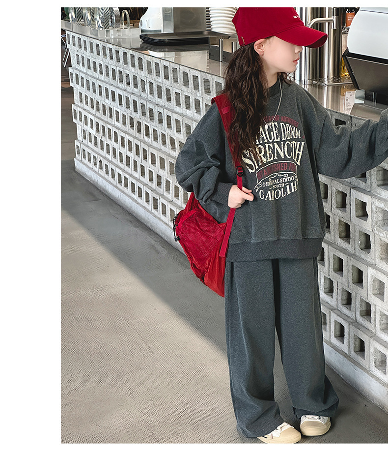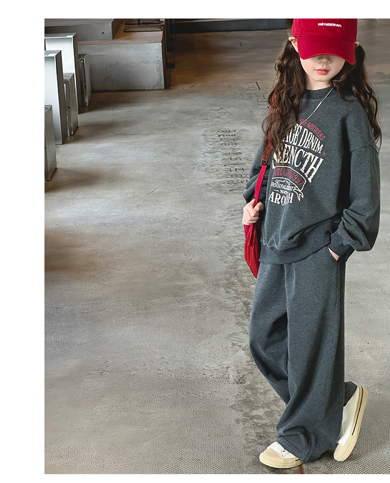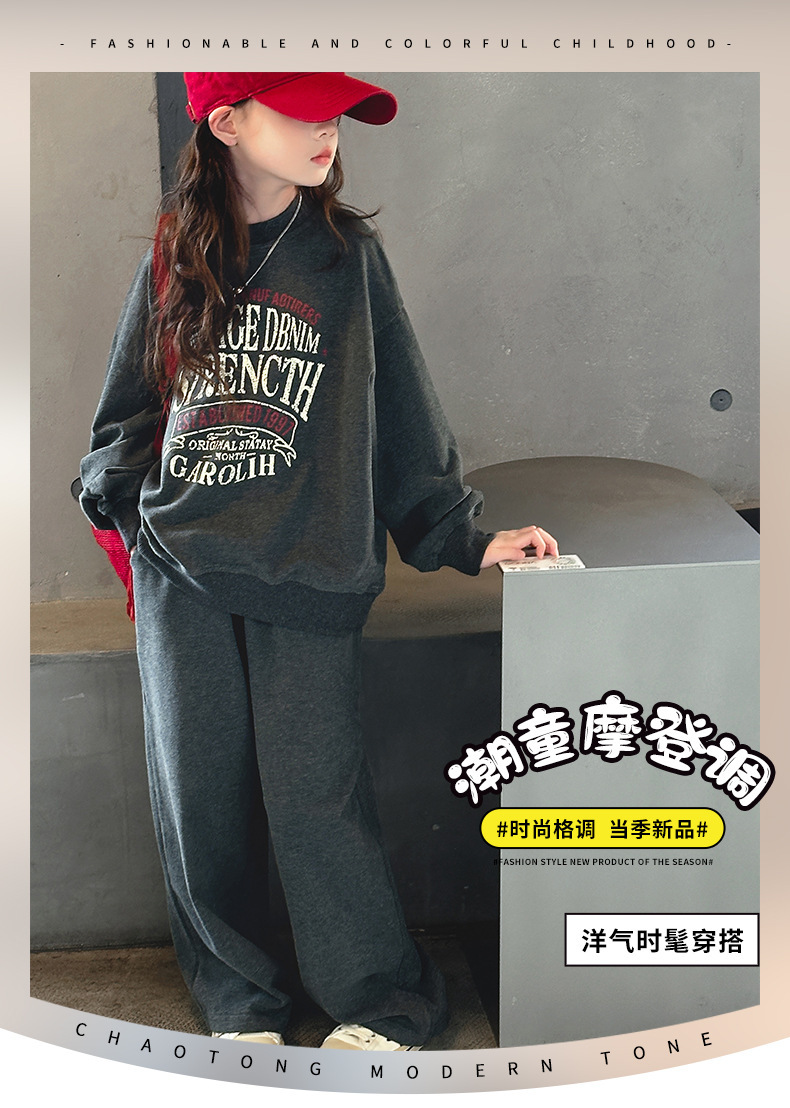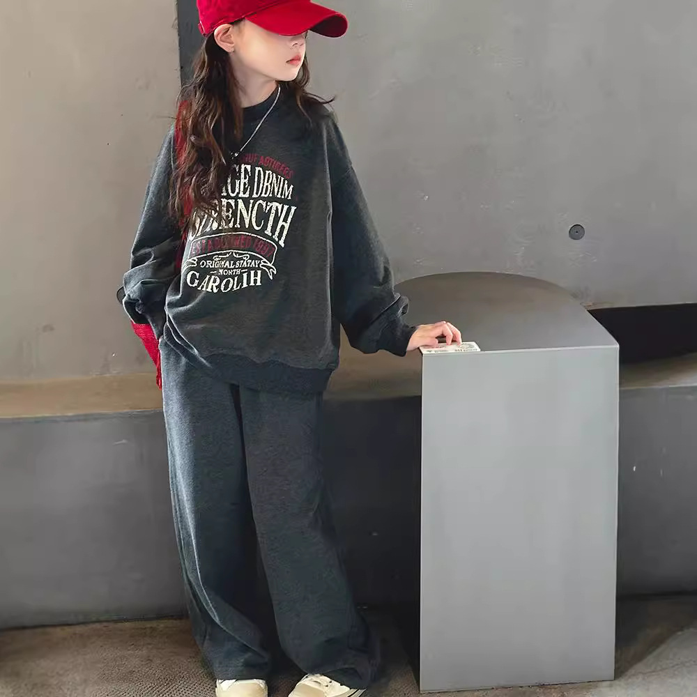 소녀 스포츠 세트 가을 2024 새로운 어린이 유행 서양식 소녀 가을 땀 캐주얼 투피스 세트