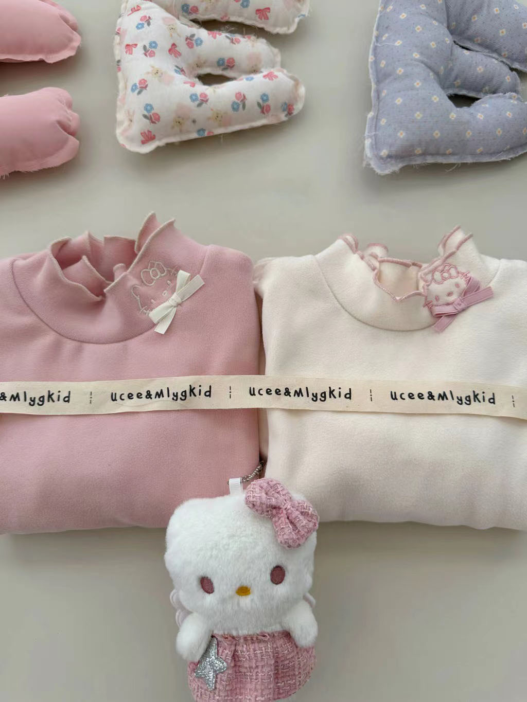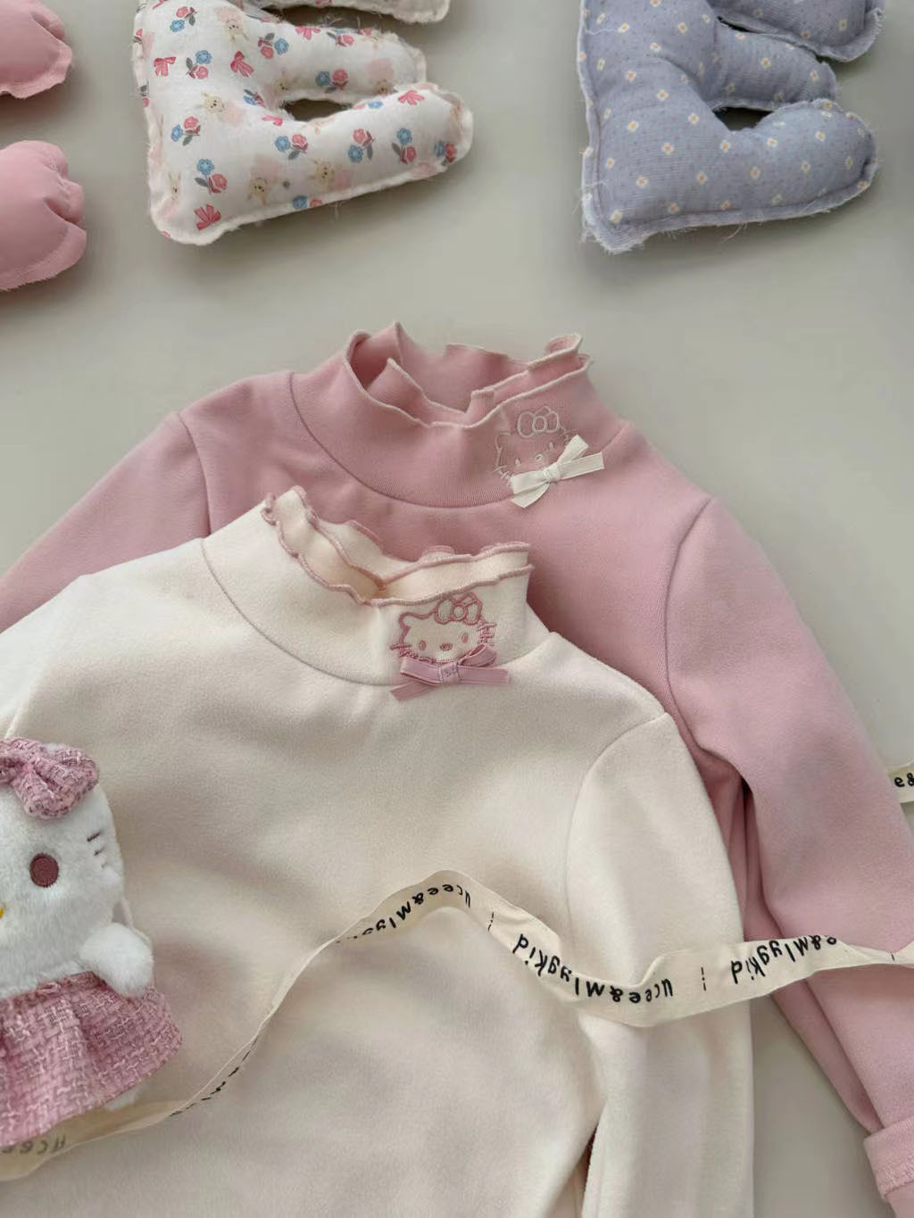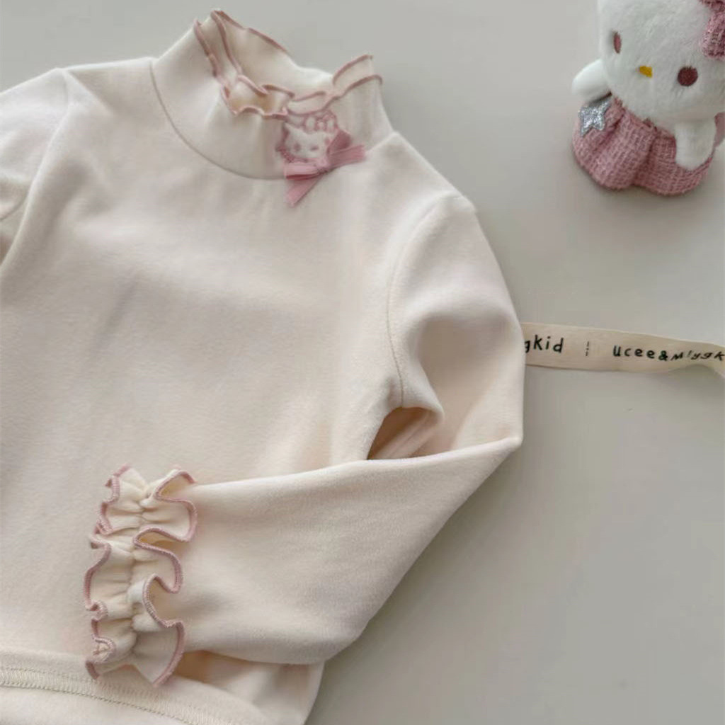 Tongxingyuan Girls 'Winter Velvet Pleated Base 셔츠 가을과 겨울 소녀 아기 소녀 세련된 올 매치 유행 티셔츠 탑 T