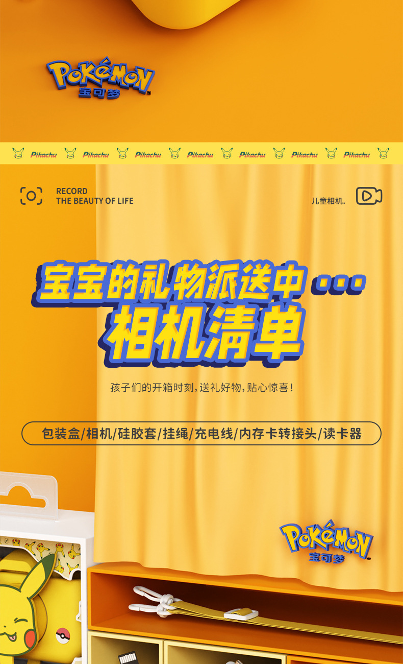 피카츄 정품 공인 어린이 카메라로 사진과 비디오를 찍을 수 있는 고화질 듀얼 카메라 재미있는 교육 장난감 선물