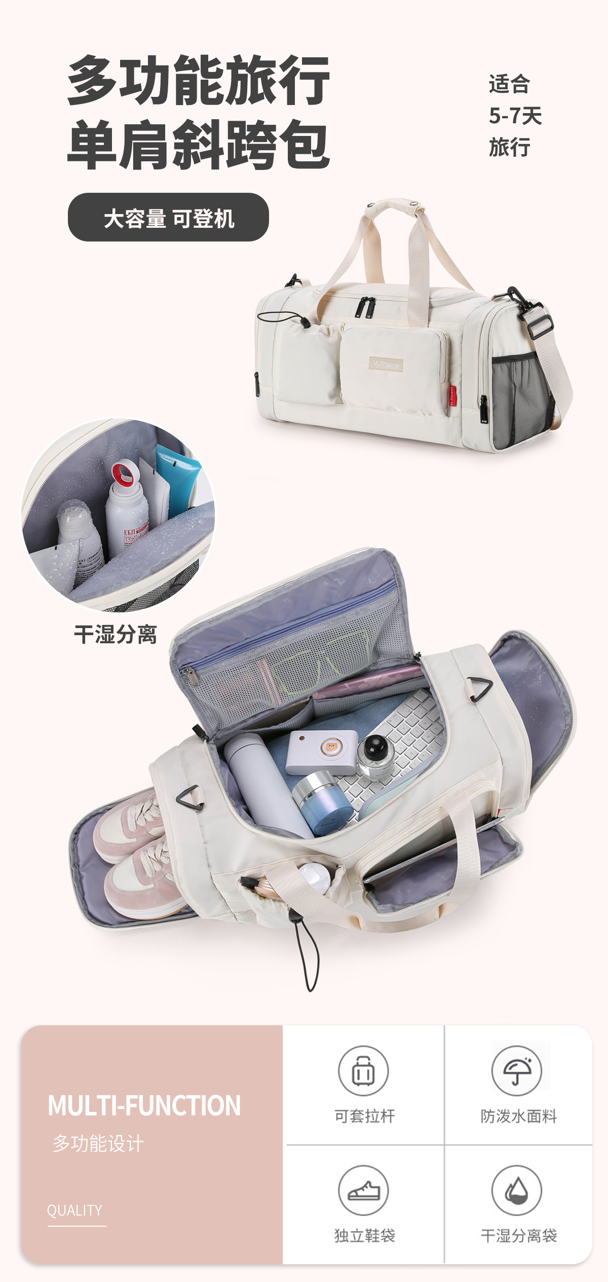 단거리 비즈니스 여행 휴대용 여행 가방 건조하고 젖은 별도의 스포츠 피트니스 가방 독립적 인 신발 빈 단일 어깨 크로스 백