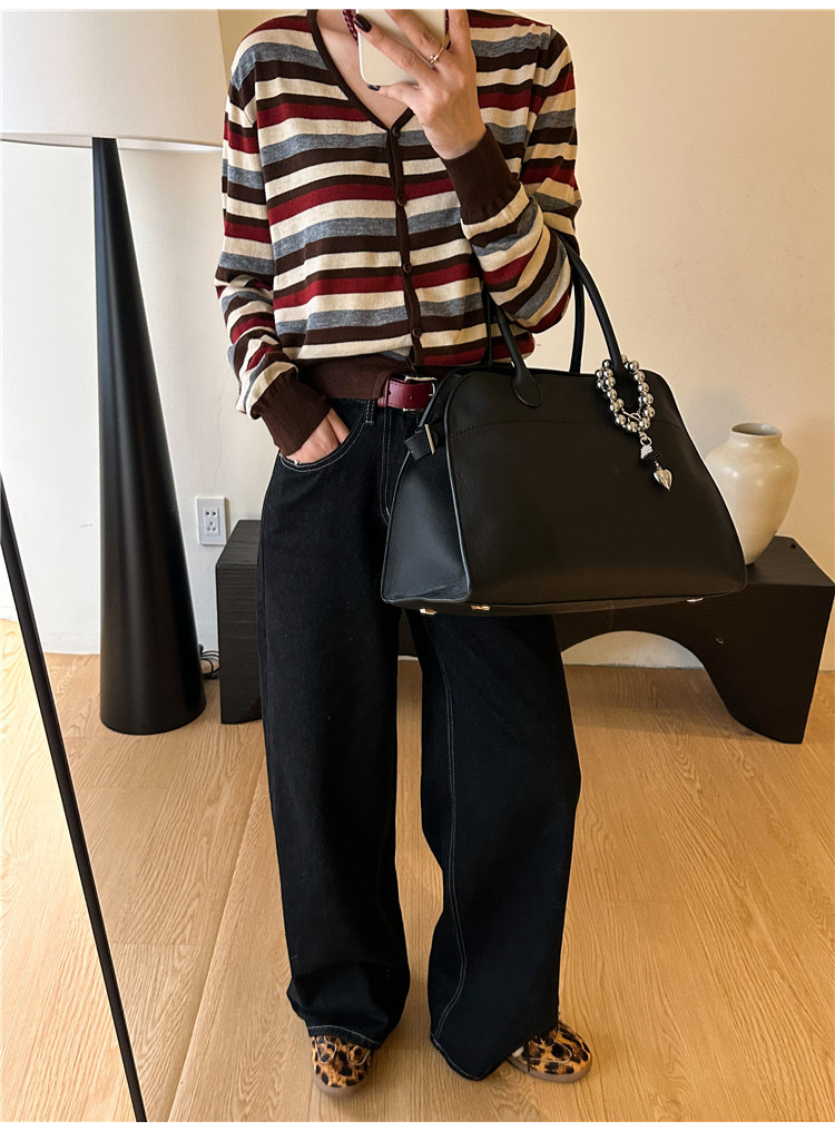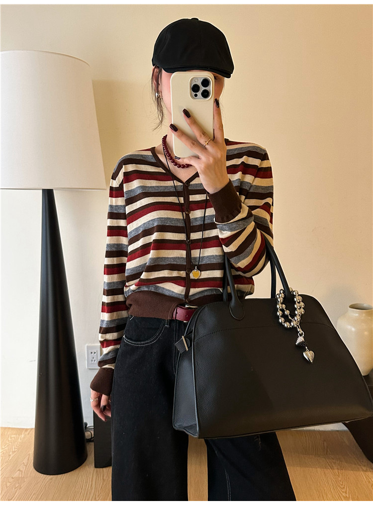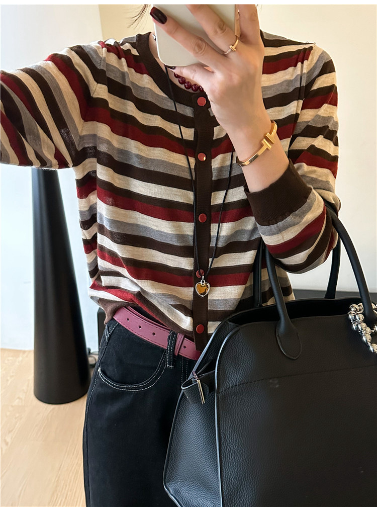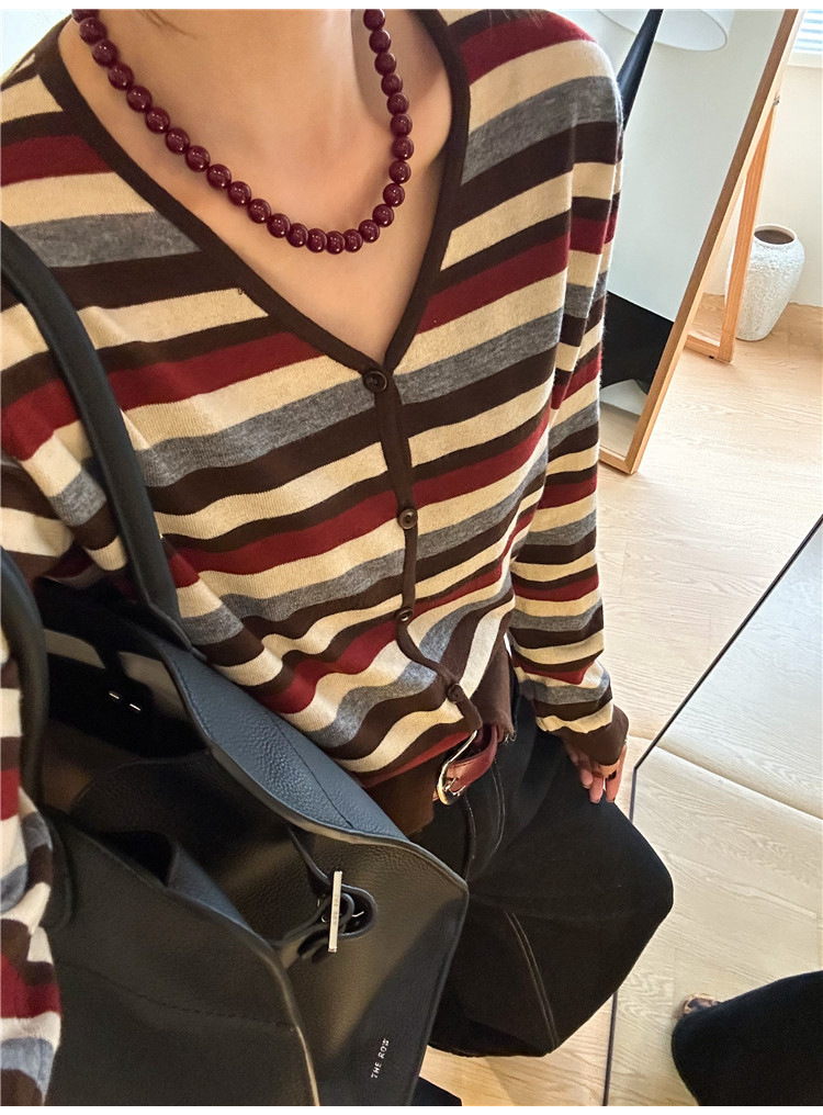 대조 줄무늬 양모 니트 카디건 여자 유럽 역 2024 가을 새로운 유럽 여성의 얇은 기지 셔츠 트렌디스토어 가기