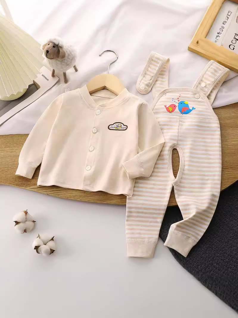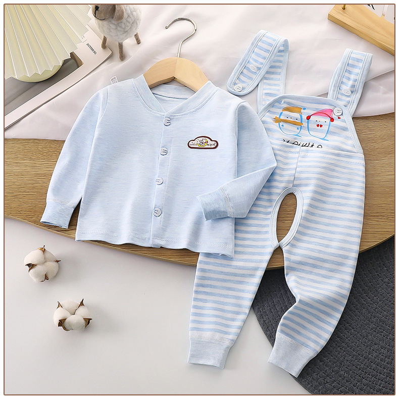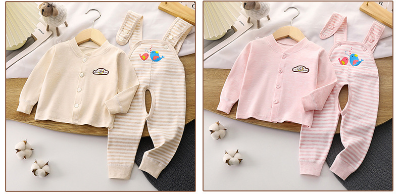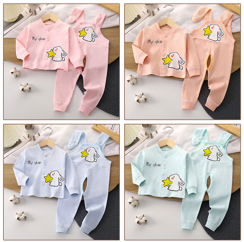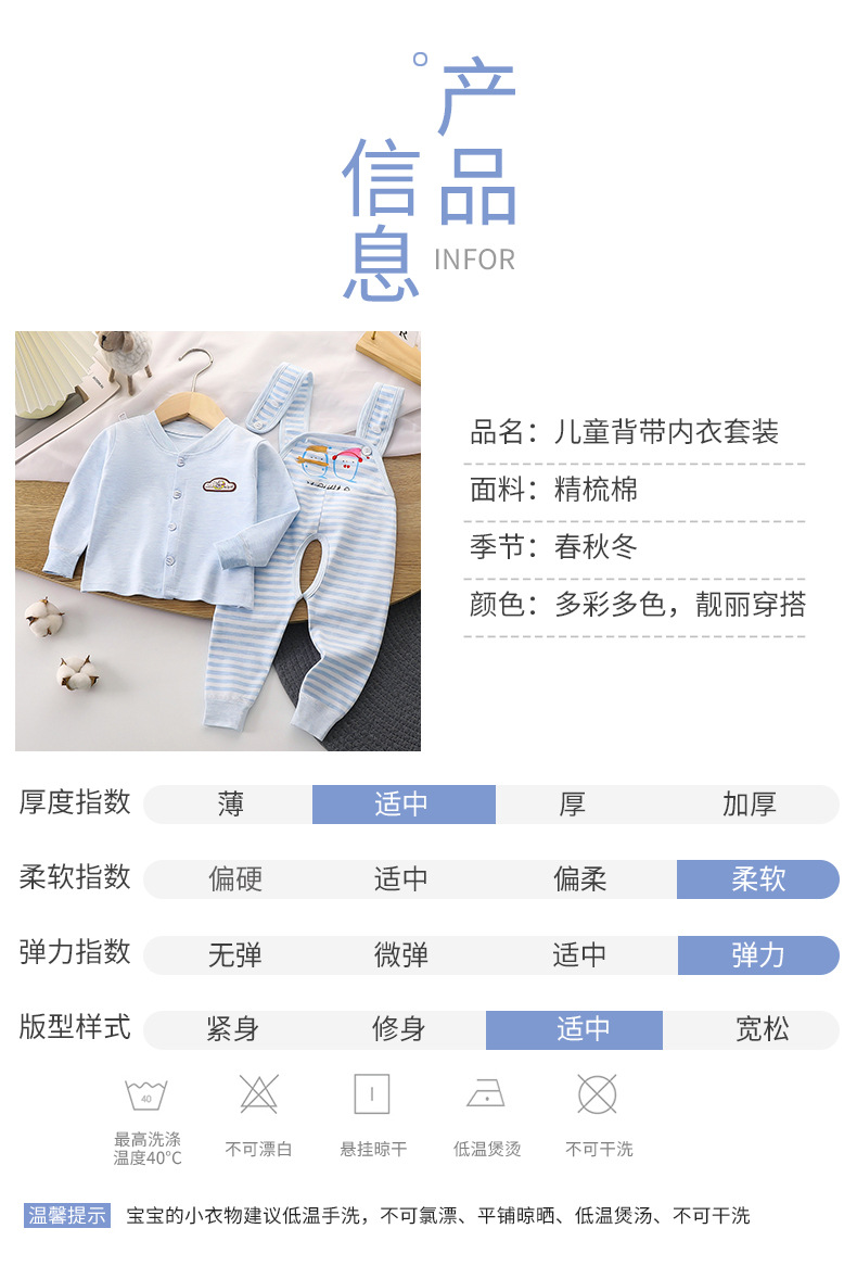 어린이 소년과 소녀 아기 색 면 순수 높은 허리 신생아 아기 끈 바지 가을 옷 가을 바지 내복 세트 봄과 가을