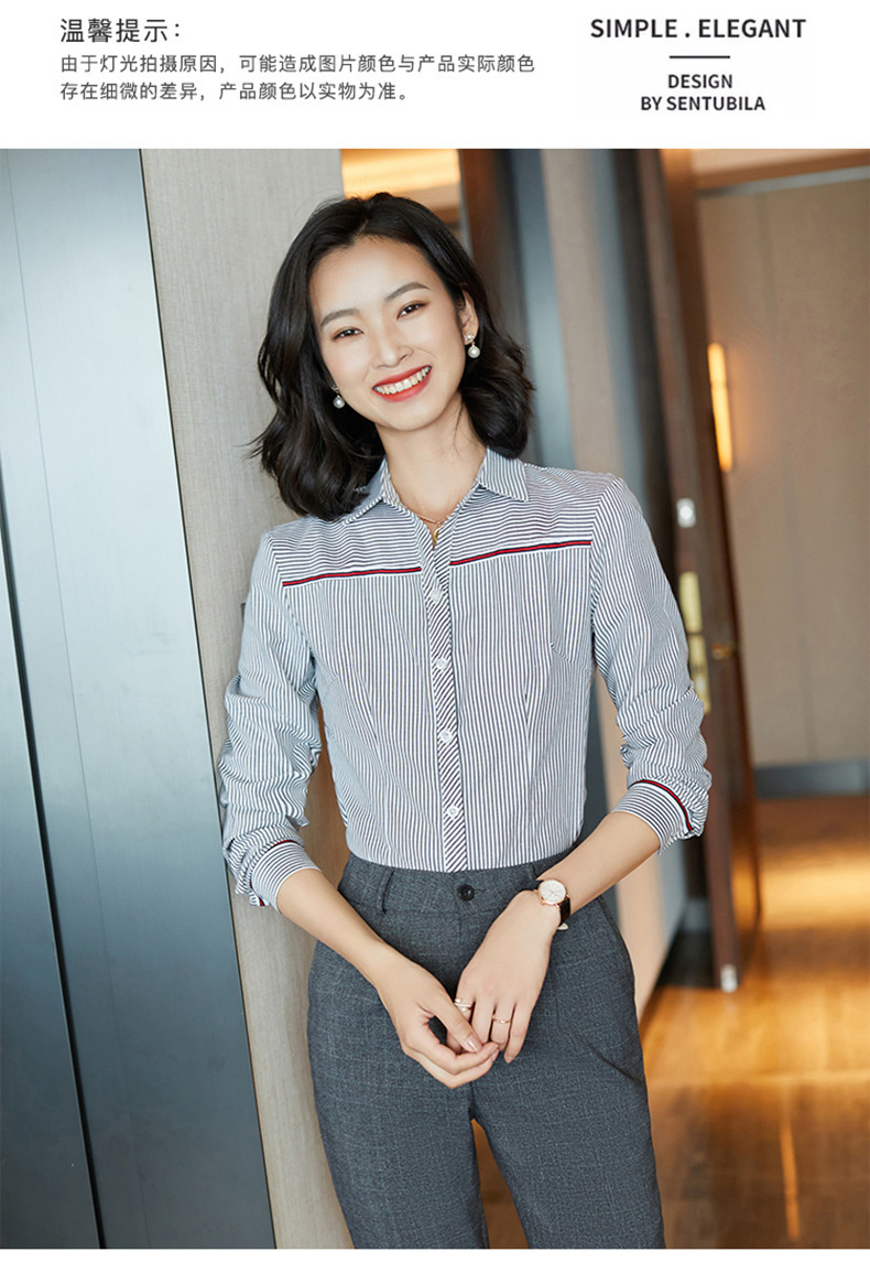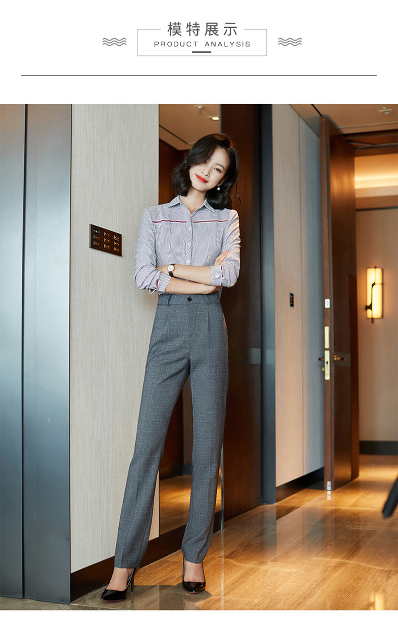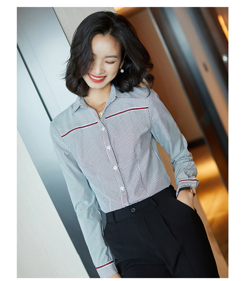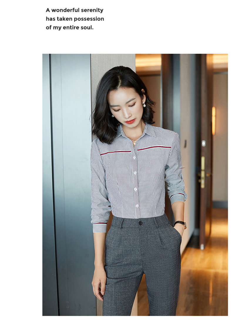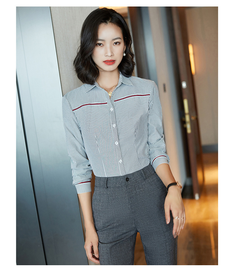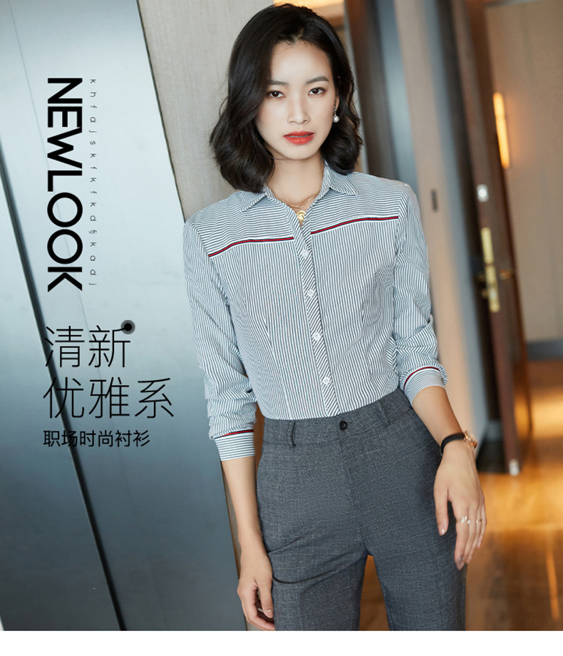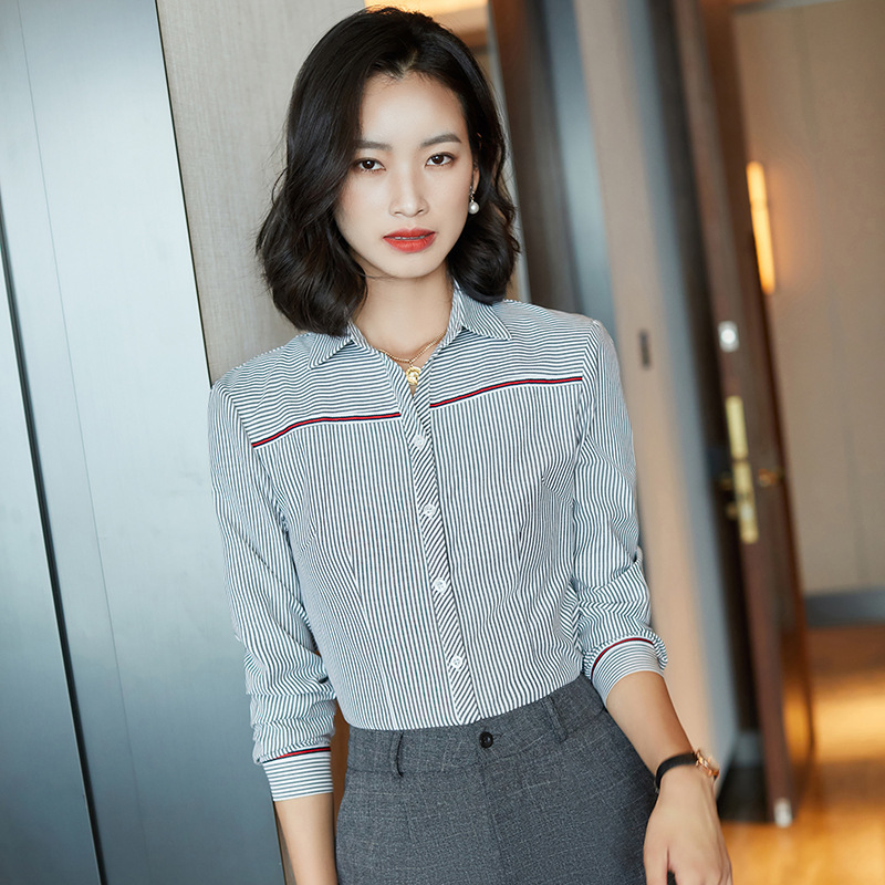 세븐 밸리 니앙 여성 셔츠 전문 얇은 수직 줄무늬 짧은 소매 셔츠 여성 프론트 데스크 호텔 은행 원피스 셔츠 웨이터