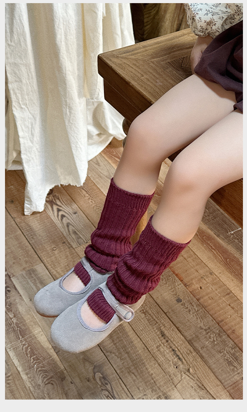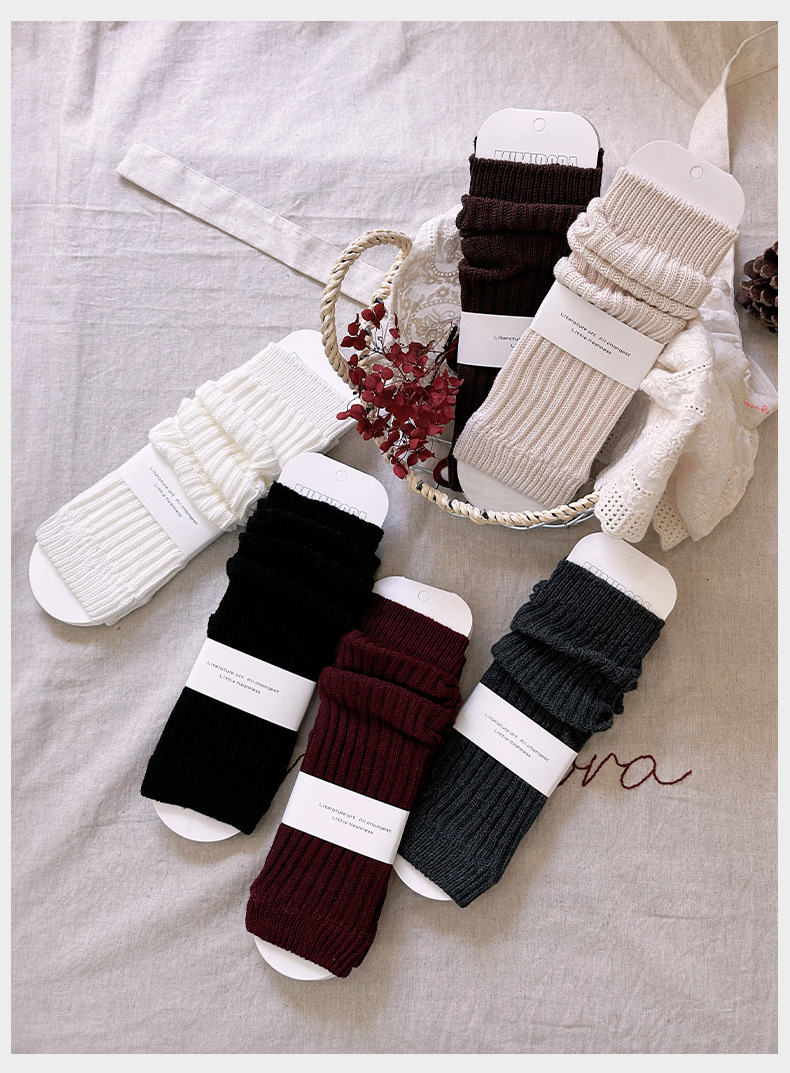 어린이 양말 봄과 가을 소녀 송아지 소매 소녀 레트로 스타일 단색 더미 양말스토어 가기