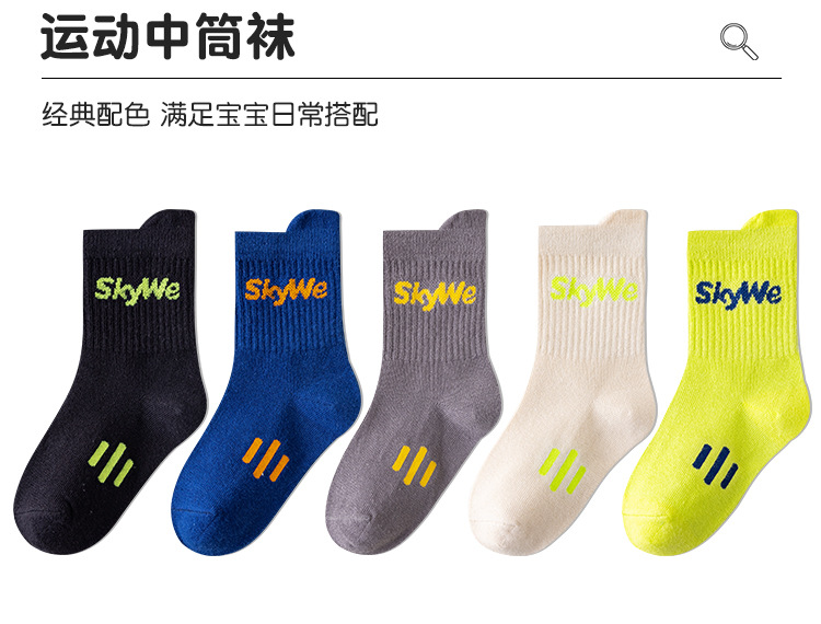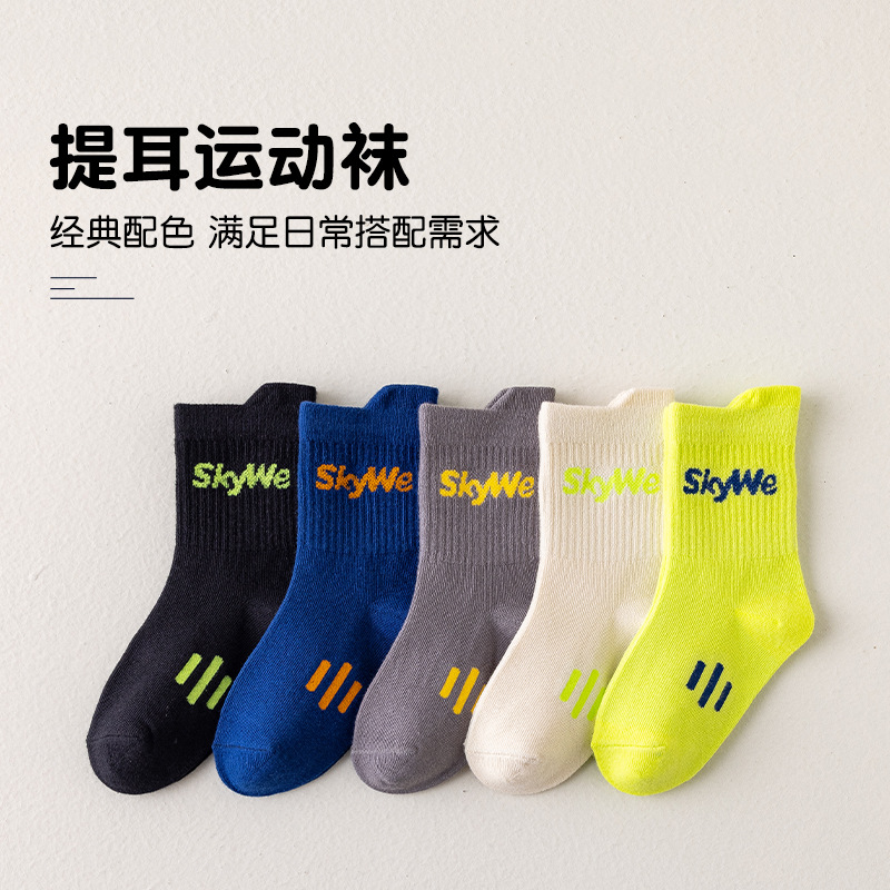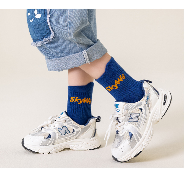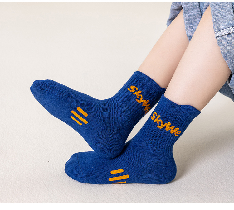 가을과 겨울 새로운 어린이 양말 캐주얼 스포츠 틸트 레터 스타킹 통기성 탈취제 면 양말 흡수 방지 땀