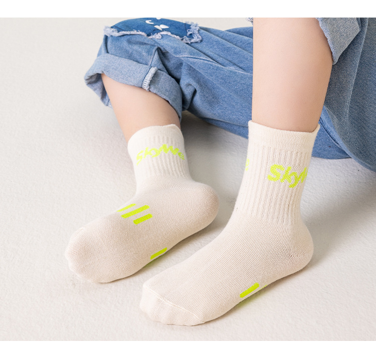 가을과 겨울 새로운 어린이 양말 캐주얼 스포츠 틸트 레터 스타킹 통기성 탈취제 면 양말 흡수 방지 땀스토어 가기