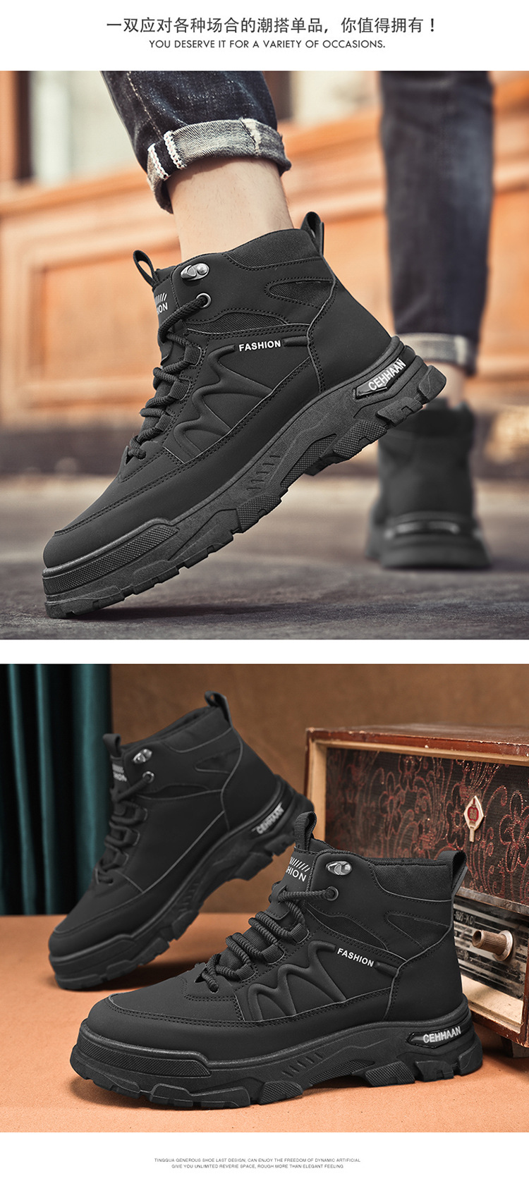 신발 남성 하이 탑 야외 캐주얼 작업복 부츠 2024 새로운 겨울 올 매치 사막 노동 보호 마틴 등산 남성 신발