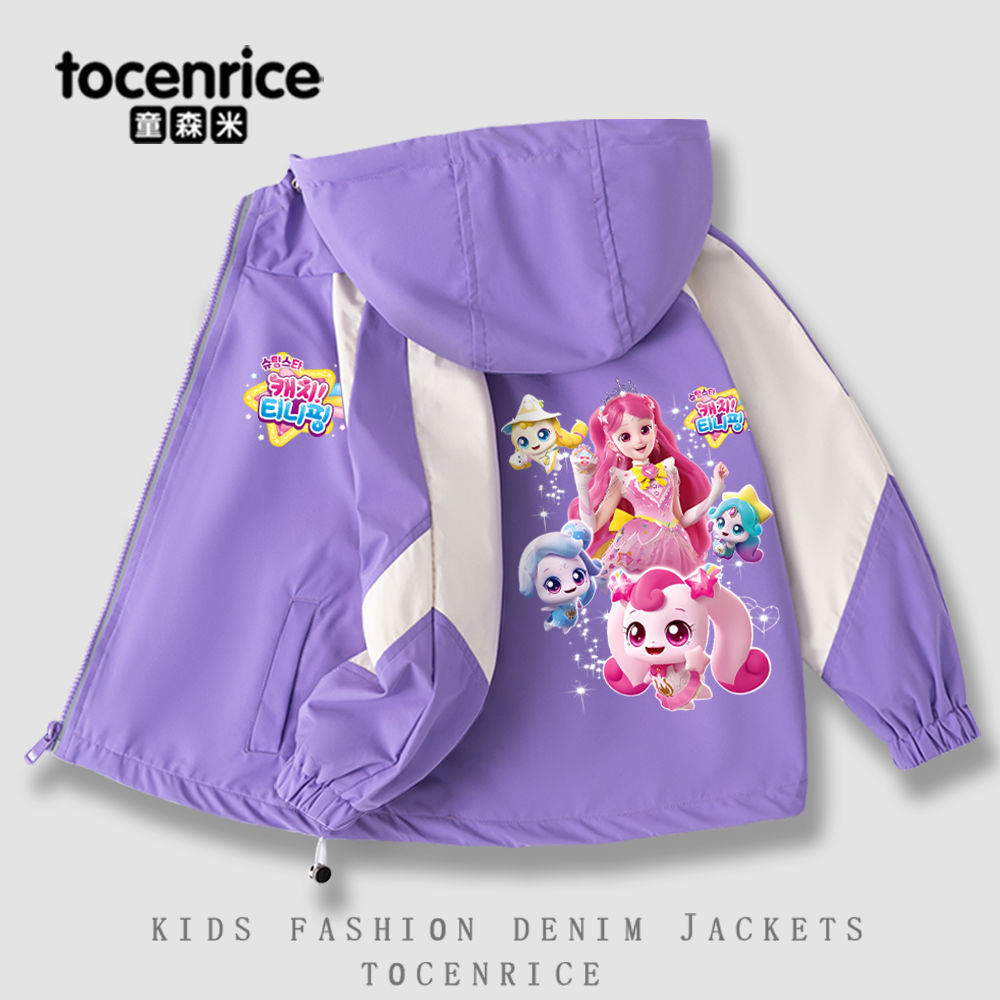 귀여운 귀여운 소녀의 가을 코트 2024 새로운 스타일 어린이 봄과 가을 폭행 옷 아기 소녀 후드 탑스토어 가기