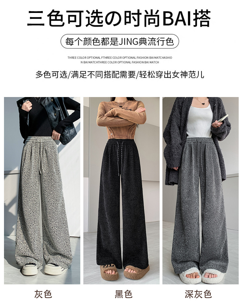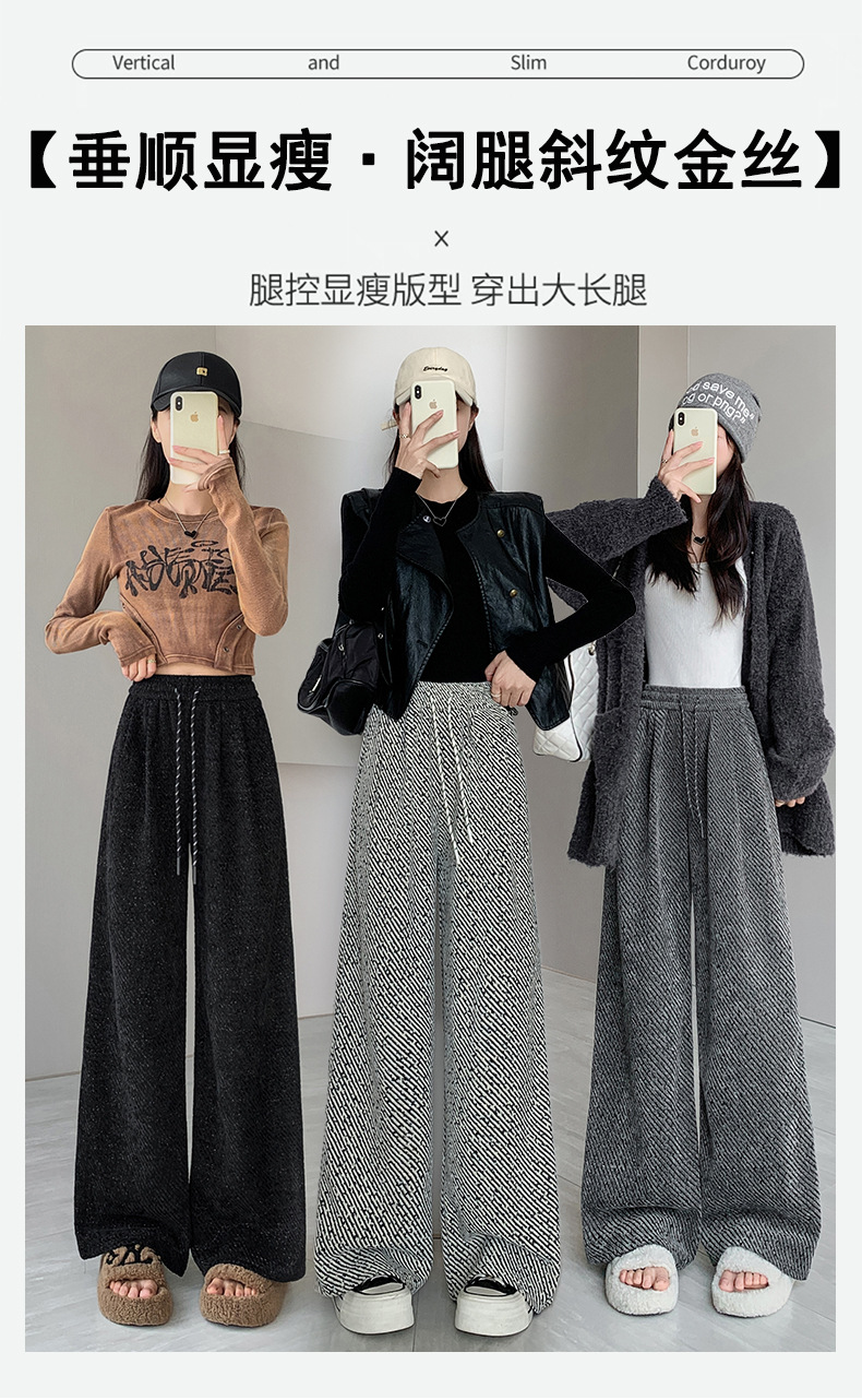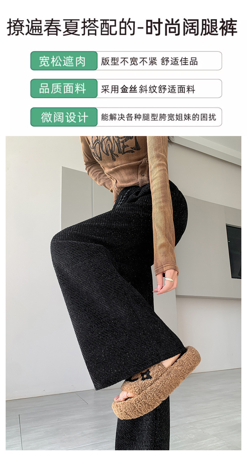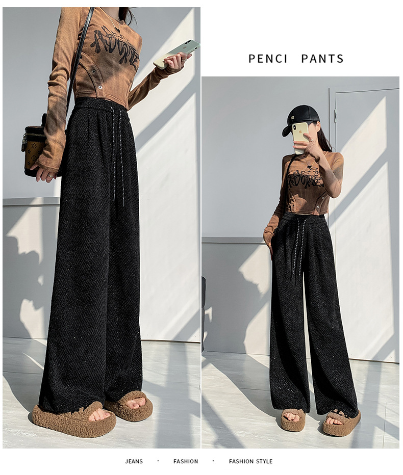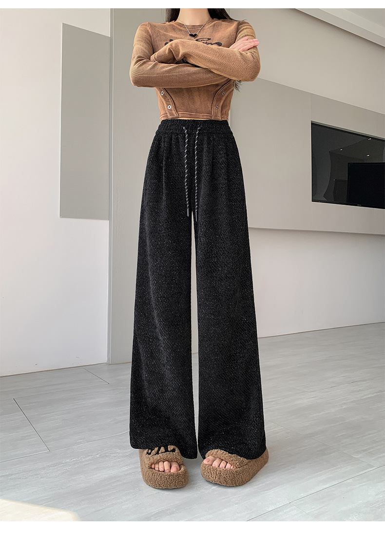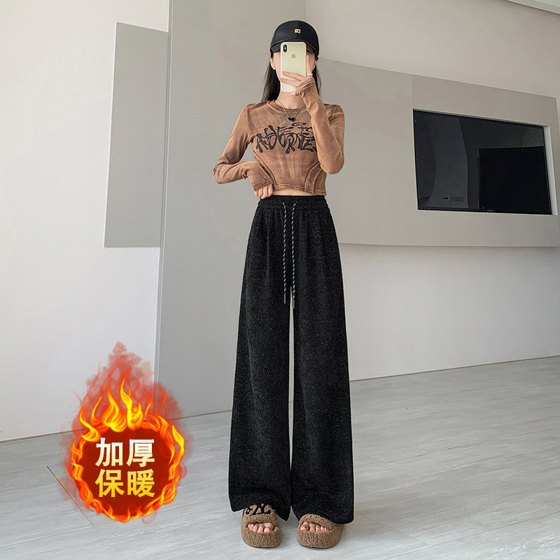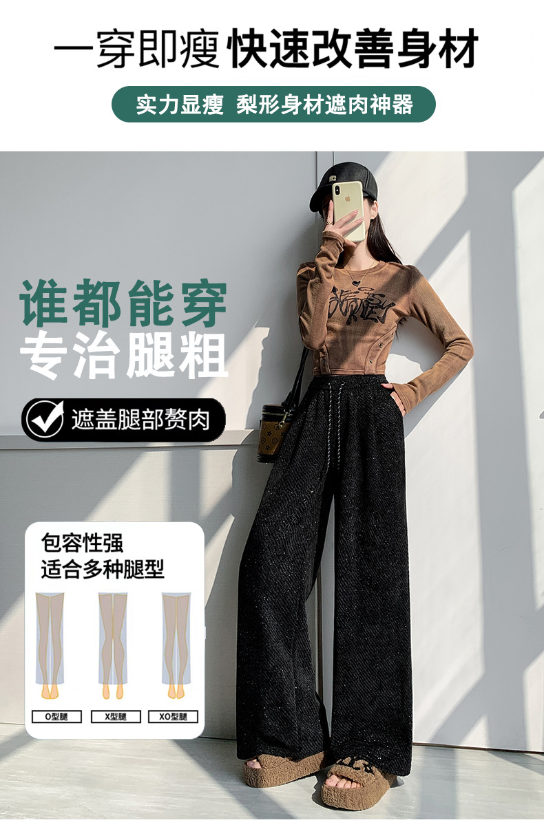 24 가을과 겨울 새로운 하이 엔드 브라이트 실크 체닐 와이드 레그 바지 높은 허리 캐주얼 바지 유럽면 및 벨벳 간단한 올 매치 바지스토어 가기
