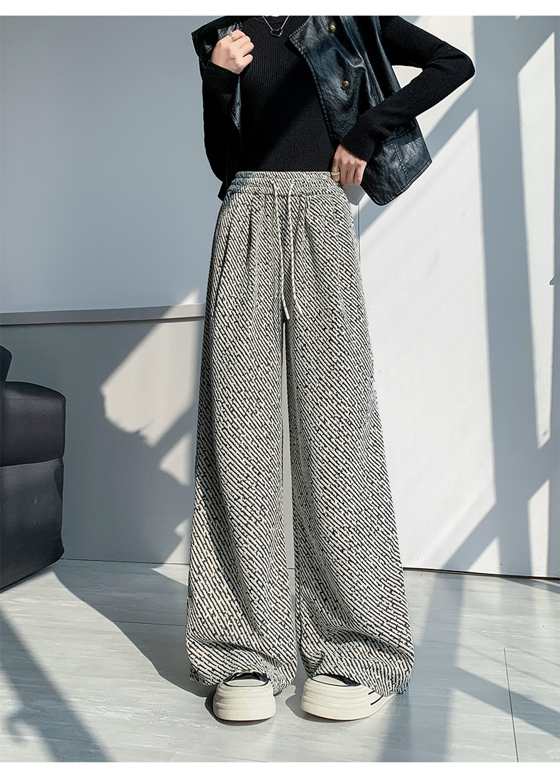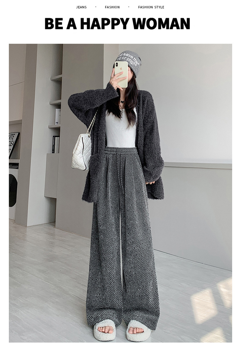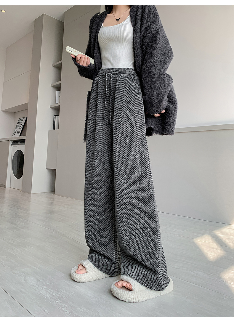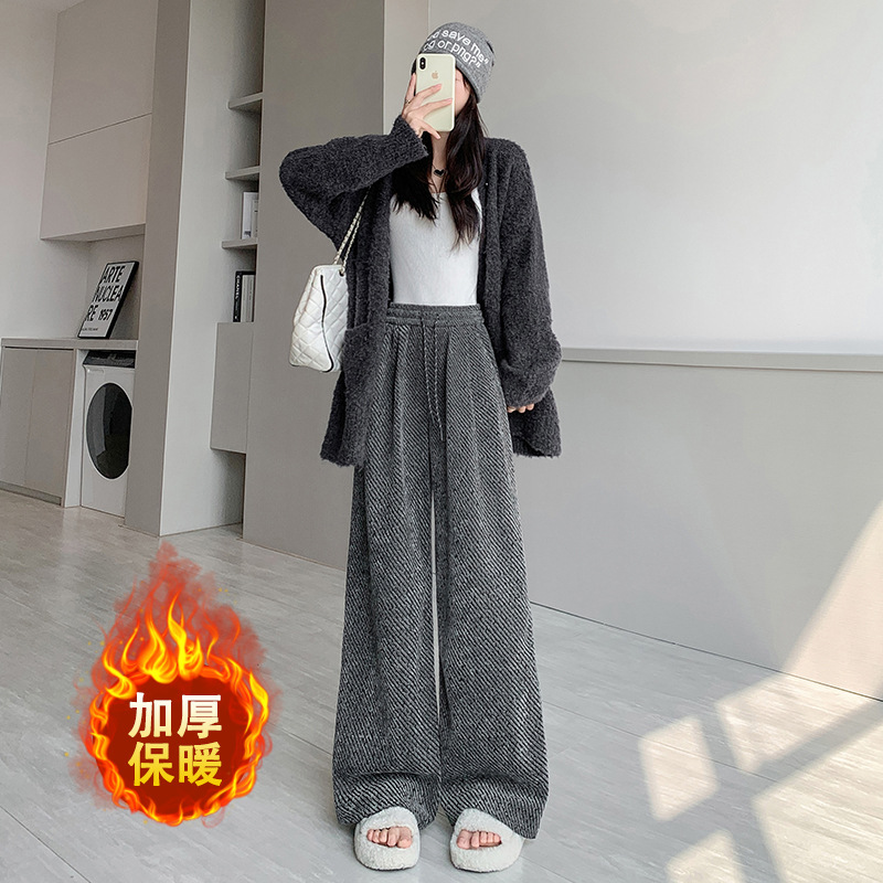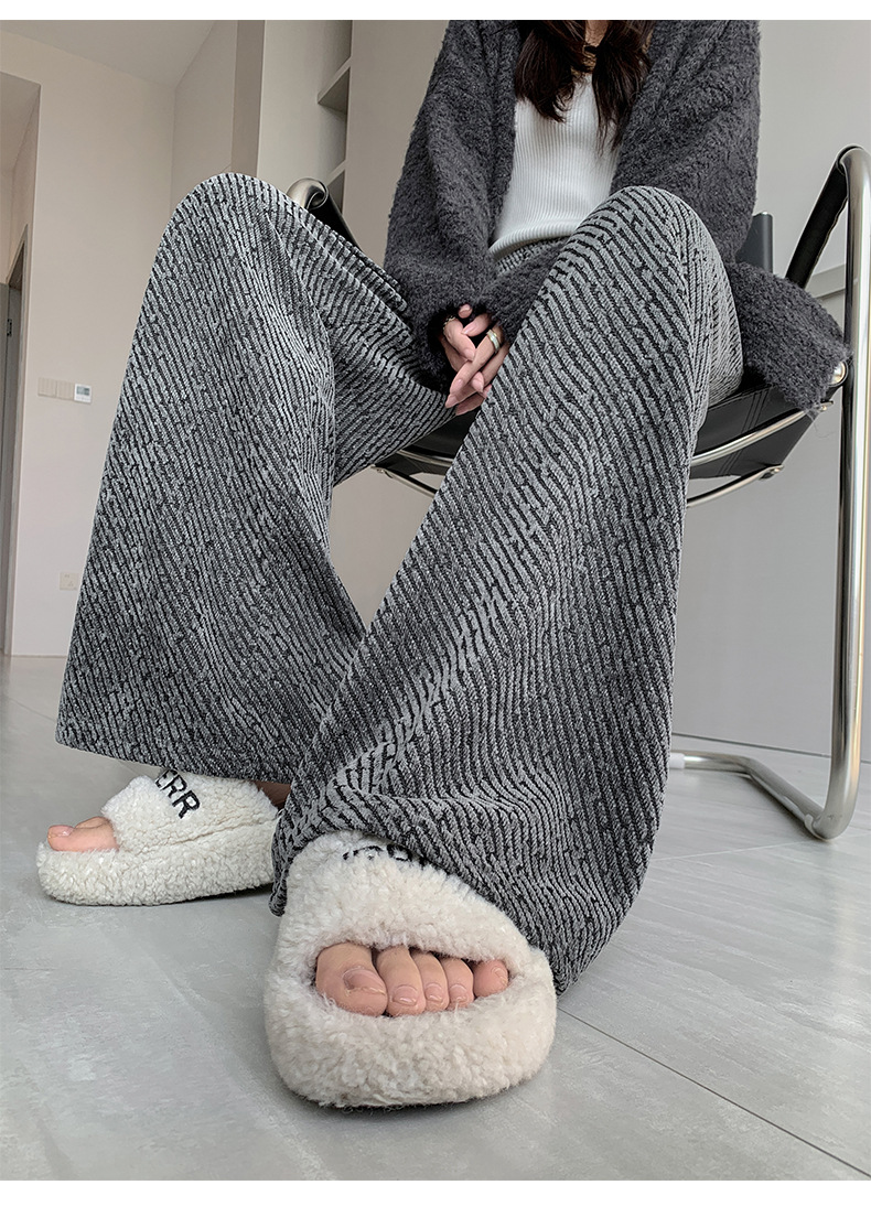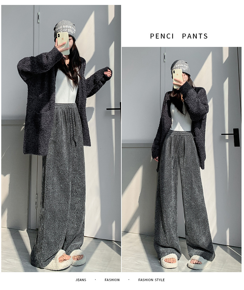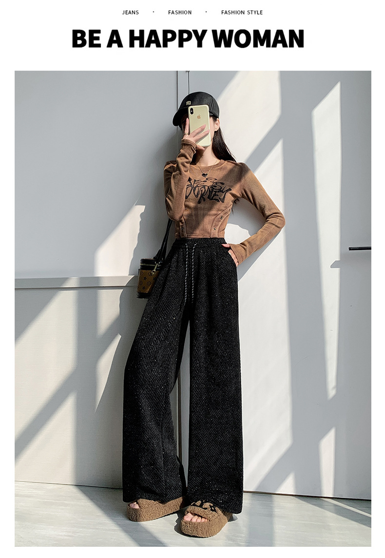 24 가을과 겨울 새로운 하이 엔드 브라이트 실크 체닐 와이드 레그 바지 높은 허리 캐주얼 바지 유럽면 및 벨벳 간단한 올 매치 바지스토어 가기