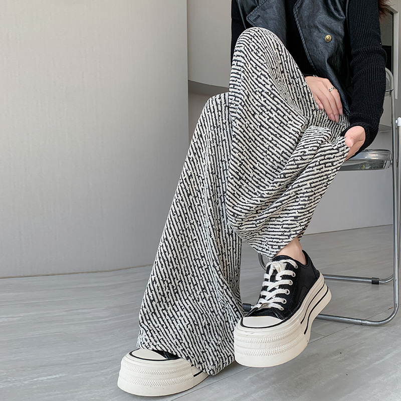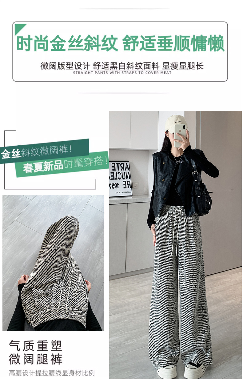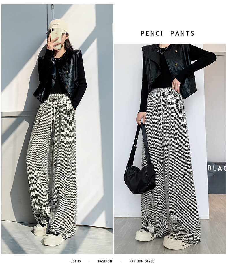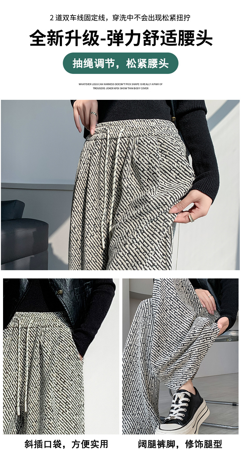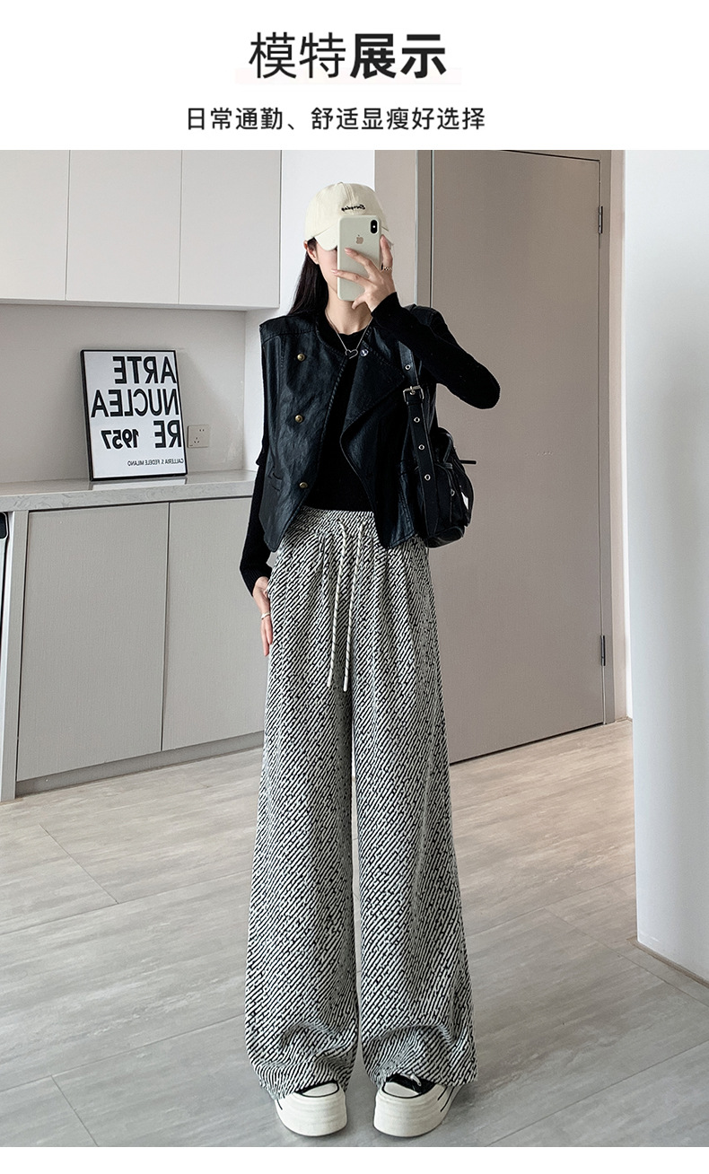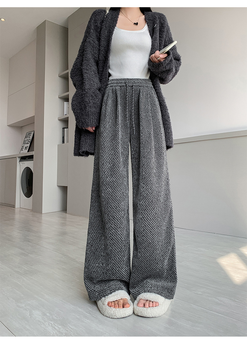 24 가을과 겨울 새로운 하이 엔드 브라이트 실크 체닐 와이드 레그 바지 높은 허리 캐주얼 바지 유럽면 및 벨벳 간단한 올 매치 바지스토어 가기