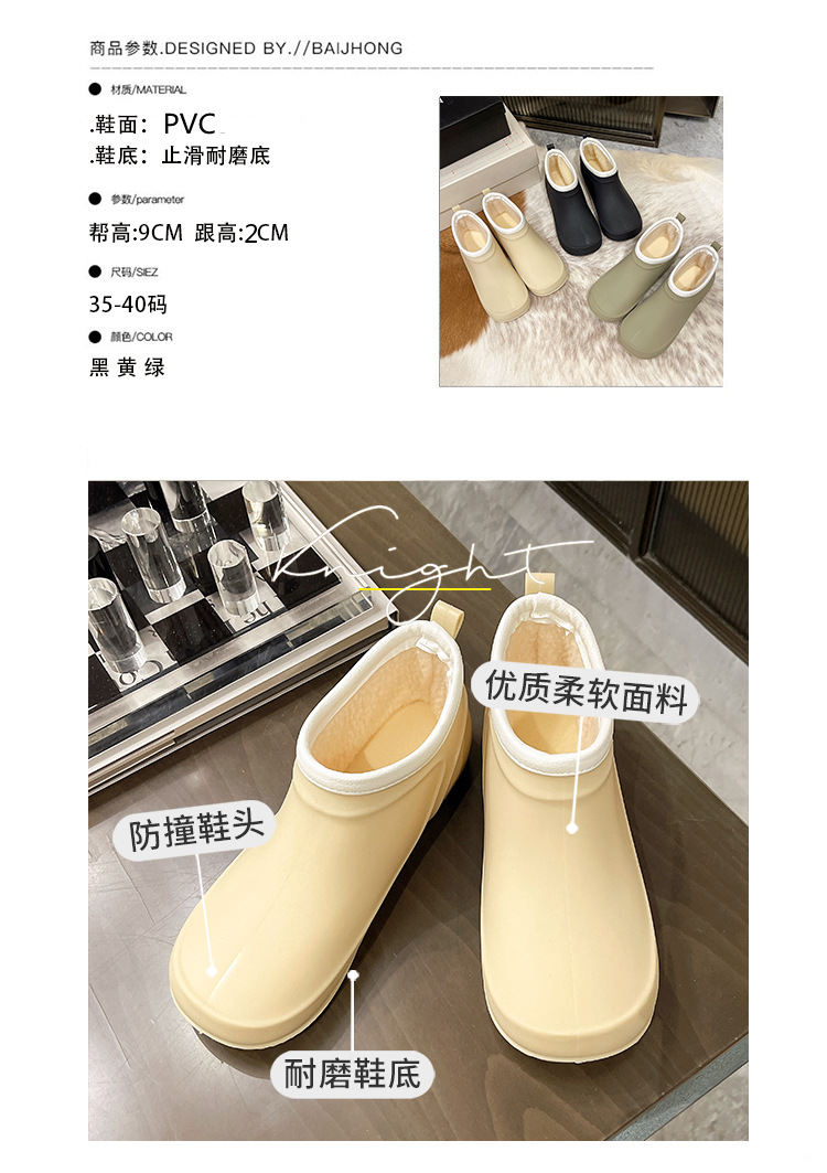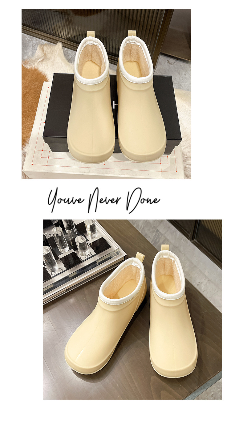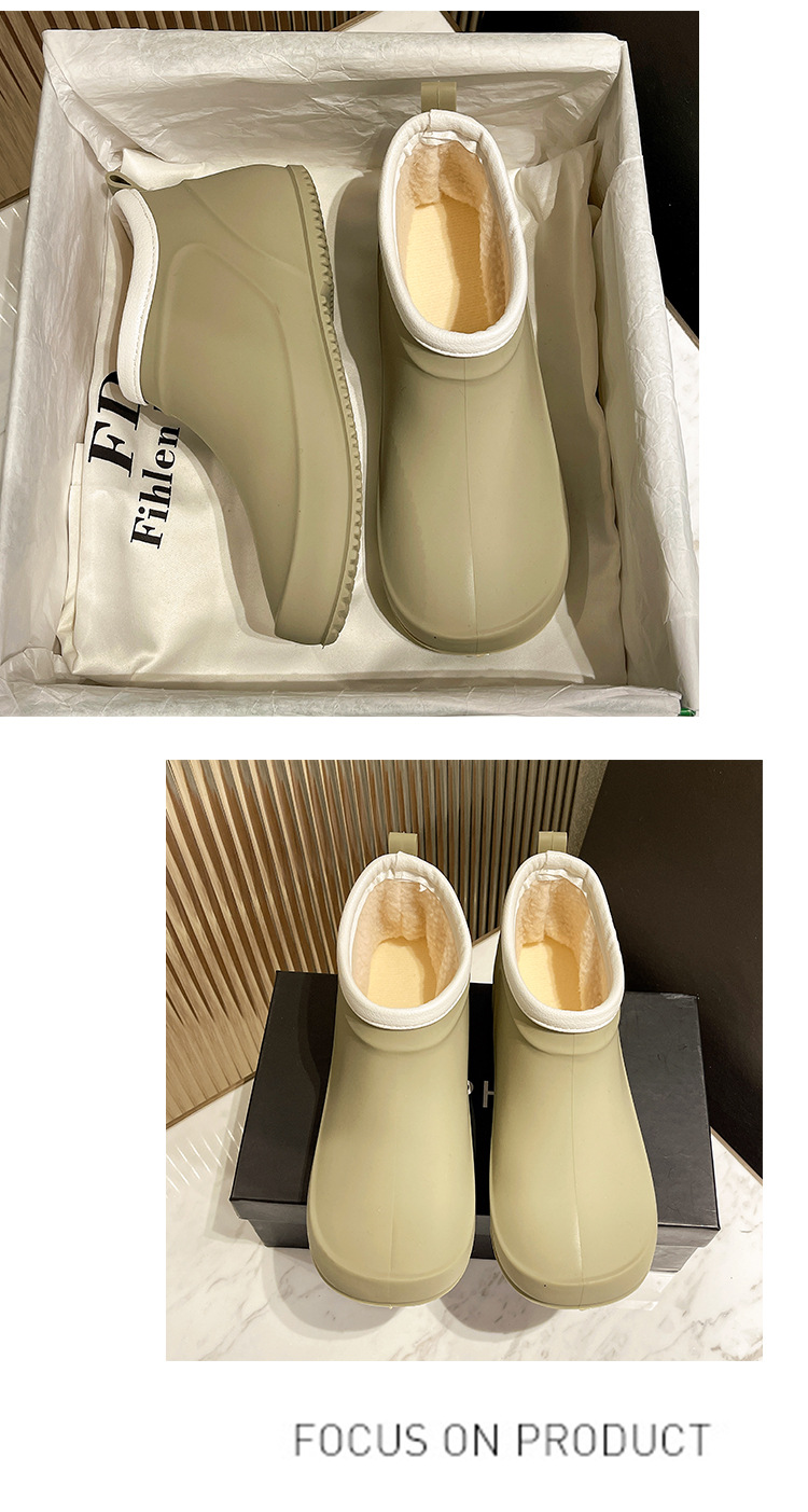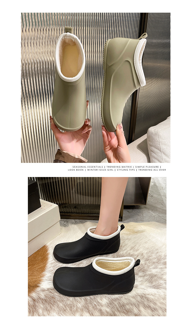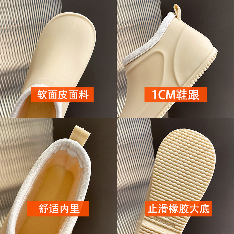 새로운 방수 부츠 여성의 2024 짧은 배럴 겨울 여성 비 신발 얕은 입 면화 여성 기모 따뜻한 미끄럼 방지 짧은 부츠 여성