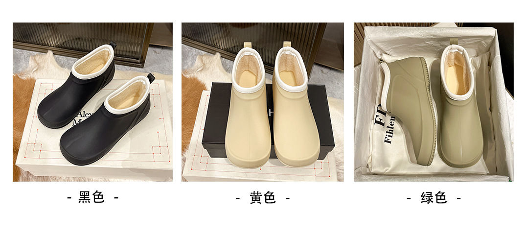 새로운 방수 부츠 여성의 2024 짧은 배럴 겨울 여성 비 신발 얕은 입 면화 여성 기모 따뜻한 미끄럼 방지 짧은 부츠 여성스토어 가기