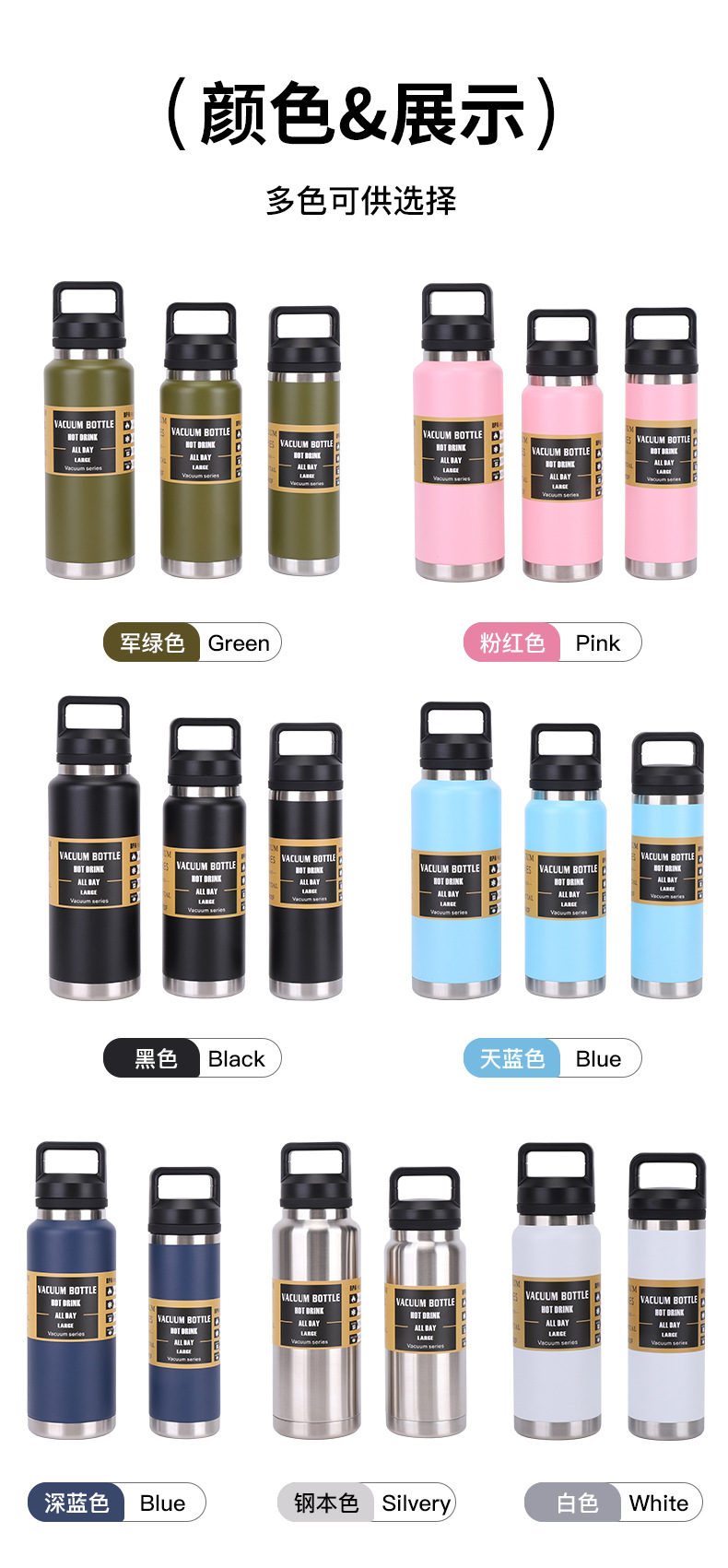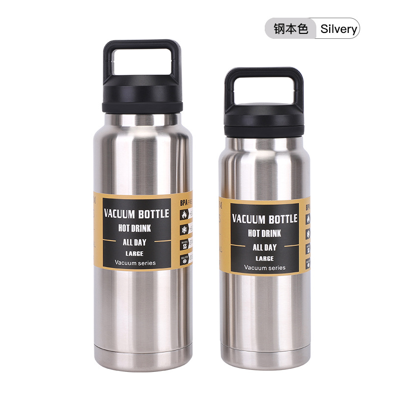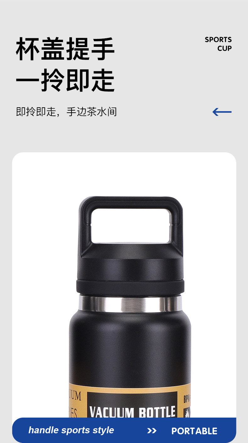 국경 스테인레스 스틸 더블 레이어 진공 보온병 컵 대용량 휴대용 등산 냄비 야외 휴대용 더블 뚜껑 스포츠 주전자