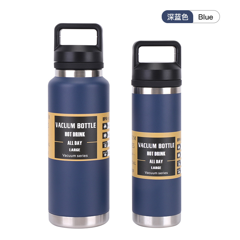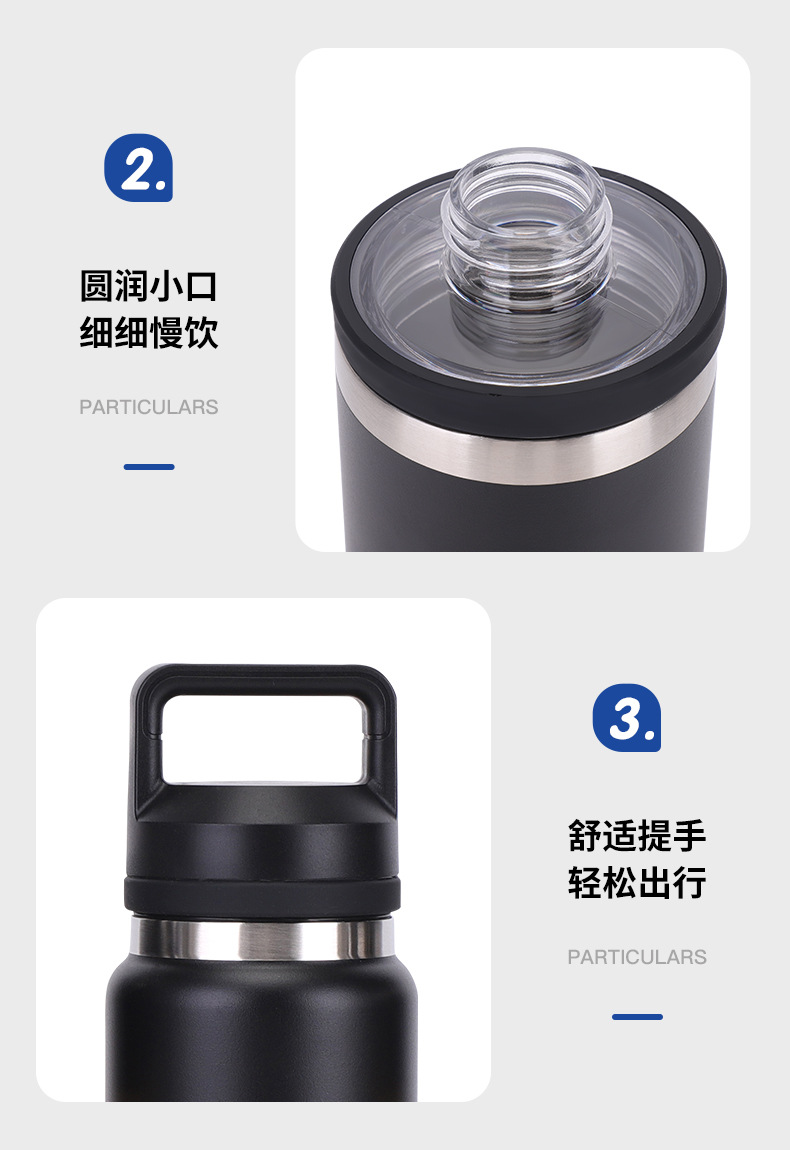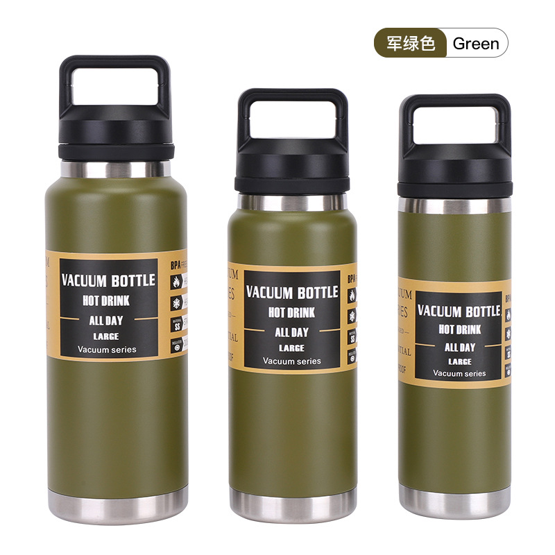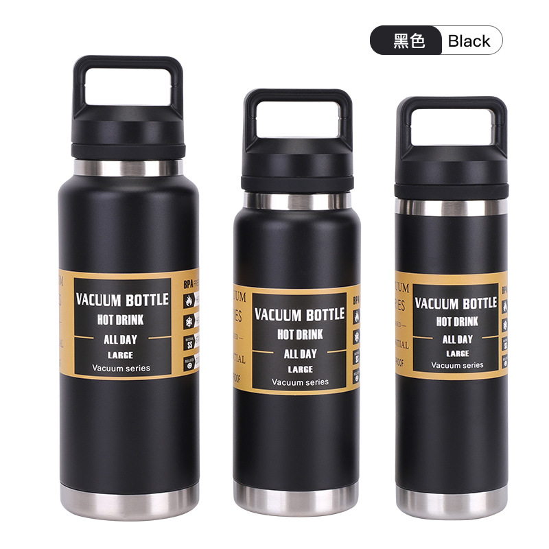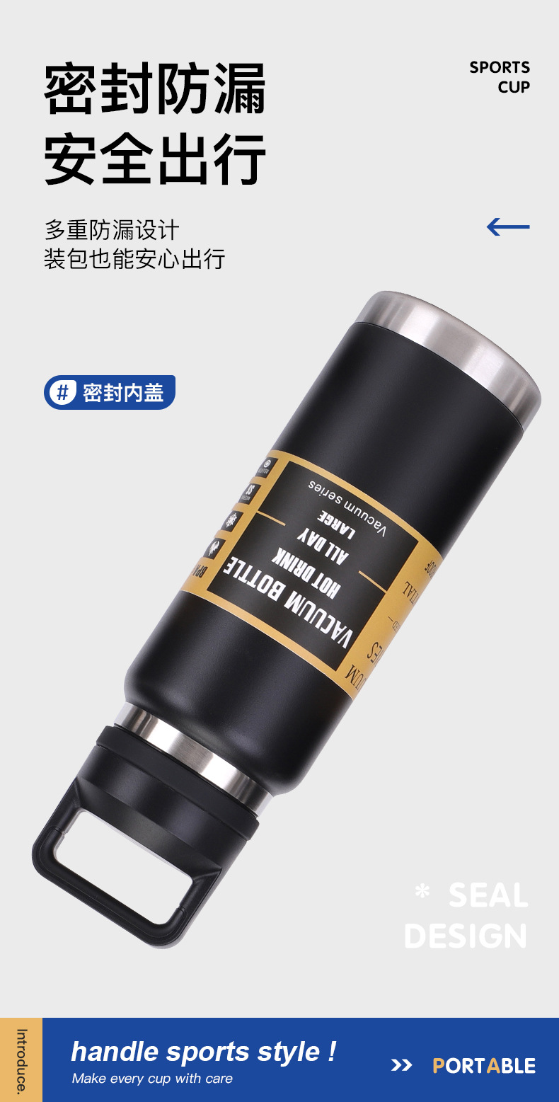 국경 스테인레스 스틸 더블 레이어 진공 보온병 컵 대용량 휴대용 등산 냄비 야외 휴대용 더블 뚜껑 스포츠 주전자