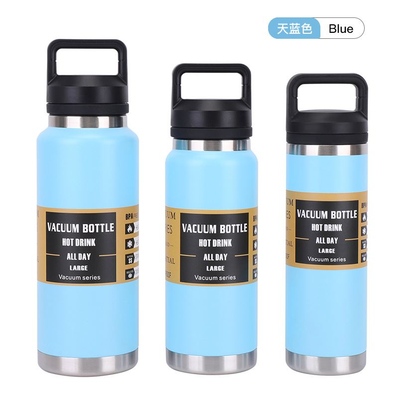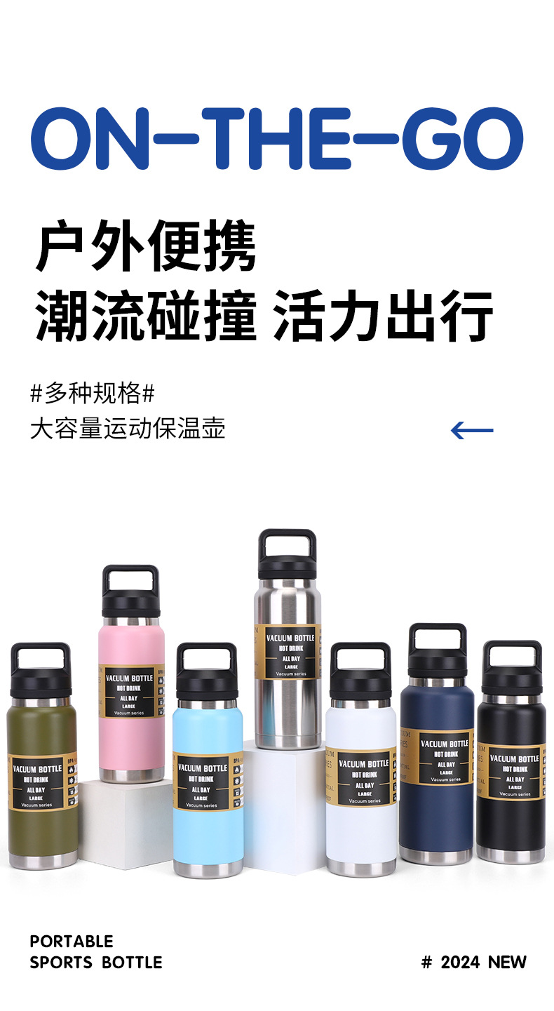 국경 스테인레스 스틸 더블 레이어 진공 보온병 컵 대용량 휴대용 등산 냄비 야외 휴대용 더블 뚜껑 스포츠 주전자스토어 가기
