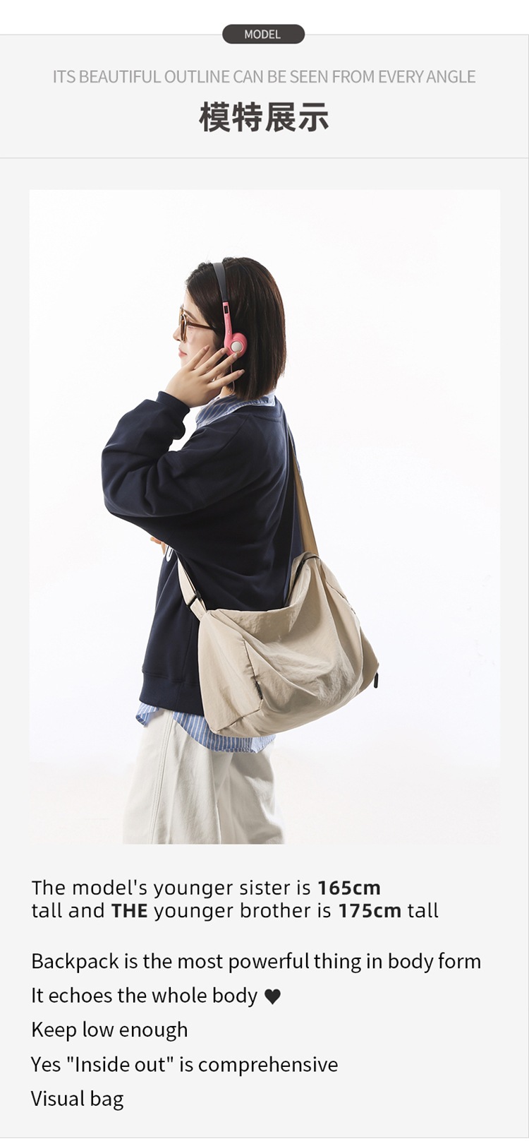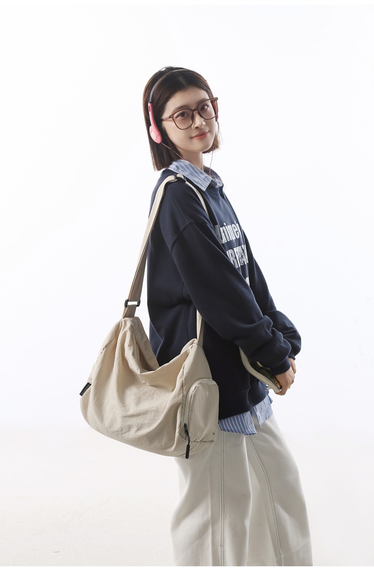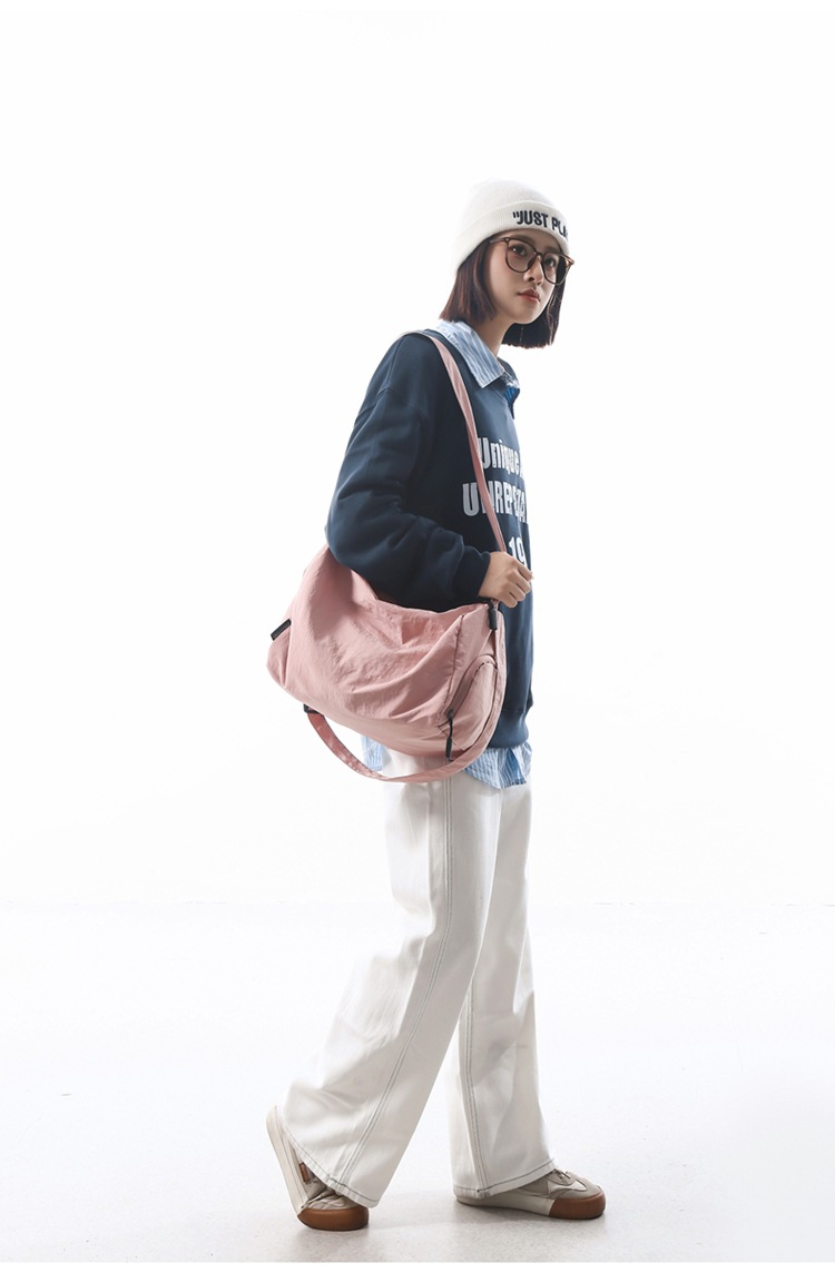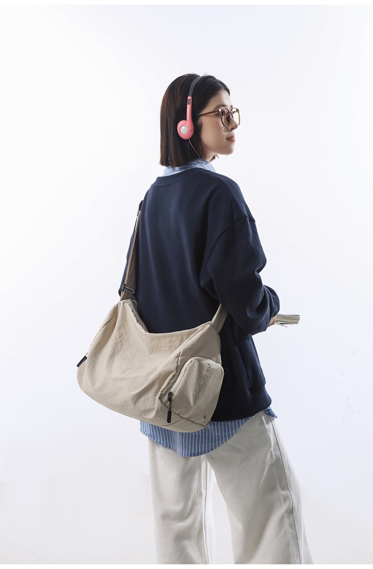 2024 새로운 나일론 크로스 바디 백 여성 매일 올 매치 솔리드 컬러 게으른 스타일 학생 천 가방 올 매치 대용량 싱글 숄더 백스토어 가기