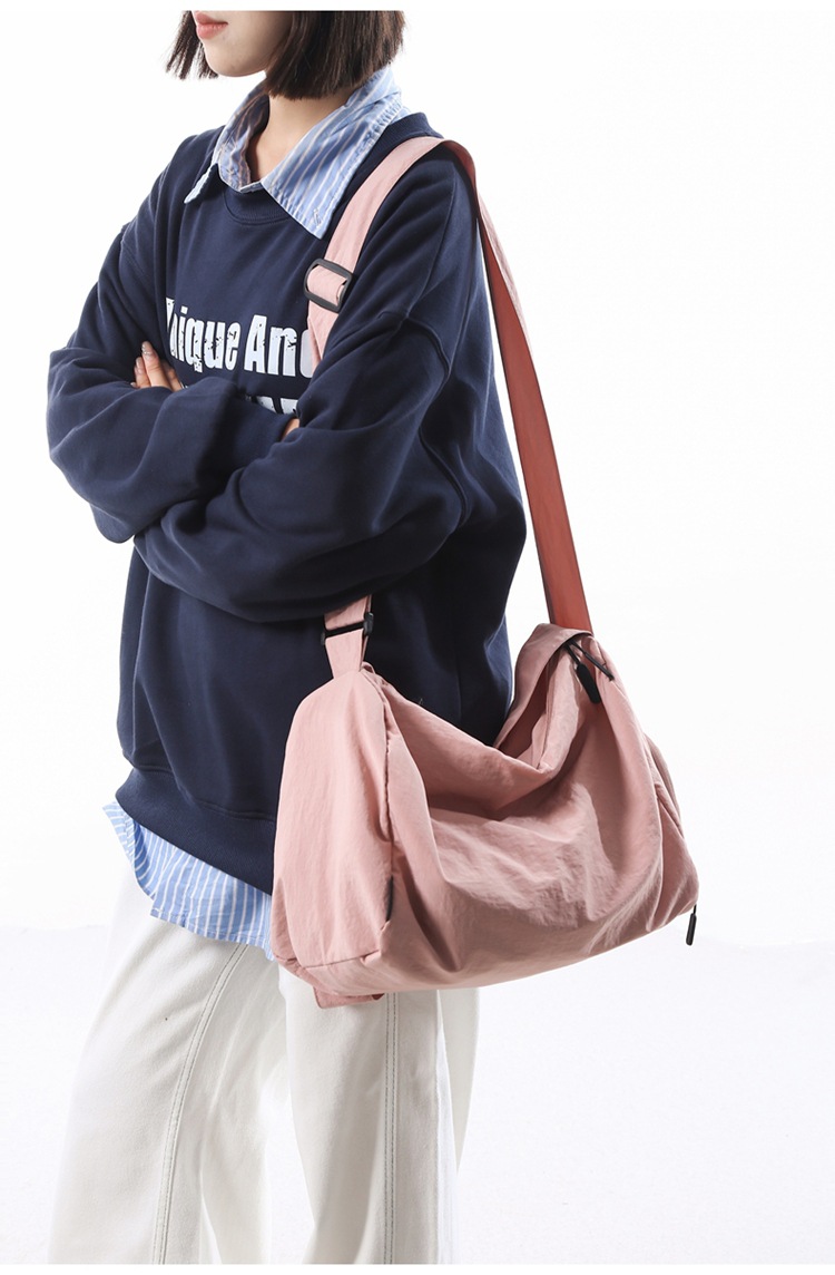 2024 새로운 나일론 크로스 바디 백 여성 매일 올 매치 솔리드 컬러 게으른 스타일 학생 천 가방 올 매치 대용량 싱글 숄더 백