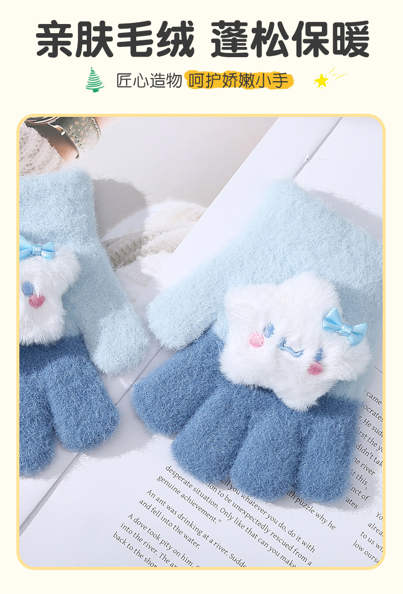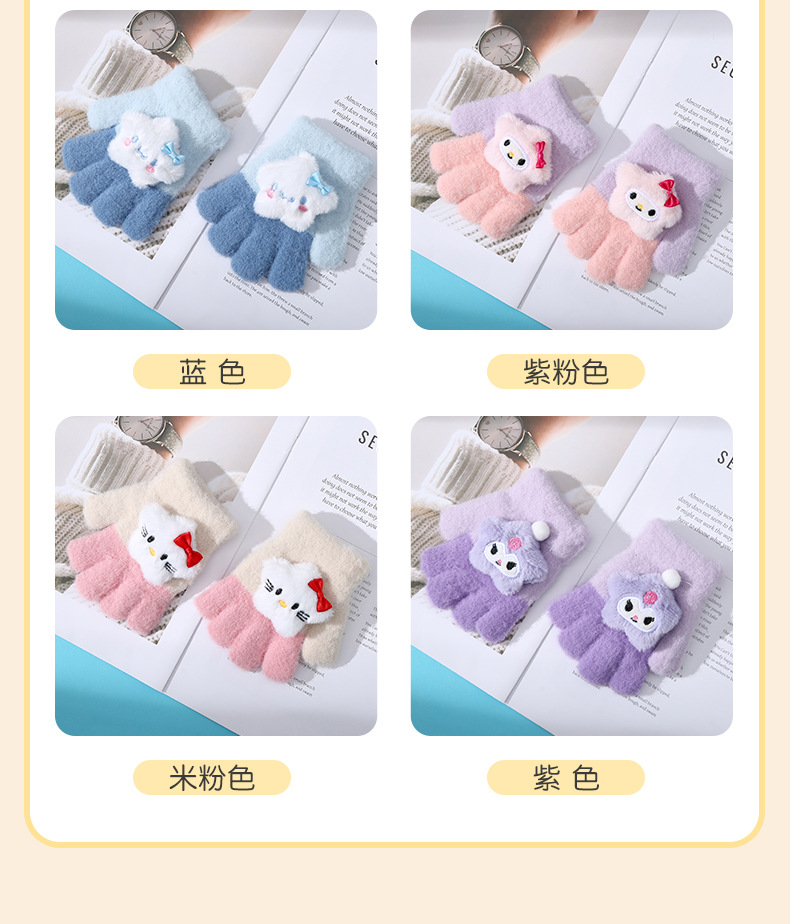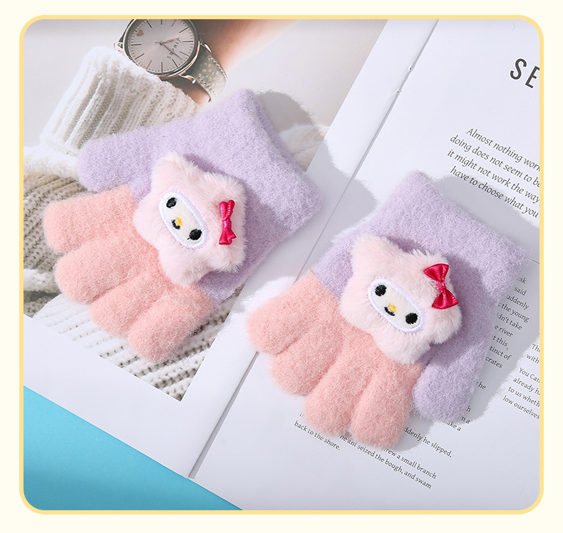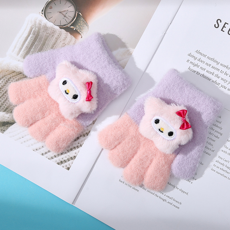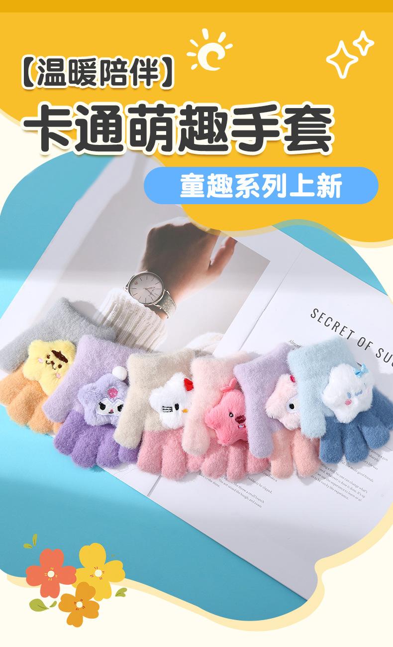 어린이 장갑 가을과 겨울 소녀 쿨로 미 따뜻한 기모 만화 남자 겨울 부동액 아기 손가락 장갑