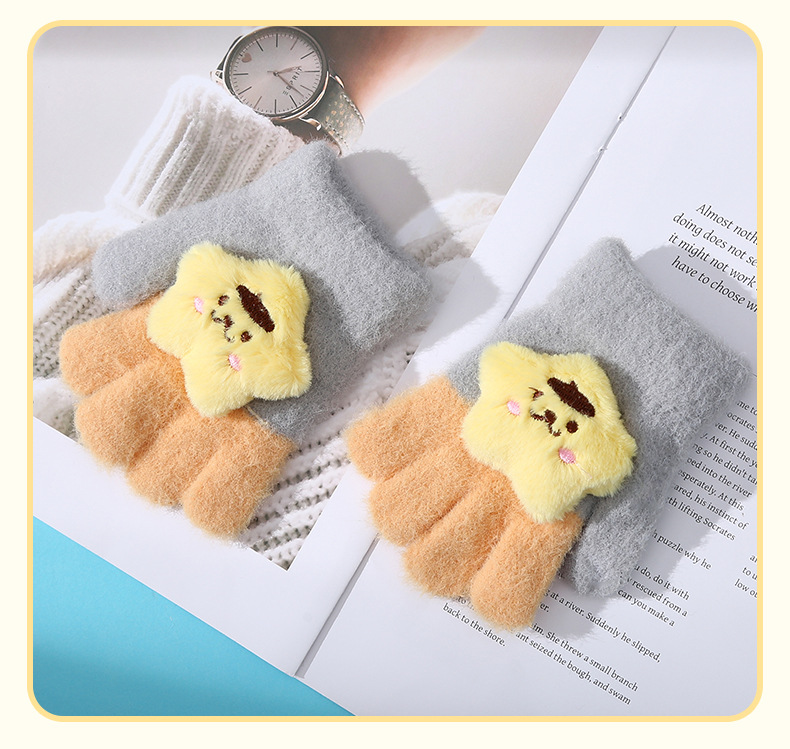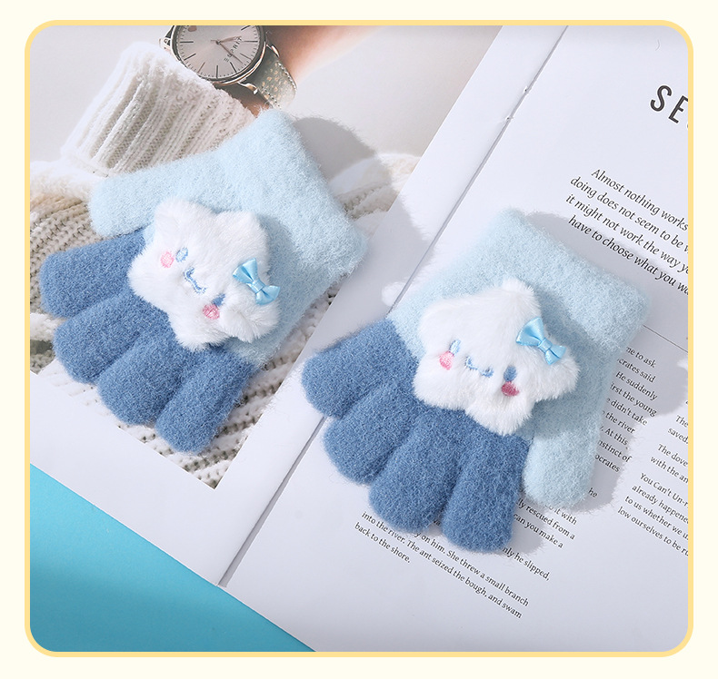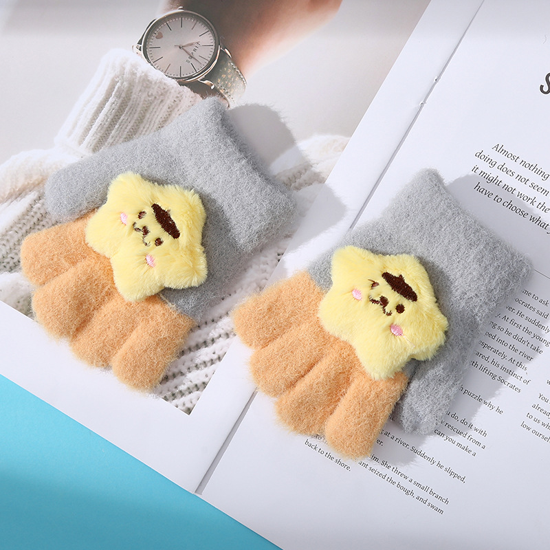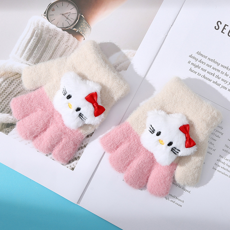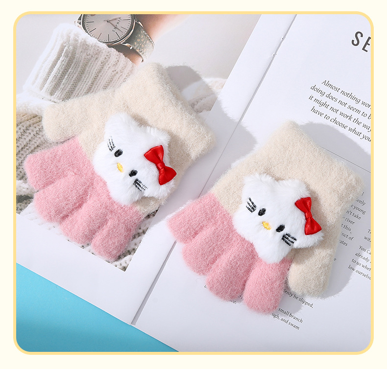 어린이 장갑 가을과 겨울 소녀 쿨로 미 따뜻한 기모 만화 남자 겨울 부동액 아기 손가락 장갑