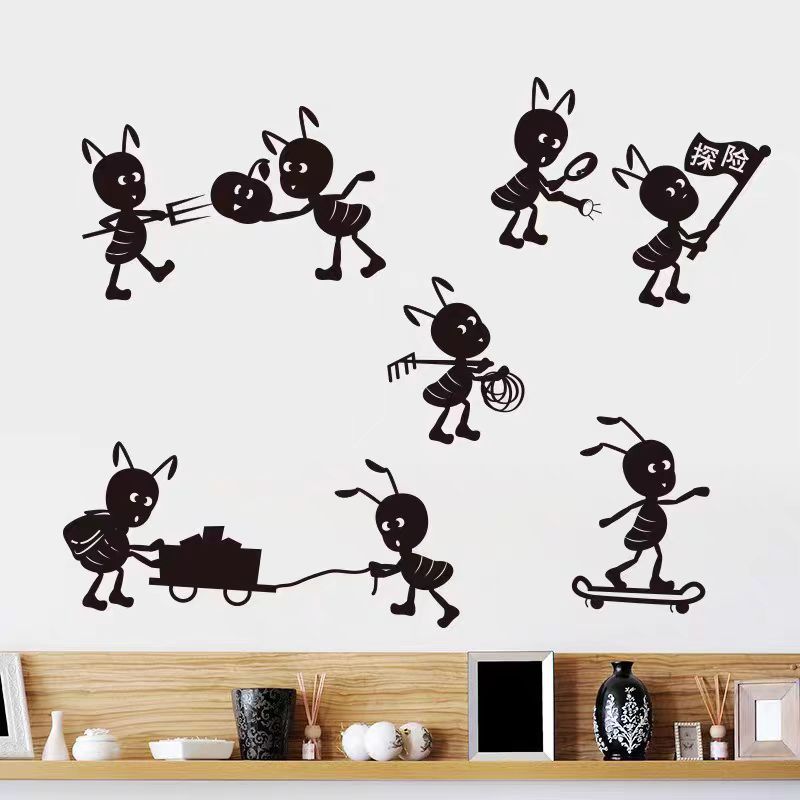 자기 접착 어린이 방 창조적 인 귀여운 작은 개미 벽 스티커 복도 계단 스키 링 라인 유치원 유리 창 스티커