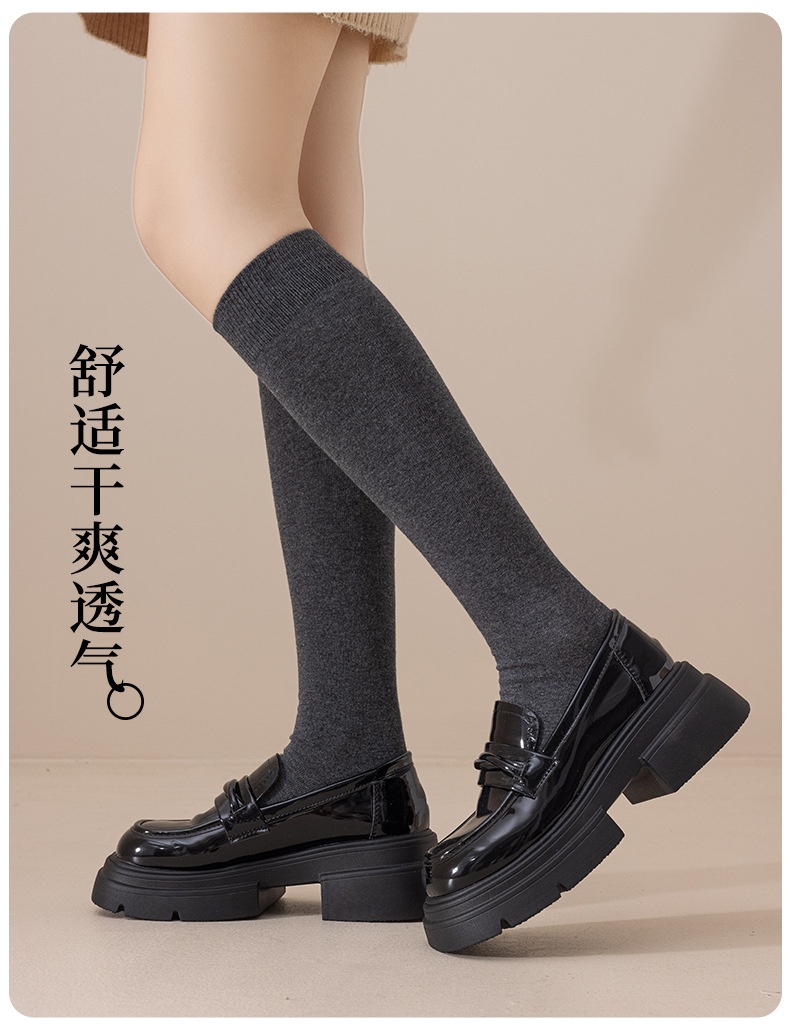가을 겨울 여성용 종아리 양말, 편안한 면 양말, 탈취제 단색 무릎 위 양말, 일본식 jk 슬림 다리 긴 양말스토어 가기