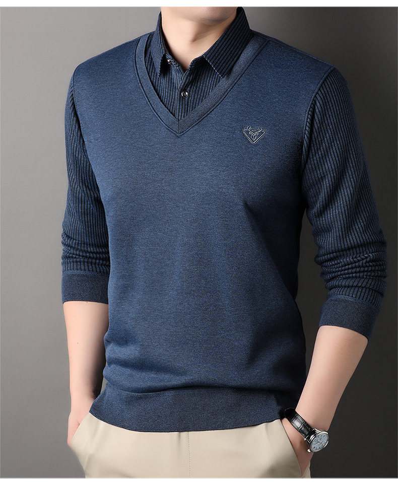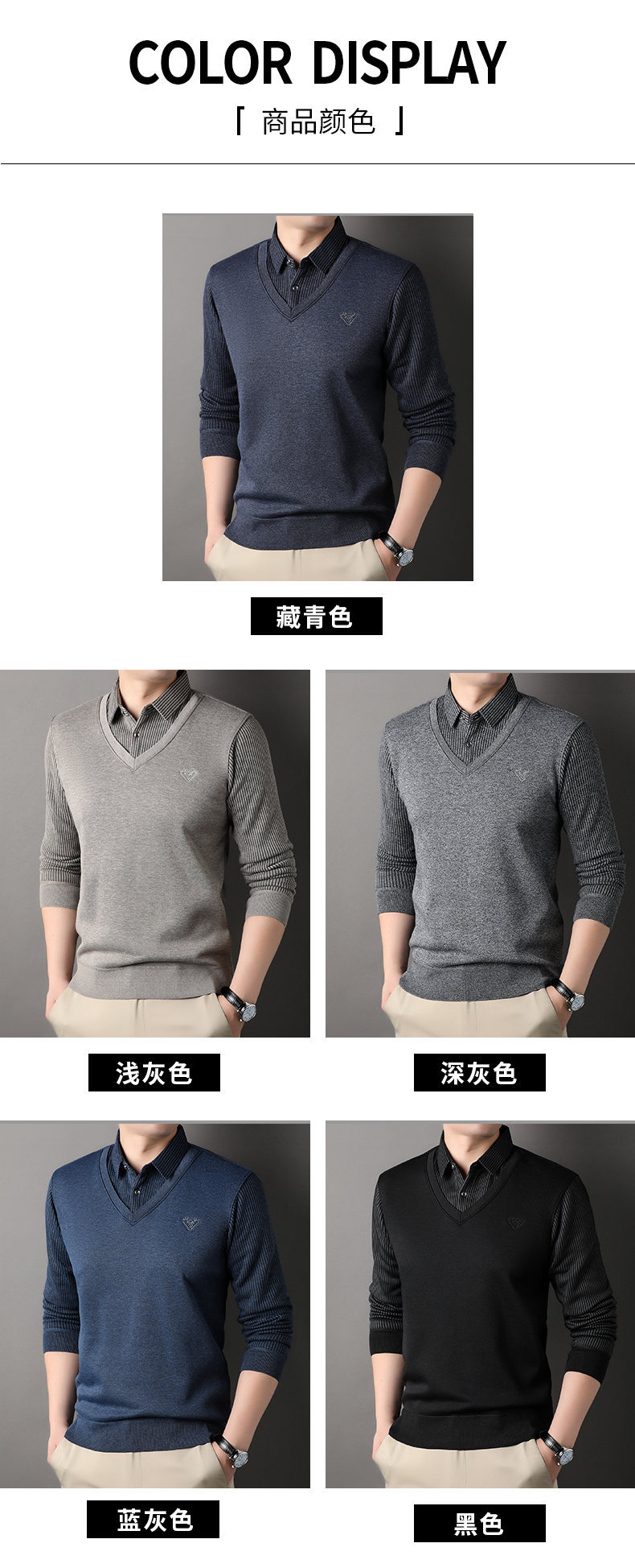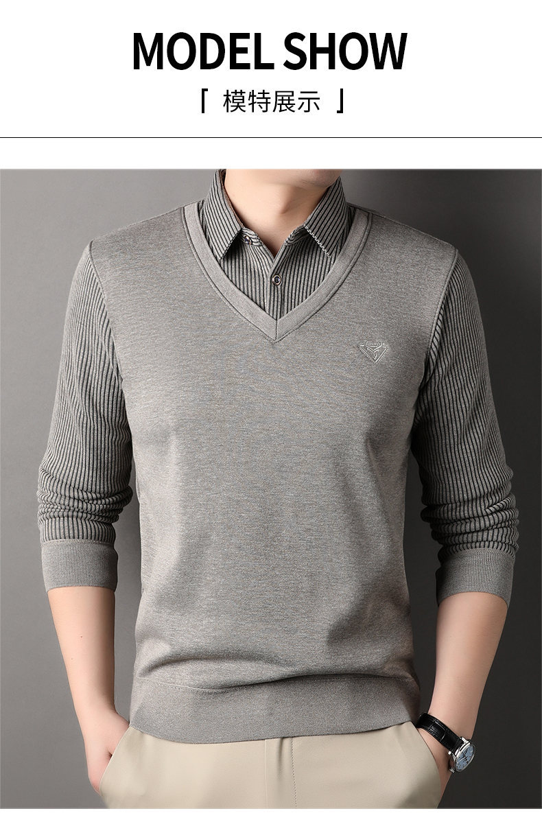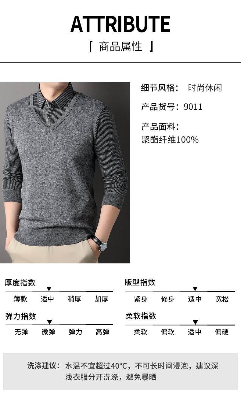 국경 간 대외 무역 가을과 겨울 남자 가짜 투피스 니트 올 매치 셔츠 칼라 재킷 남자 스웨터 티셔츠 내부 기모스토어 가기