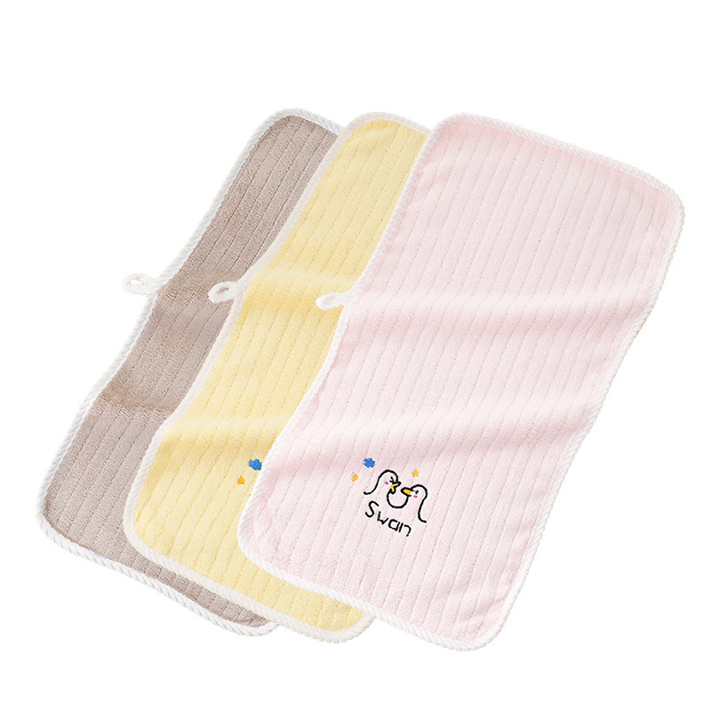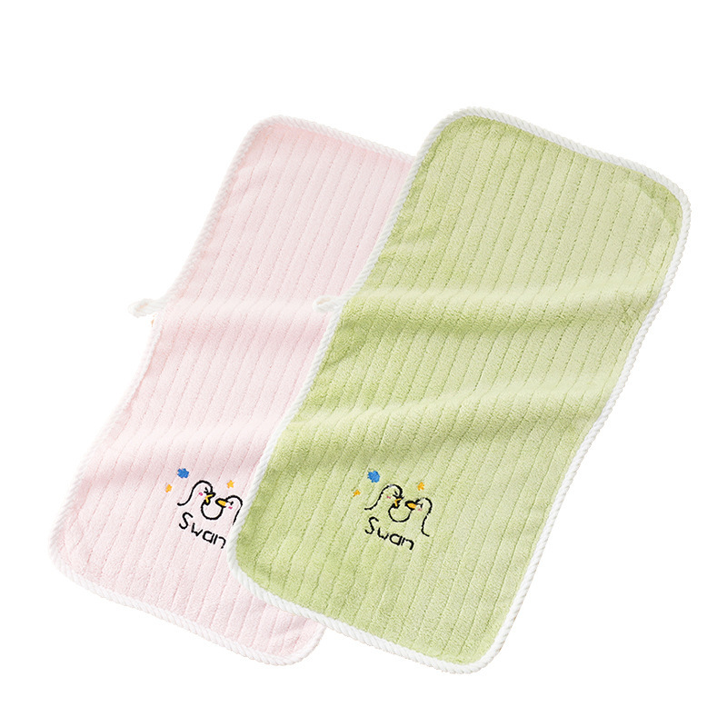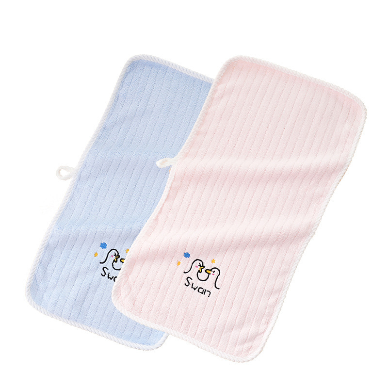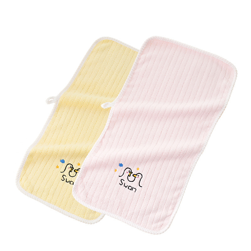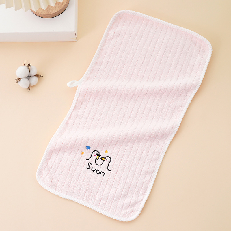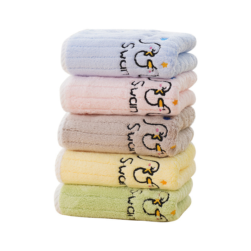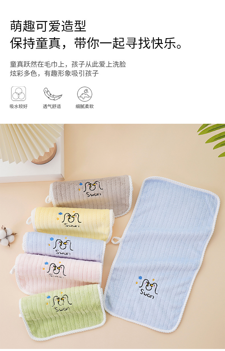 어린이 수건 산호 양털 부드럽고 쉽게 씻을 수있는 얼굴 수건 만화 작은 백조 귀여운 자수 유치원 광장 수건