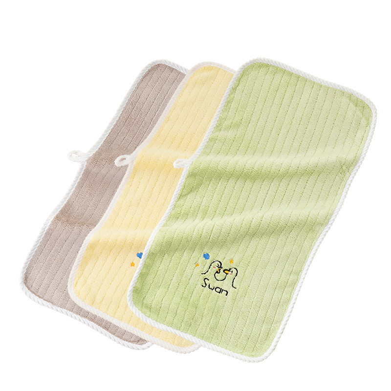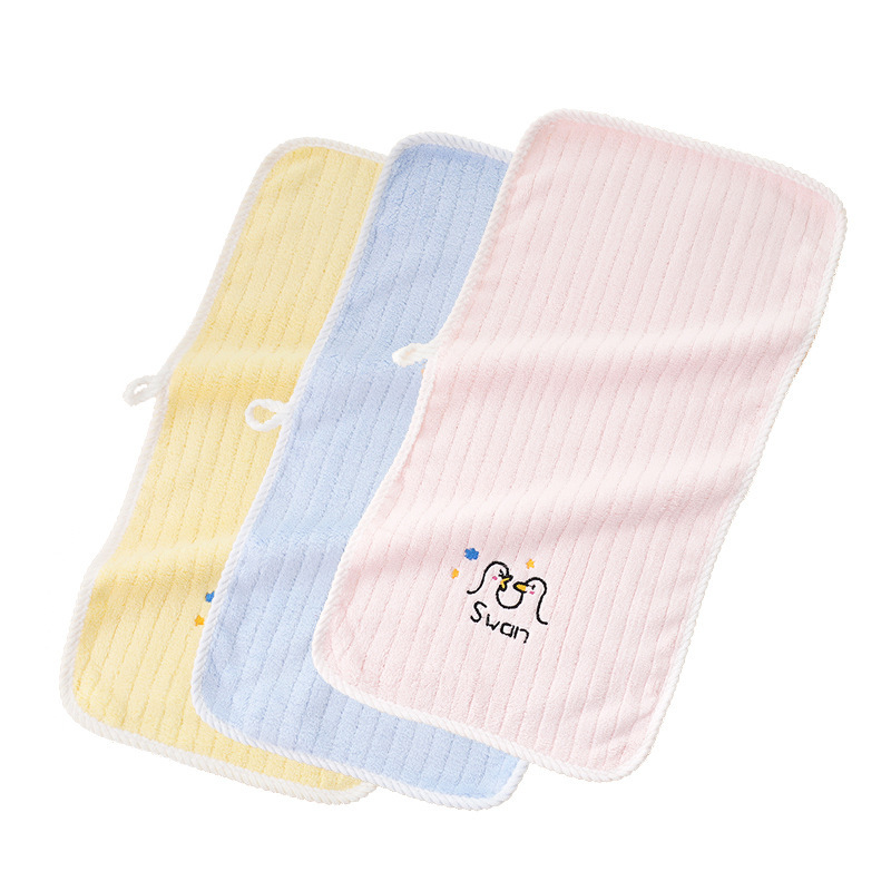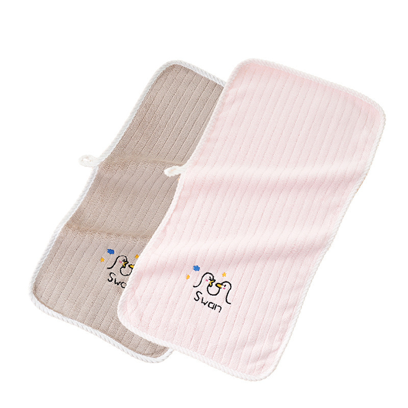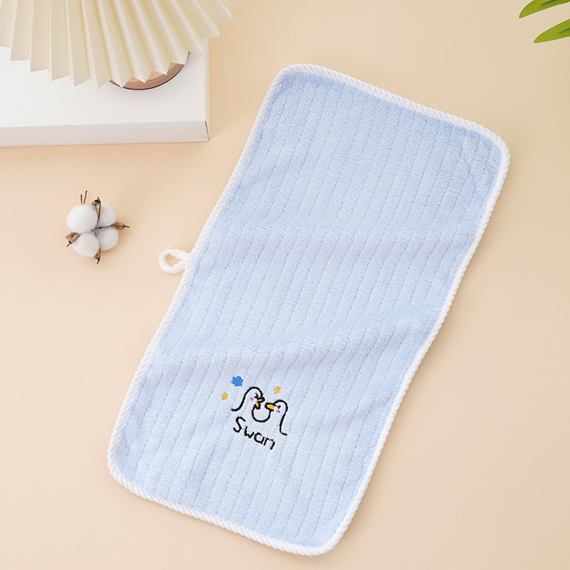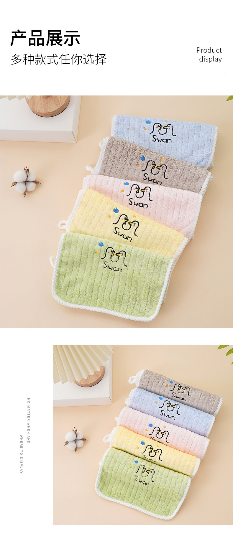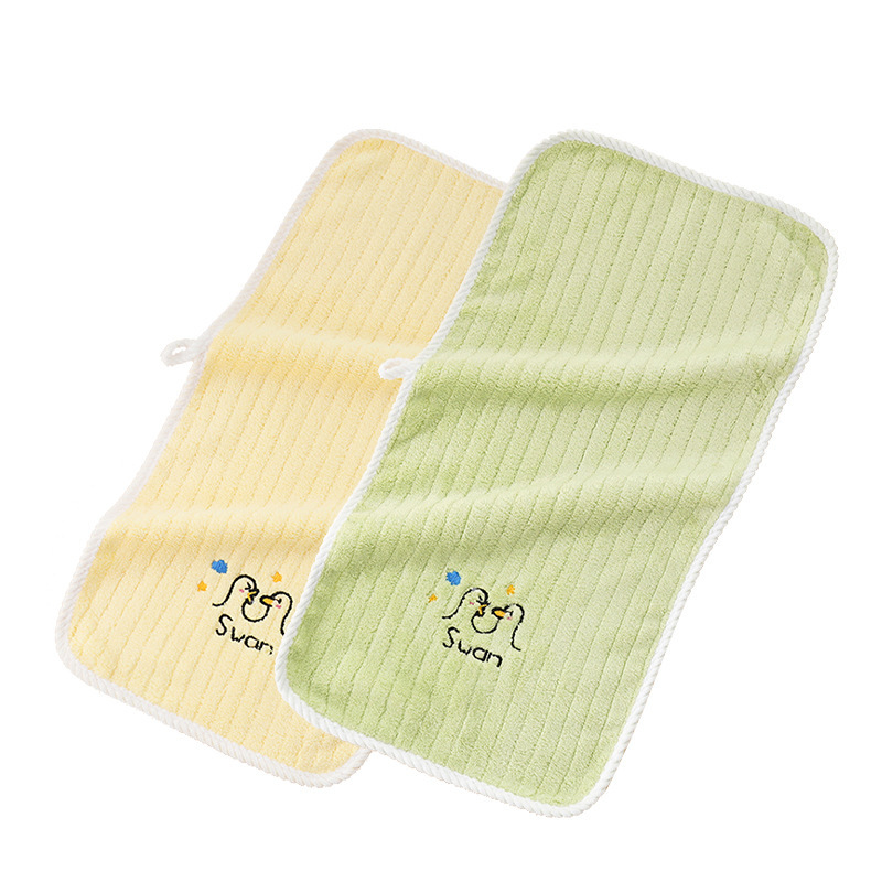 어린이 수건 산호 양털 부드럽고 쉽게 씻을 수있는 얼굴 수건 만화 작은 백조 귀여운 자수 유치원 광장 수건